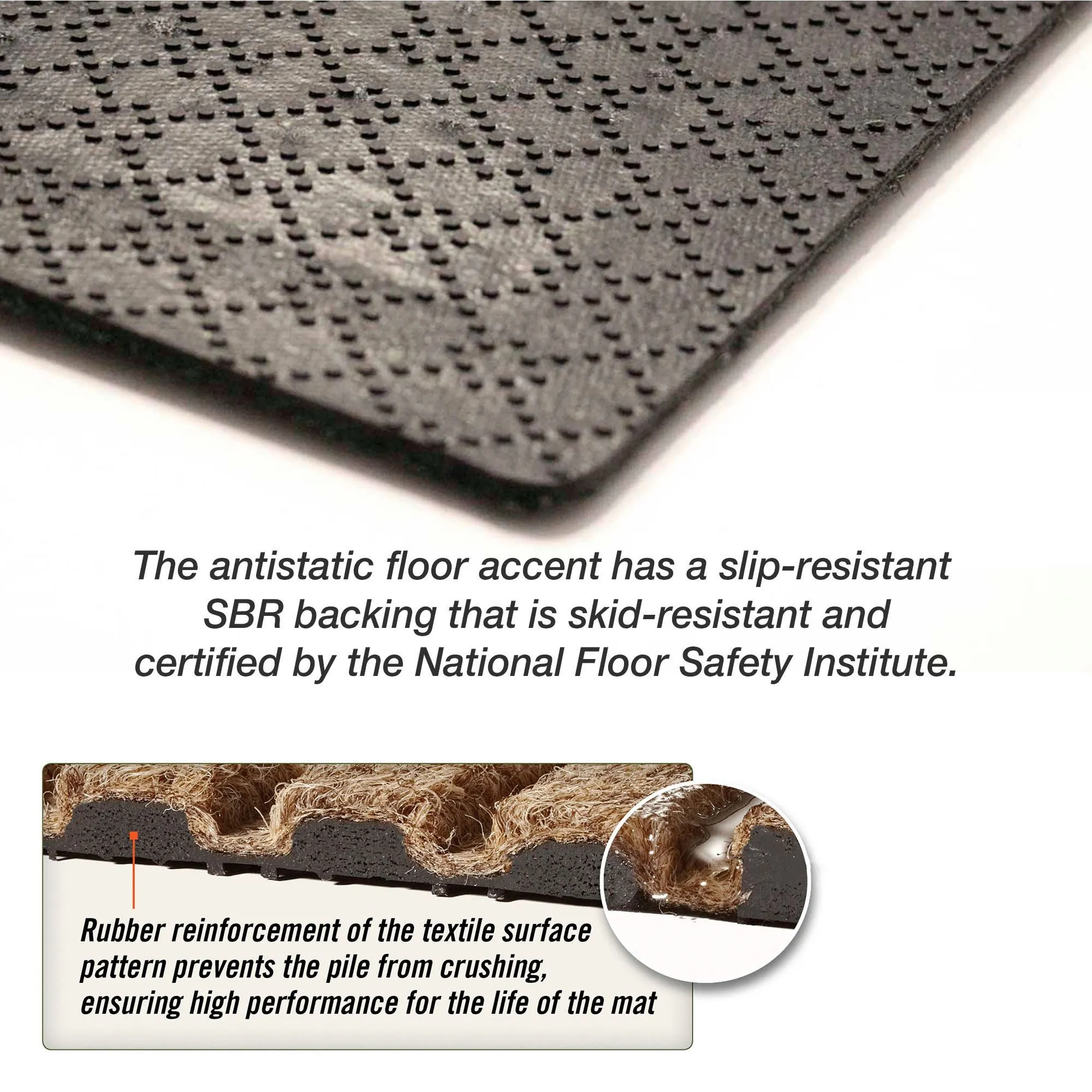 • Slip- and skid-resistant rubber backing