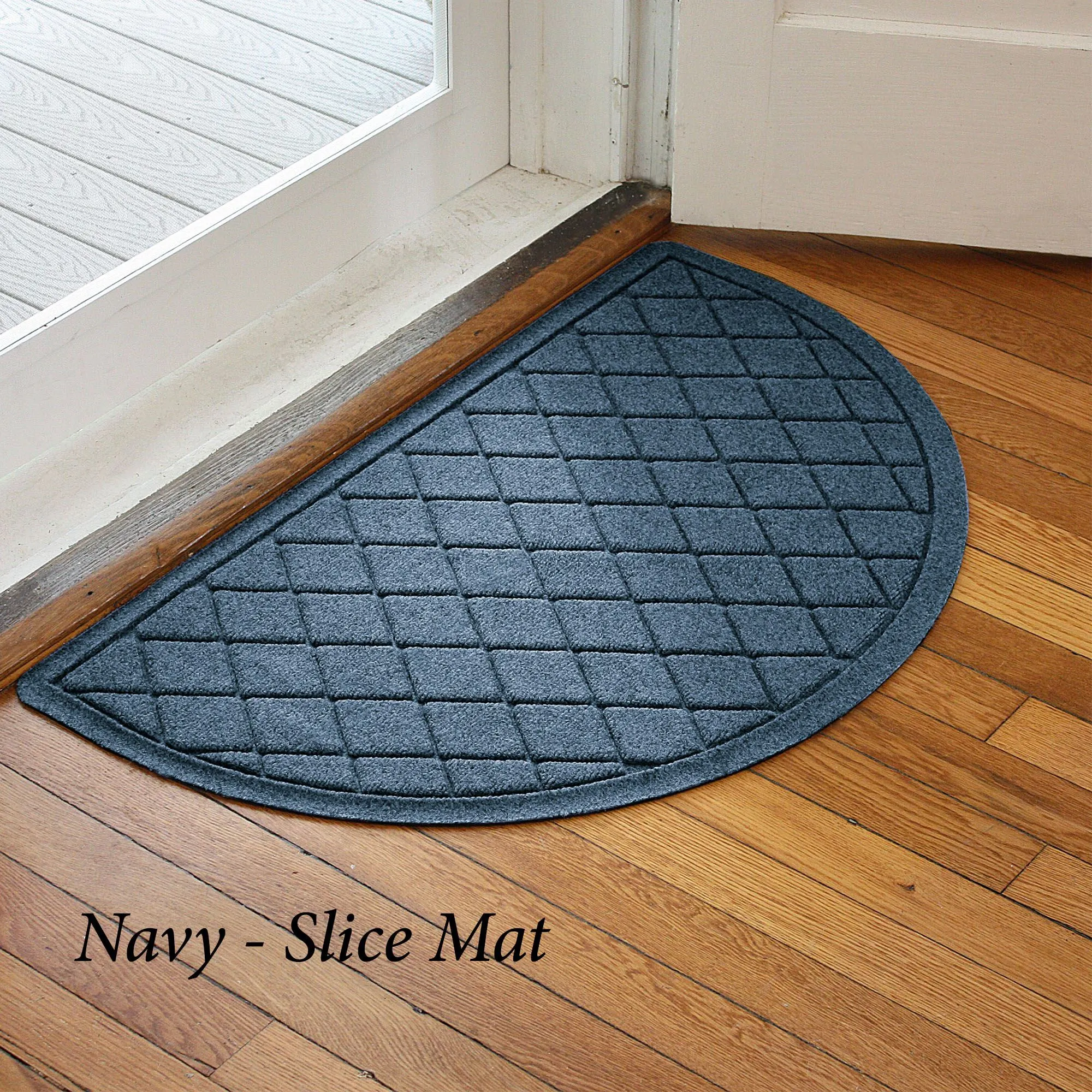 Also available: Doormat, Slice Mat, Runner, Estates Mat, Boot Tray Mat, and Extra-Large Mat. Mats have an exclusive Water Dam border that keeps dirt and water on the mat and not your floor. The Boot Tray Mat easily absorbs snow and water, scrapes away dirt and debris via the high-low surface texture, and holds up to one gallon or square yard of water; only available in Charcoal, Dark Brown, Gray, Khaki, and Slate Blue.