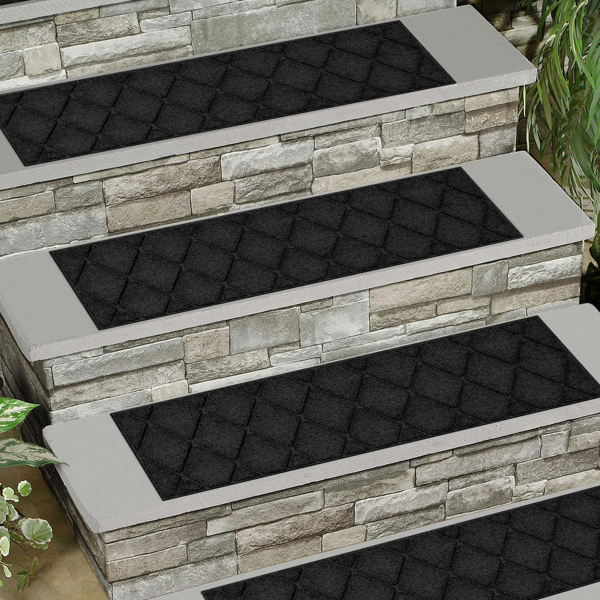 Abalynn Argyle Indoor Outdoor WaterHog Stair Tread Set of 4