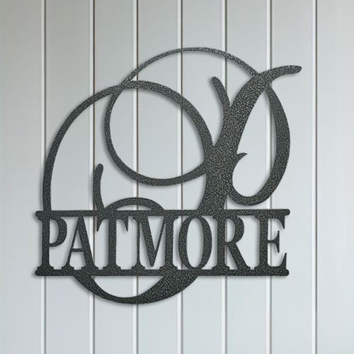 Splendidly display your family name and initial with the Accord Antique Pewter Personalized Wall Art Sign. Handcrafted of precision-cut 14-gauge steel, this wall art sign, designed by JasonW Studios(R), has a powder-coat finish that is UV-, weather-, and tarnish-resistant. The personalization is in capital letters, while the initial is in large script. A hyphen counts as a character. Letters are uppercase with the exception of names with a prefix. In those cases, the prefix will be uppercase and lowercase, like MacDONALD. This personalized metal wall art sign may be used indoors or outdoors year round. Measures approx. 25"W-32"Wx1.5"Dx23"H.