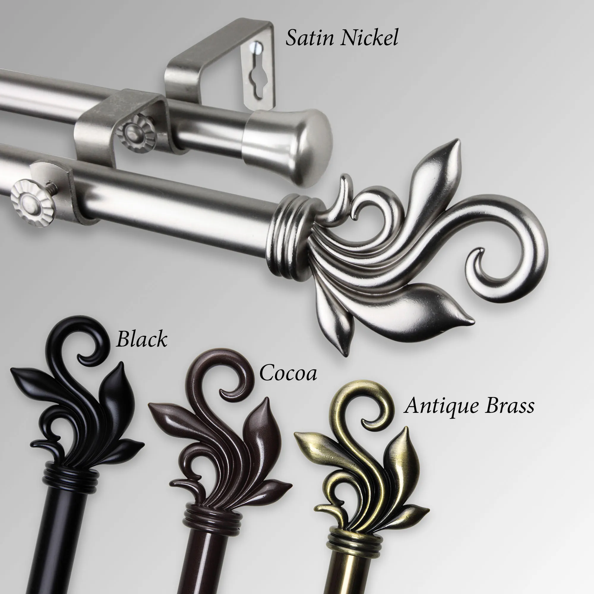 • Rod Set includes two finials, two rods, and brackets