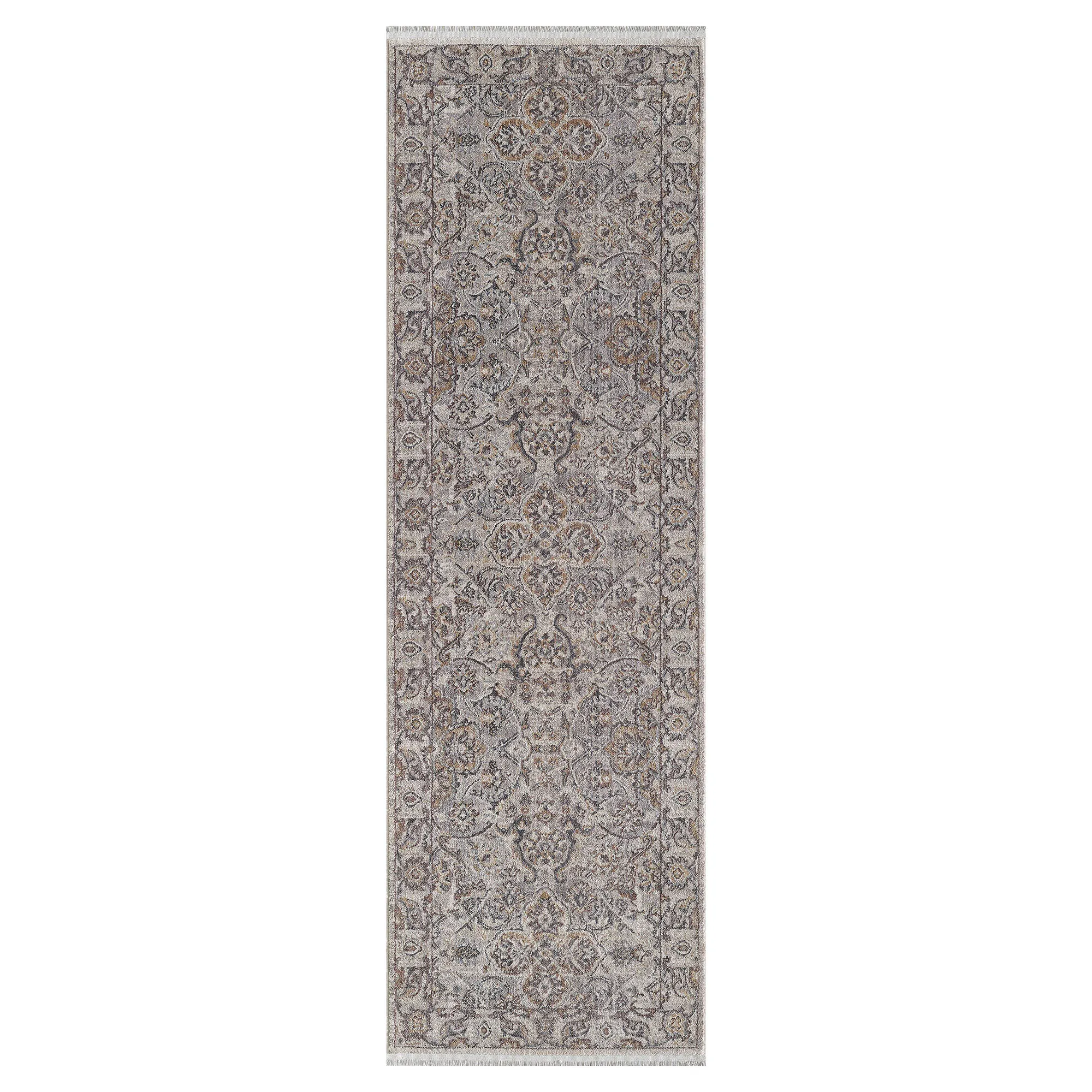 Intricate ornate designs fill the Adele Delaney Area Rug alongside a neutral, subdued color palette. Power-loomed from polyester, the .5" thick rug features elaborate scrollwork, florals, and medallions throughout the elaborate center and chic border. Gray, charcoal, harvest gold, light gray, slate blue, sterling blue, and dark gray color the design, while .5"L fringe ends add a charming finish. We recommend professional cleaning by a rug cleaner. Imported.