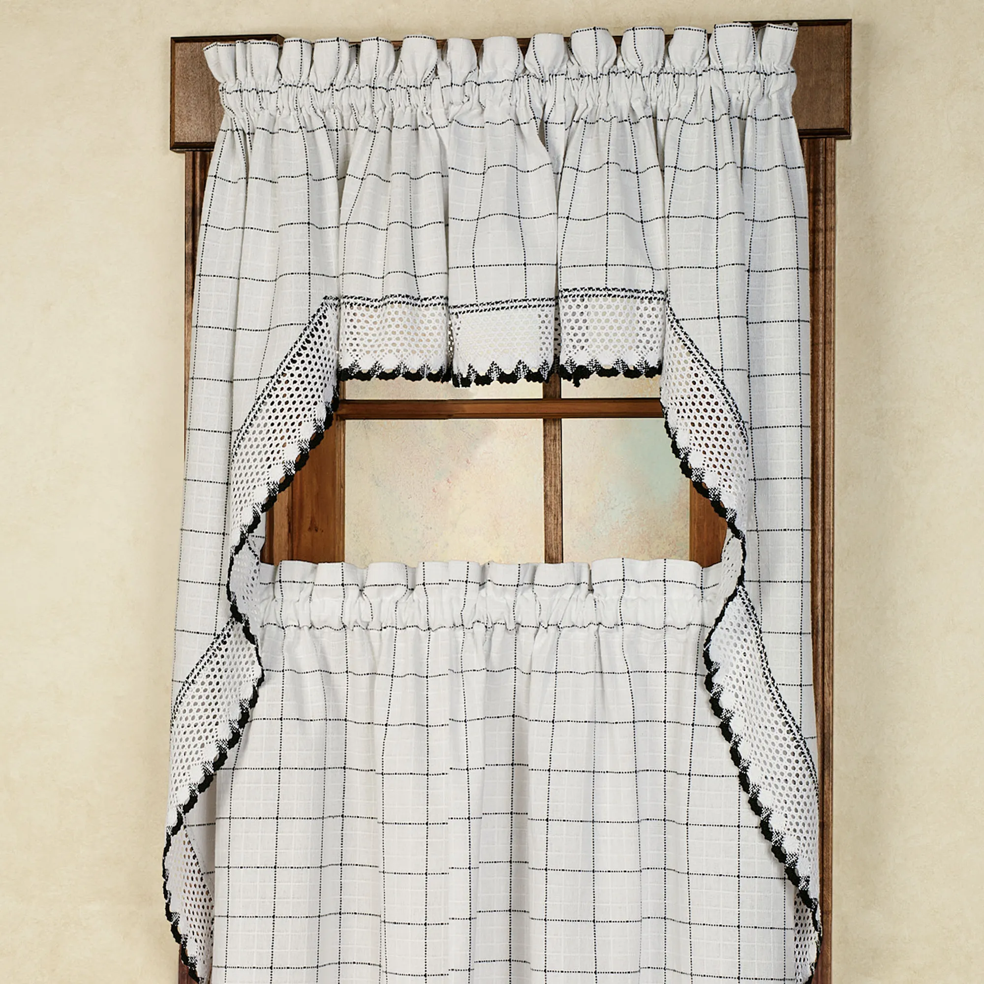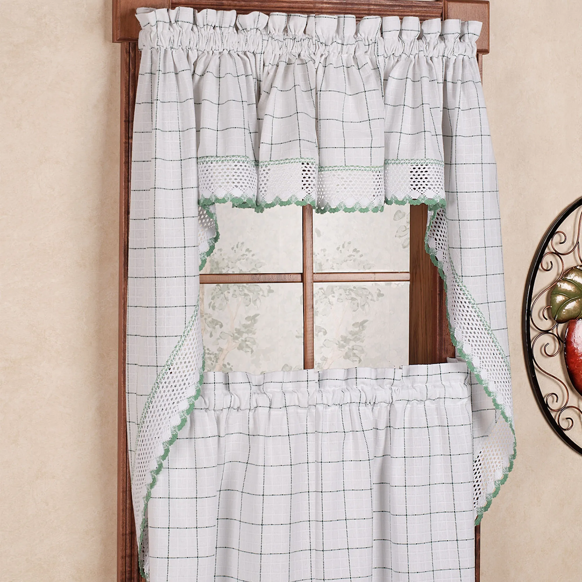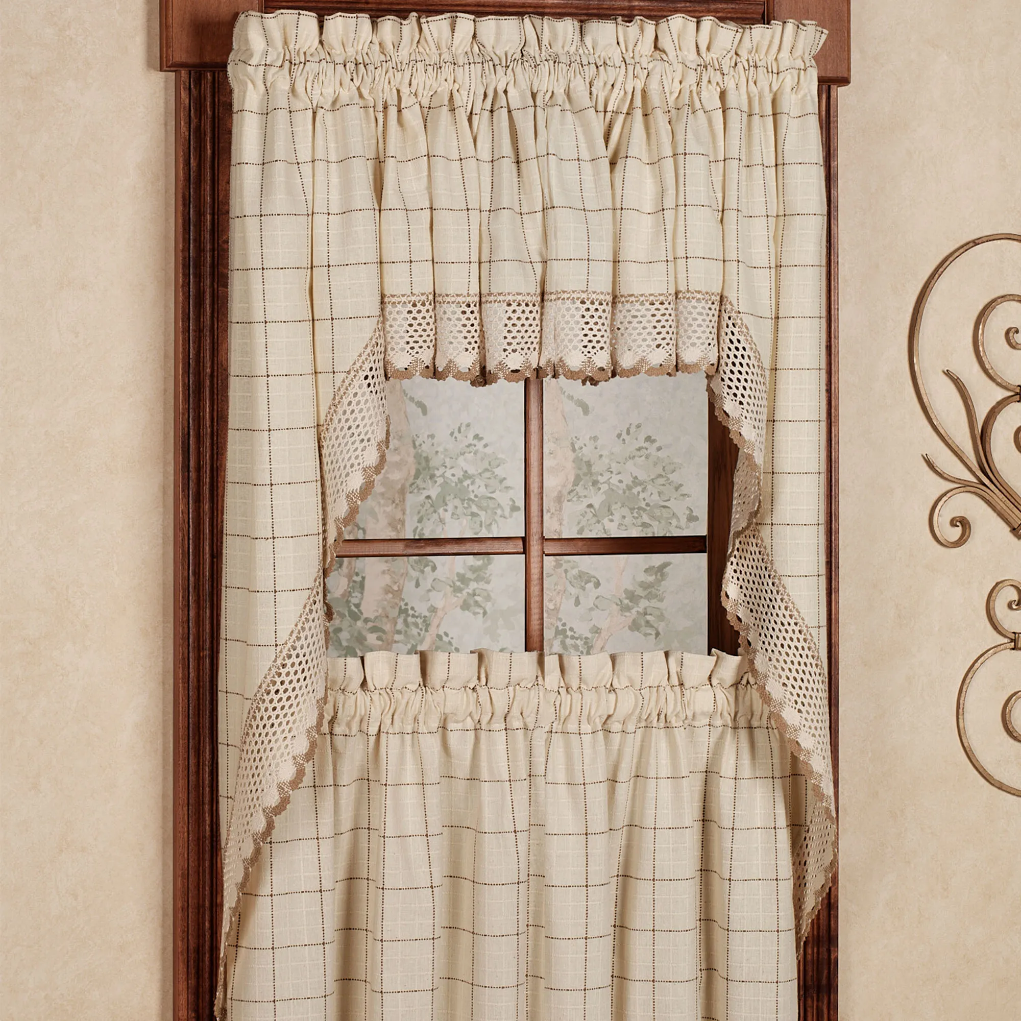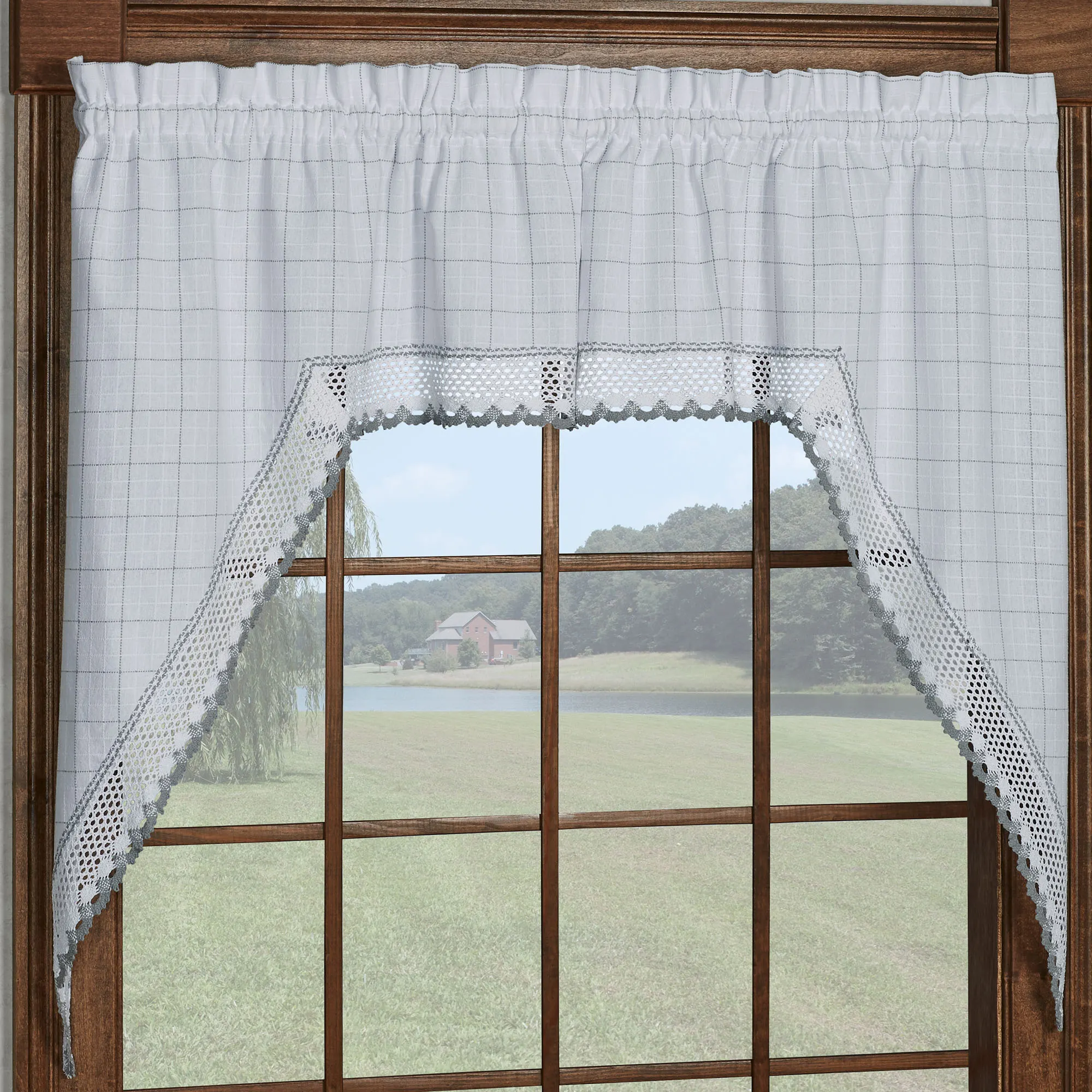 The details of the valance, swags, and panels provided just what was needed for our kitchen window. The color is perfect with the new cabinets and countertops. The pieces are not lined, but there is plenty of fullness when gathered on the rod to provide privacy. Love the purchase!!