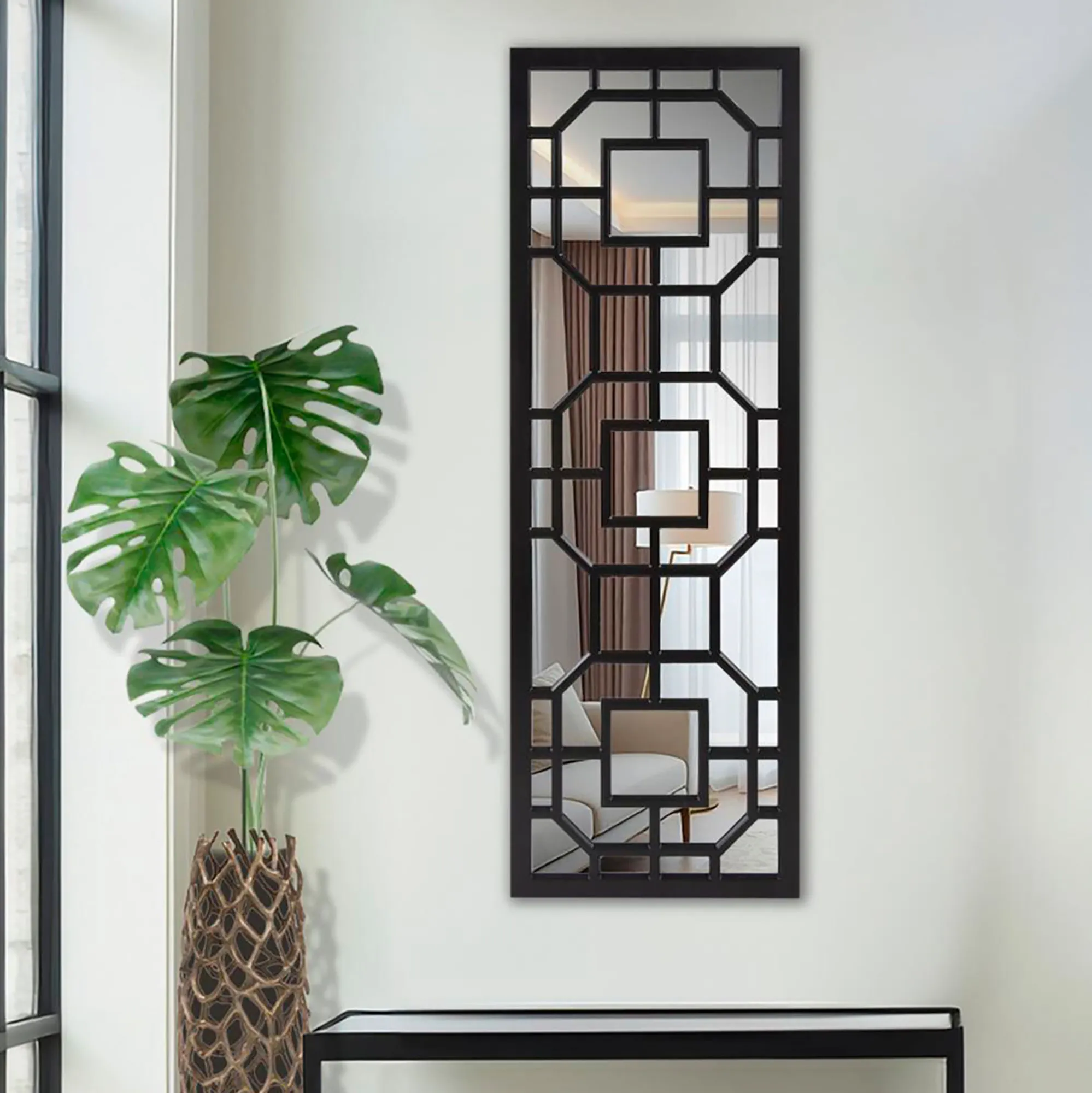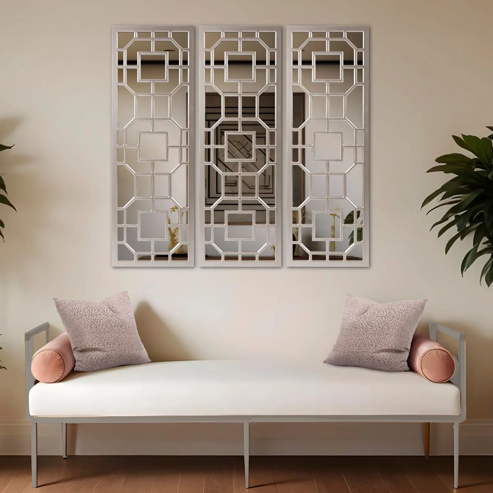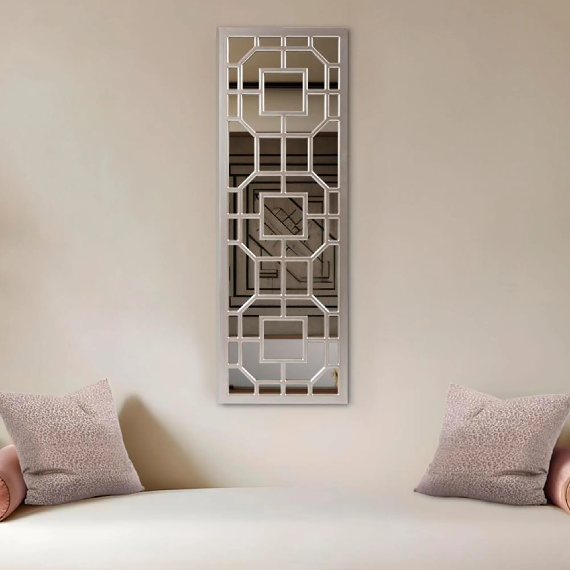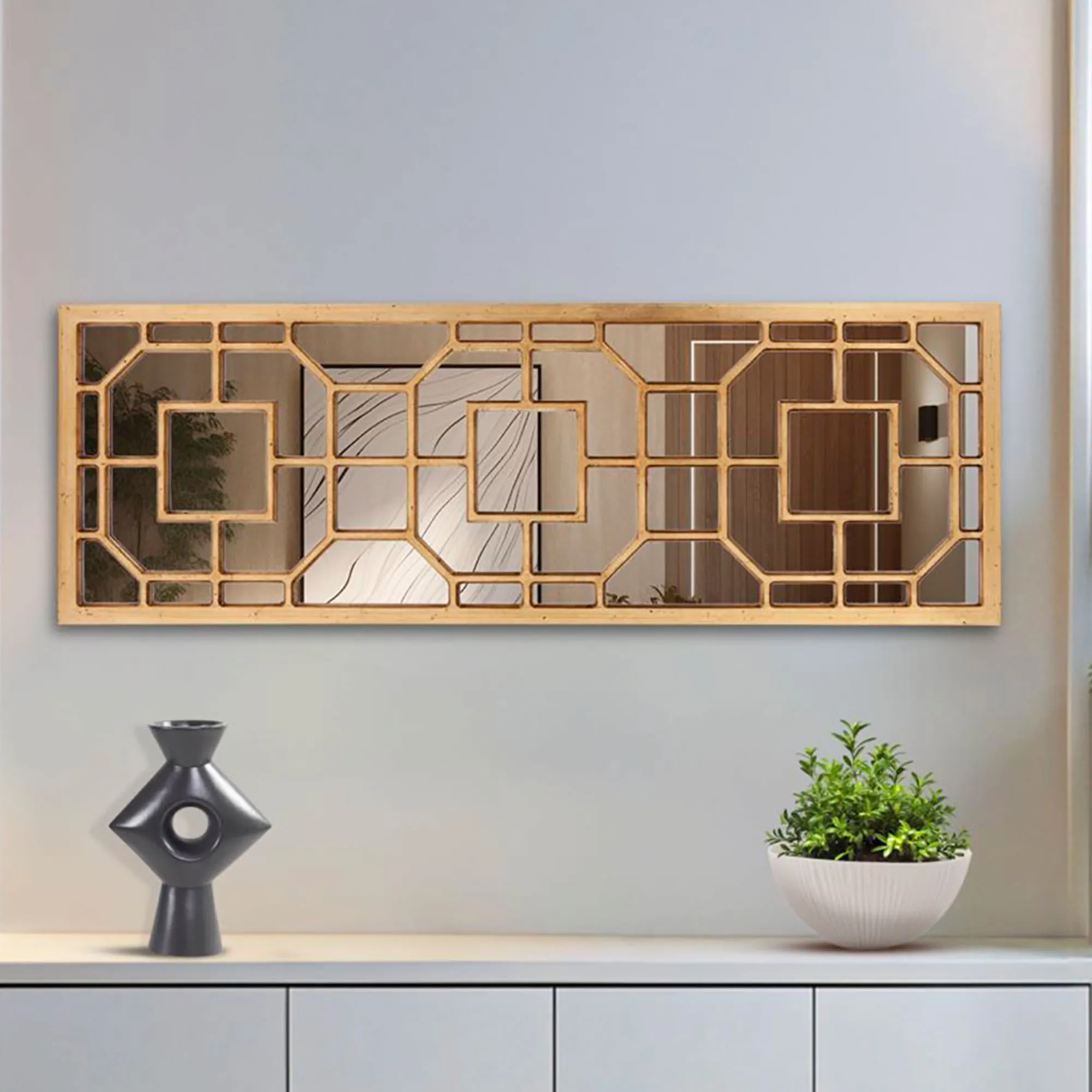Adrianna Geometric Latticework Wooden Wall Mirror Panel
