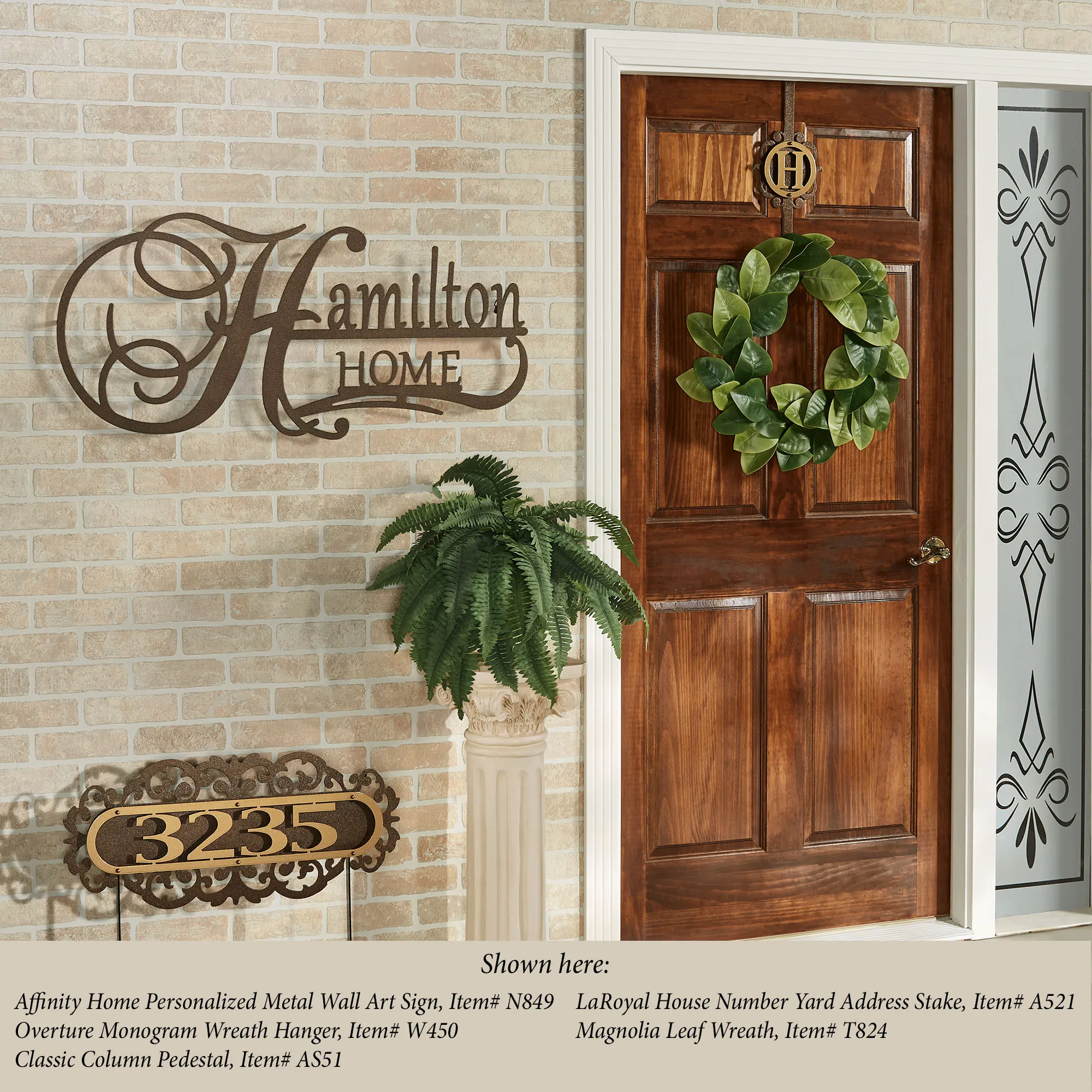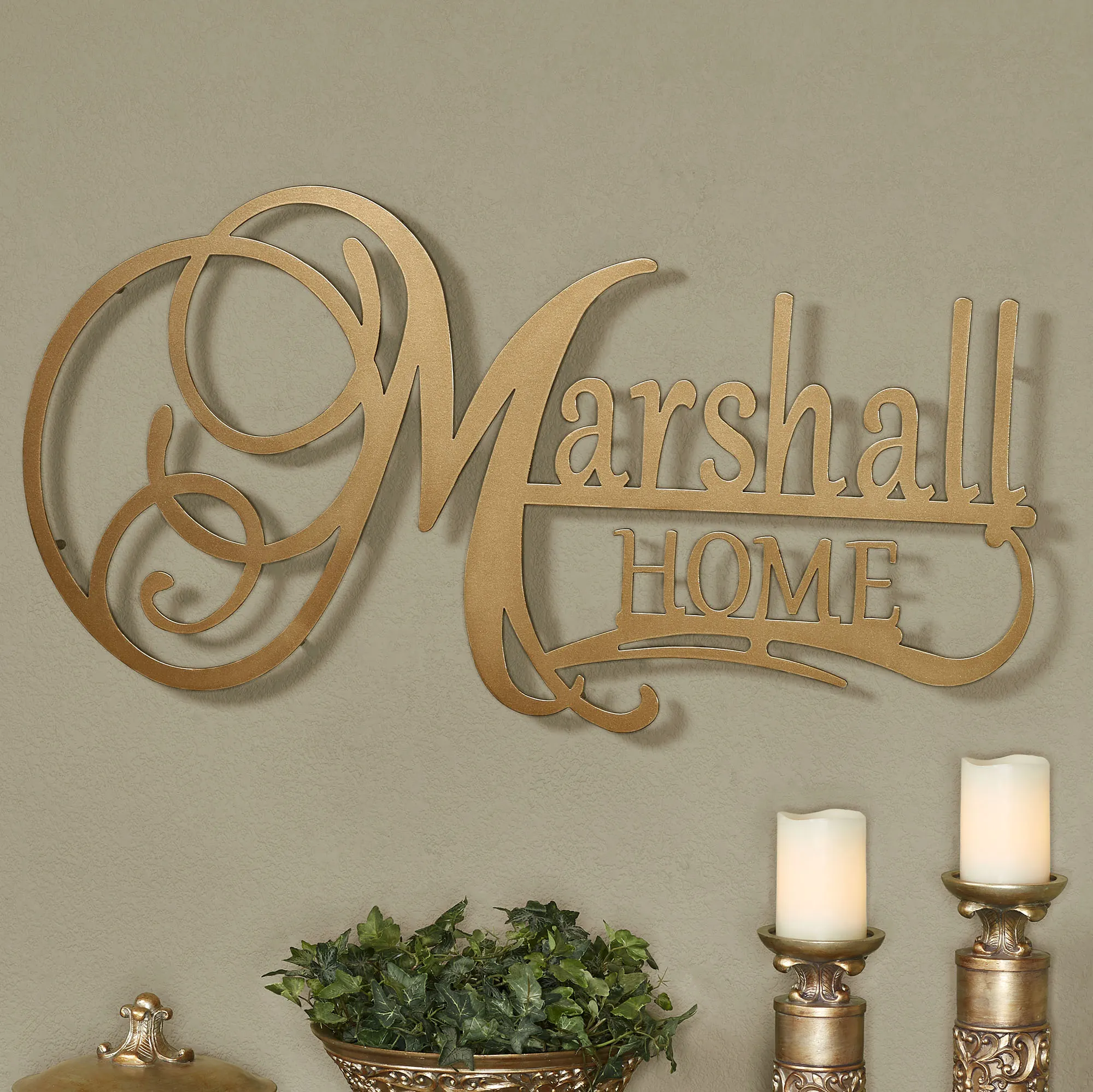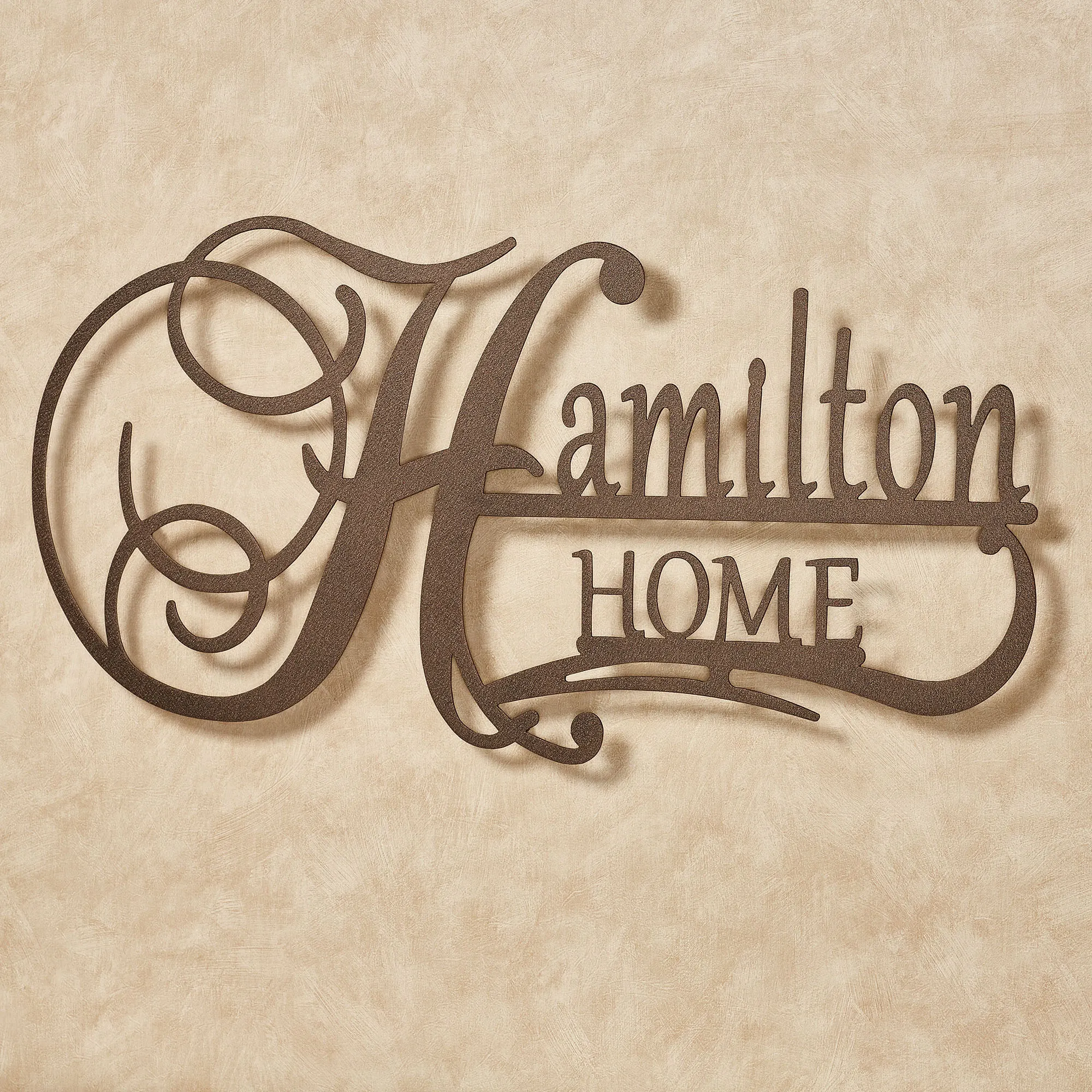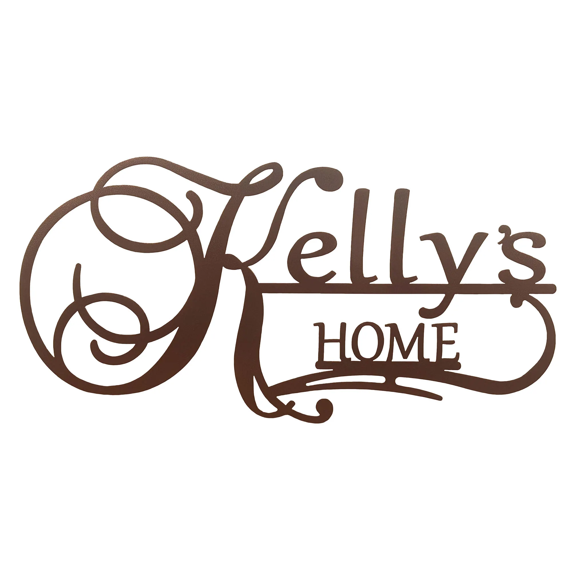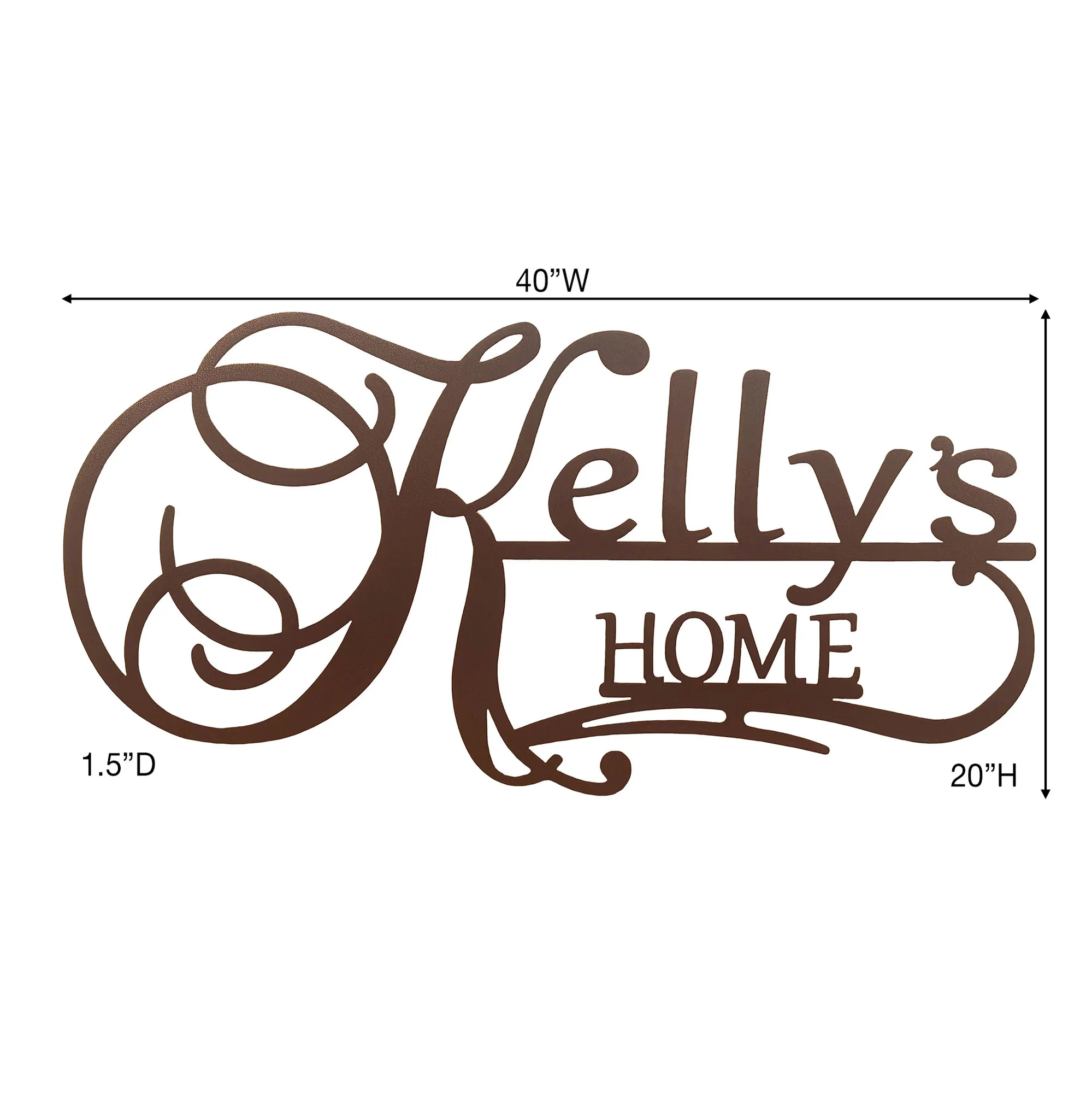 Those with an Affinity for their last name can display their heritage proudly with this wall sculpture designed by JasonW Studios(R). Handcrafted in the USA by skilled American craftsmen, the wall art sign is constructed of precision-cut 14-gauge steel and completed with a UV-, weather-, and tarnish-resistant powder-coat finish for a beautiful display inside or outside your home year round. Personalized with your name up to 8 characters, the sign contains a large scrolling uppercase initial followed by a coordinating lowercase font and accent scrolls; beneath is the subtitle "Home." A hyphen counts as a character. For a last name with a prefix, the first letter of the prefix and the first letter of the rest of the surname will be uppercase, like MacDonald. Specify finish: Antique Copper, Antique Gold, Black, Bronze, or Gold. Measures approx. 40"Wx1.5"Dx20"H.