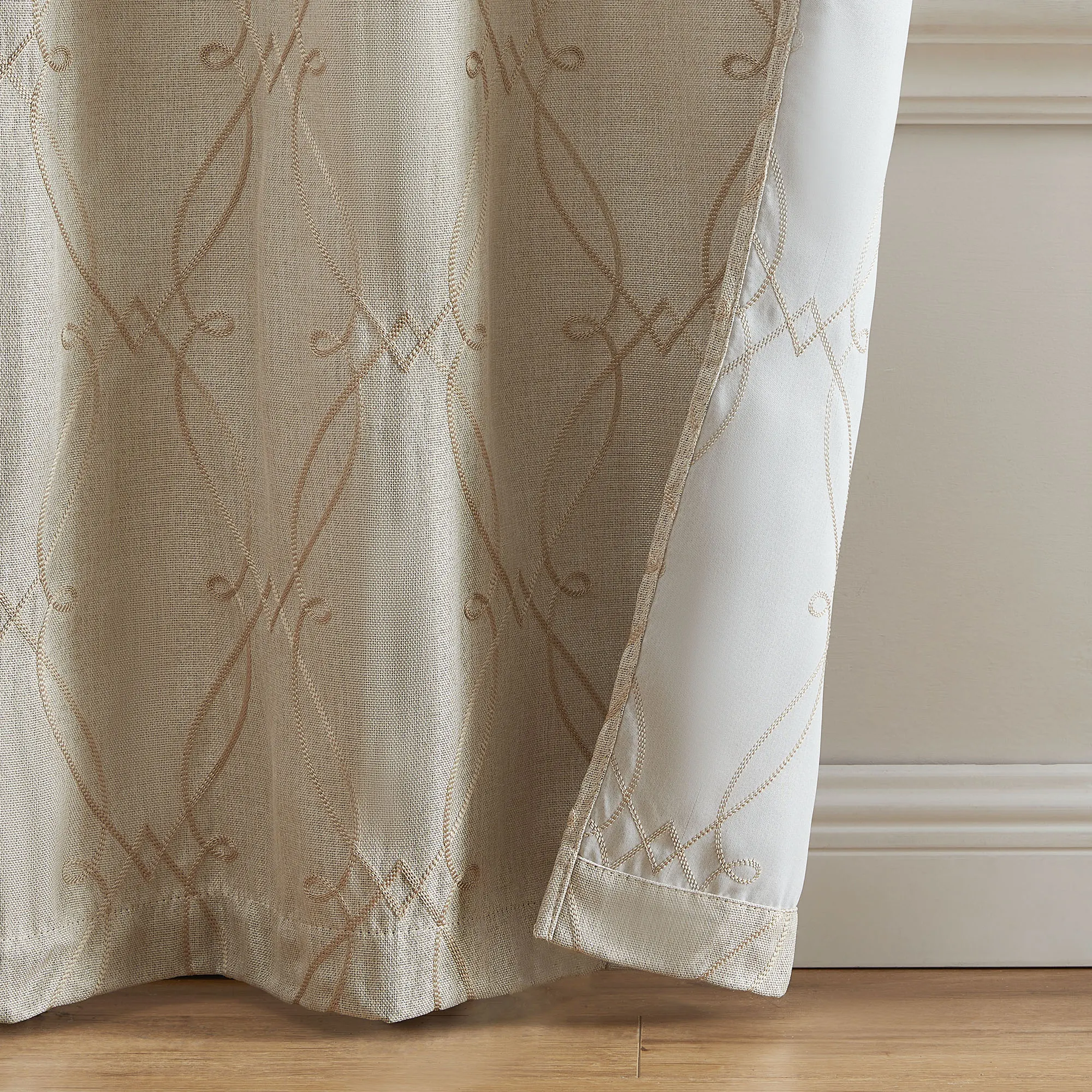 Aldine Embroidered Lattice Room Darkening Grommet Curtains