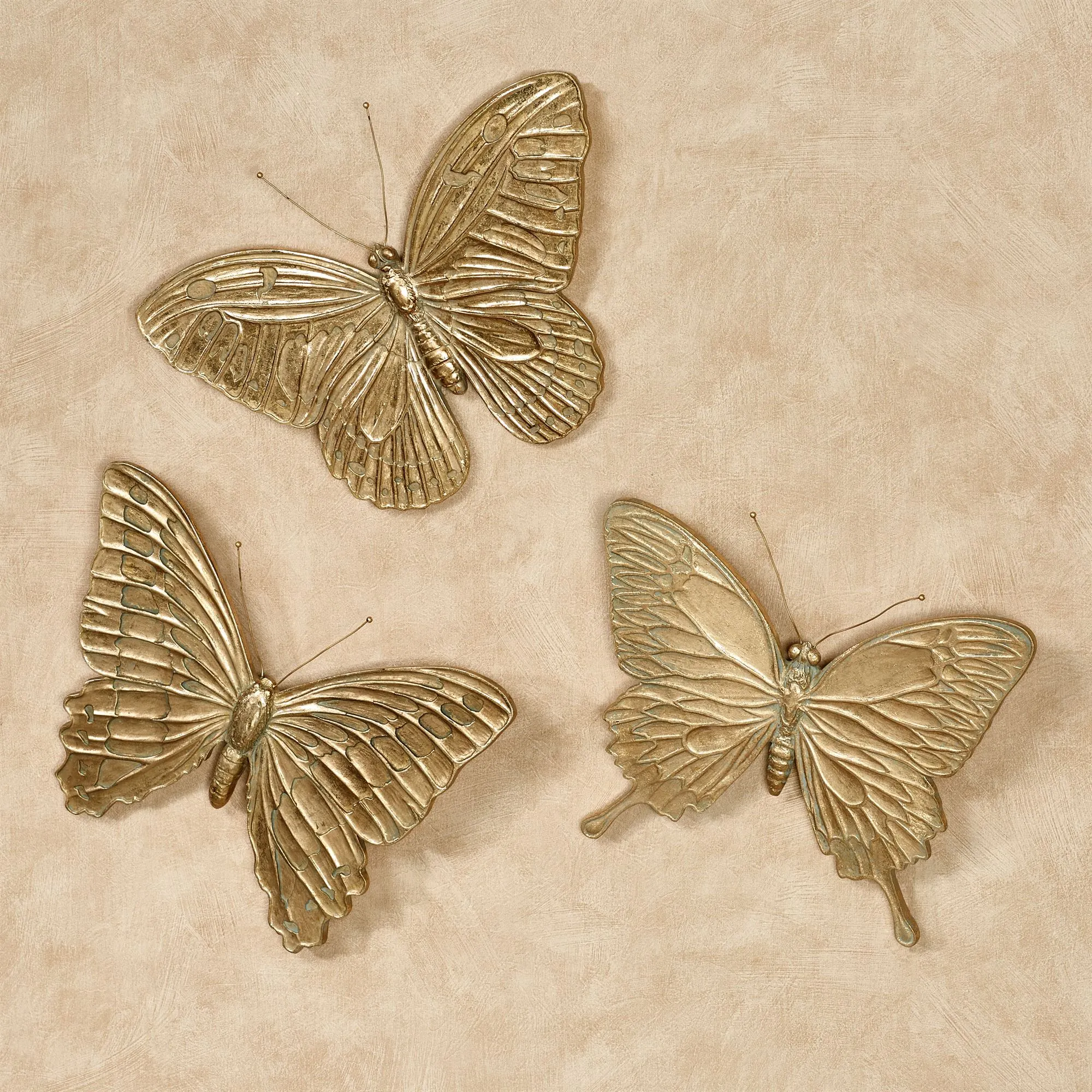 Golden butterflies lend a mystical quality to your decor with the Aldora Butterfly Wall Art Set. Each polystone resin butterfly features a realistic texture and verdi accents throughout the beautiful spread wings. Each measures approx. 13"Wx9.5"H.