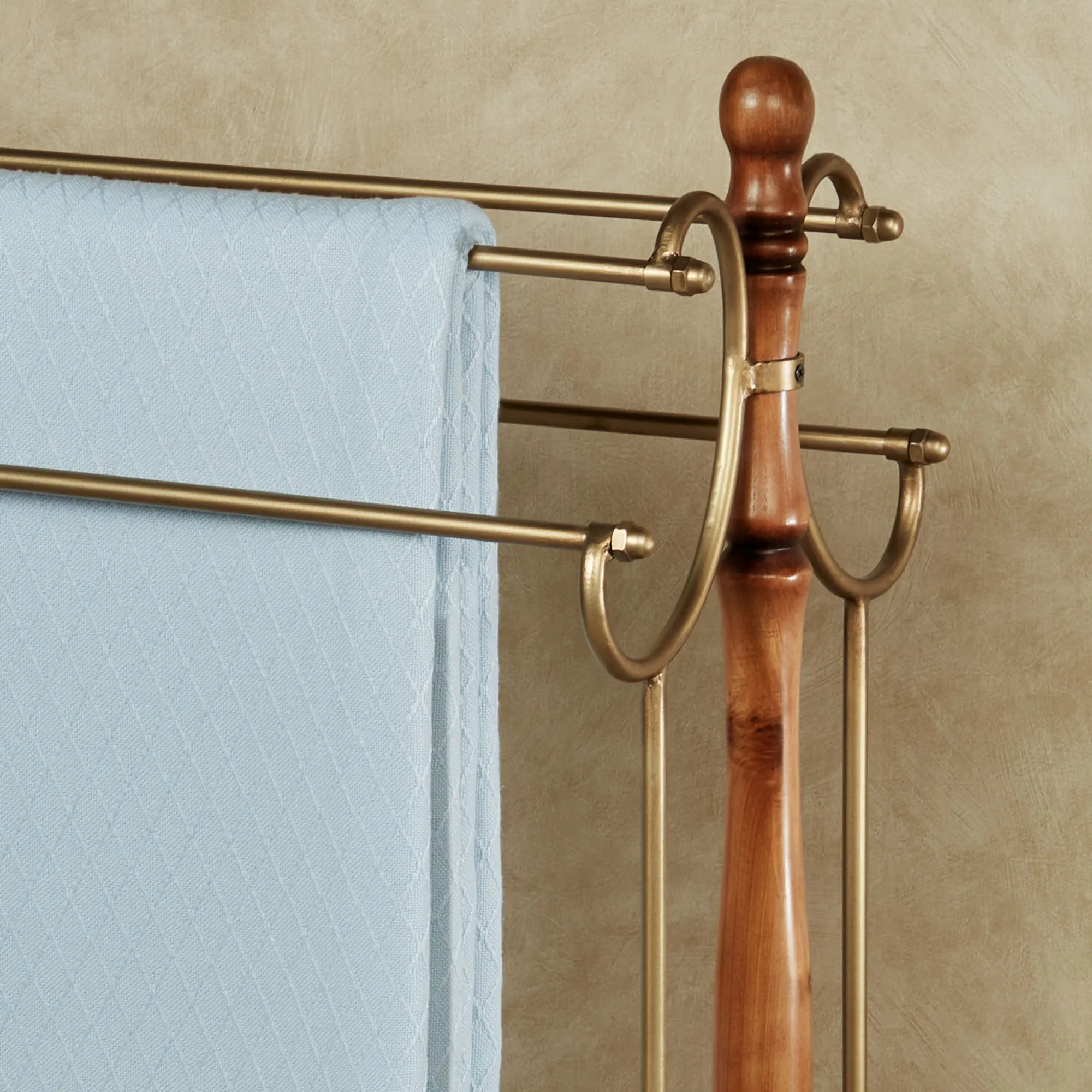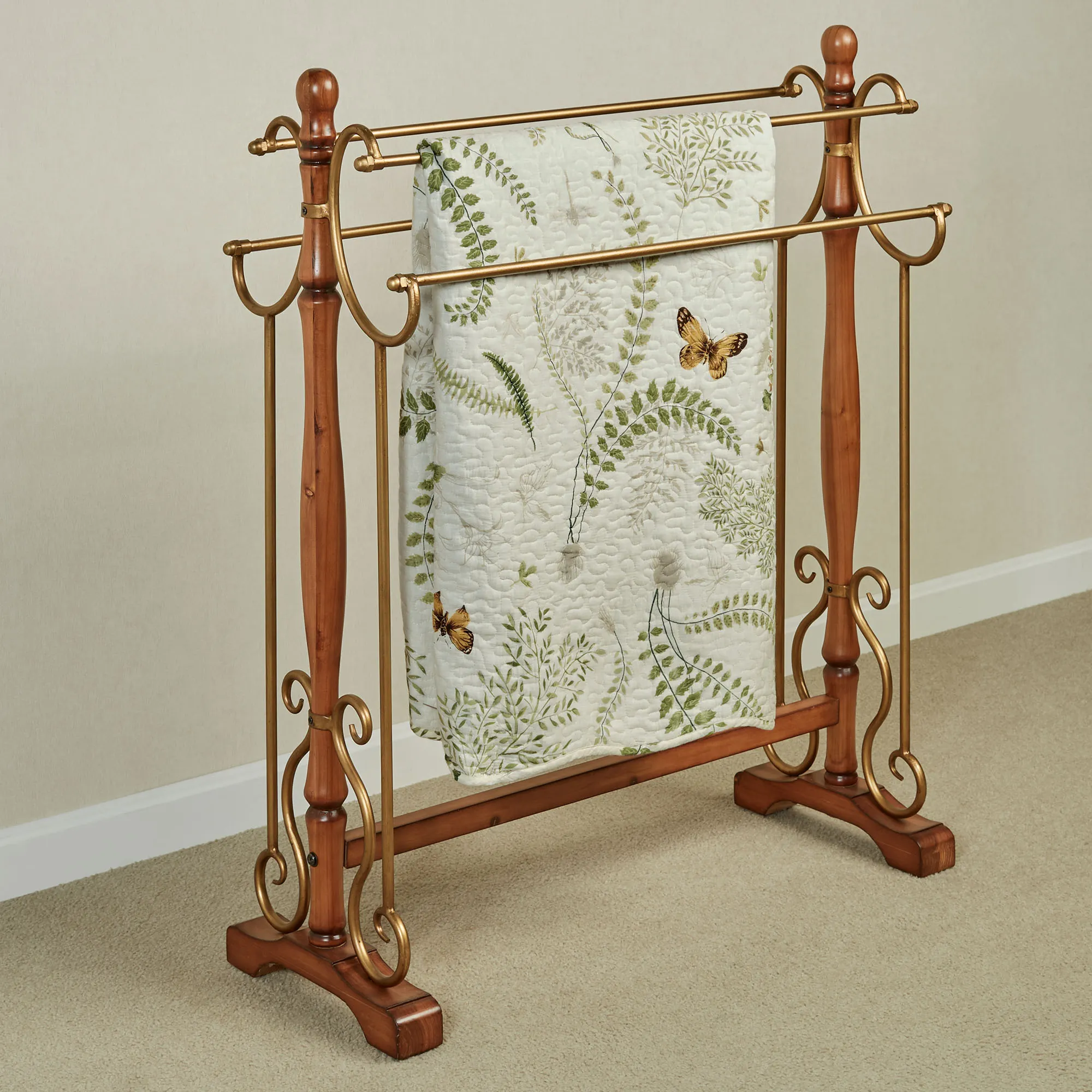 Alexandra Traditional Standing Quilt Blanket Rack with Wood and Metal Frame