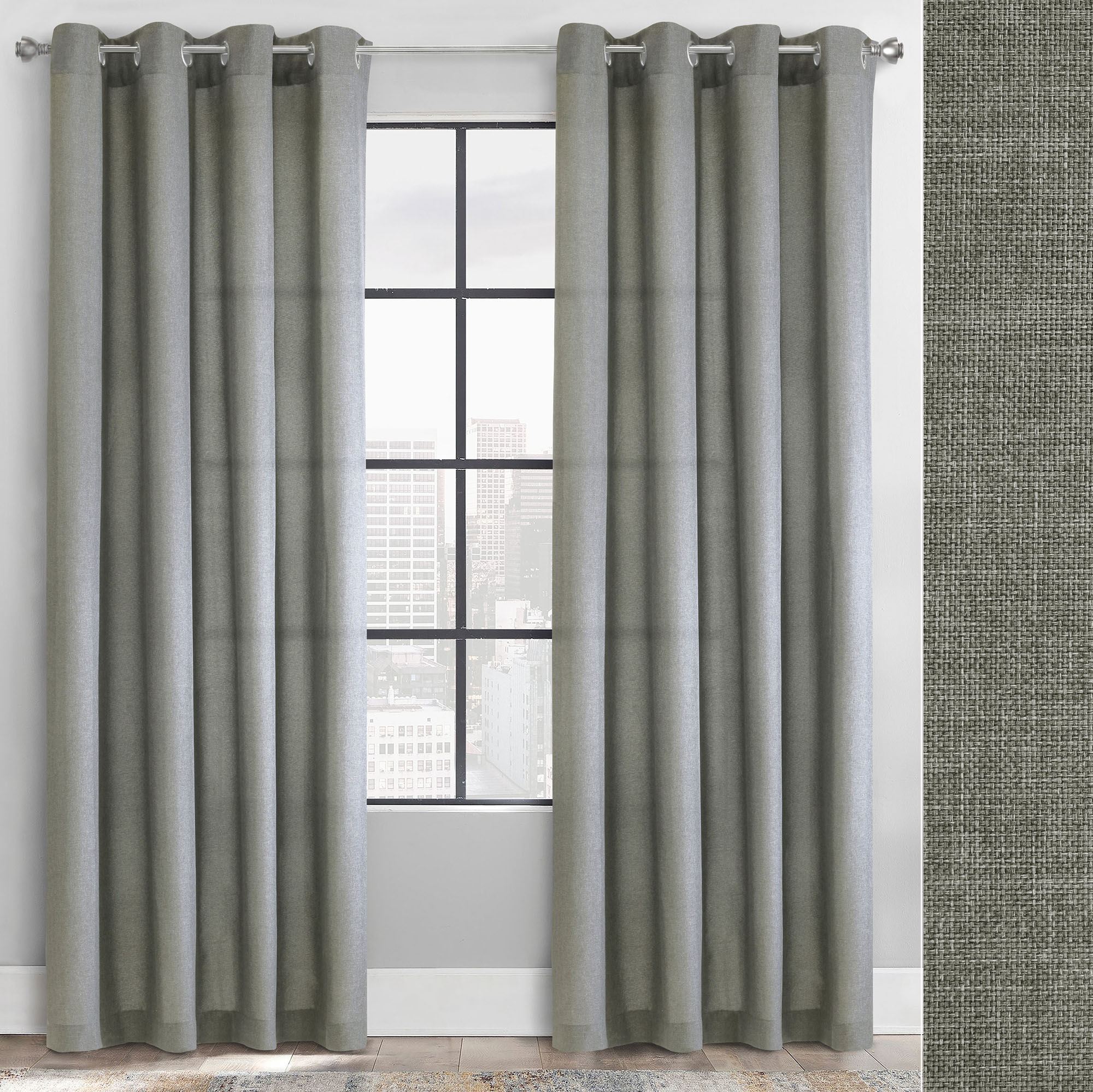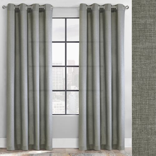 Allaben Gray Faux Linen Grommet Curtain Panel