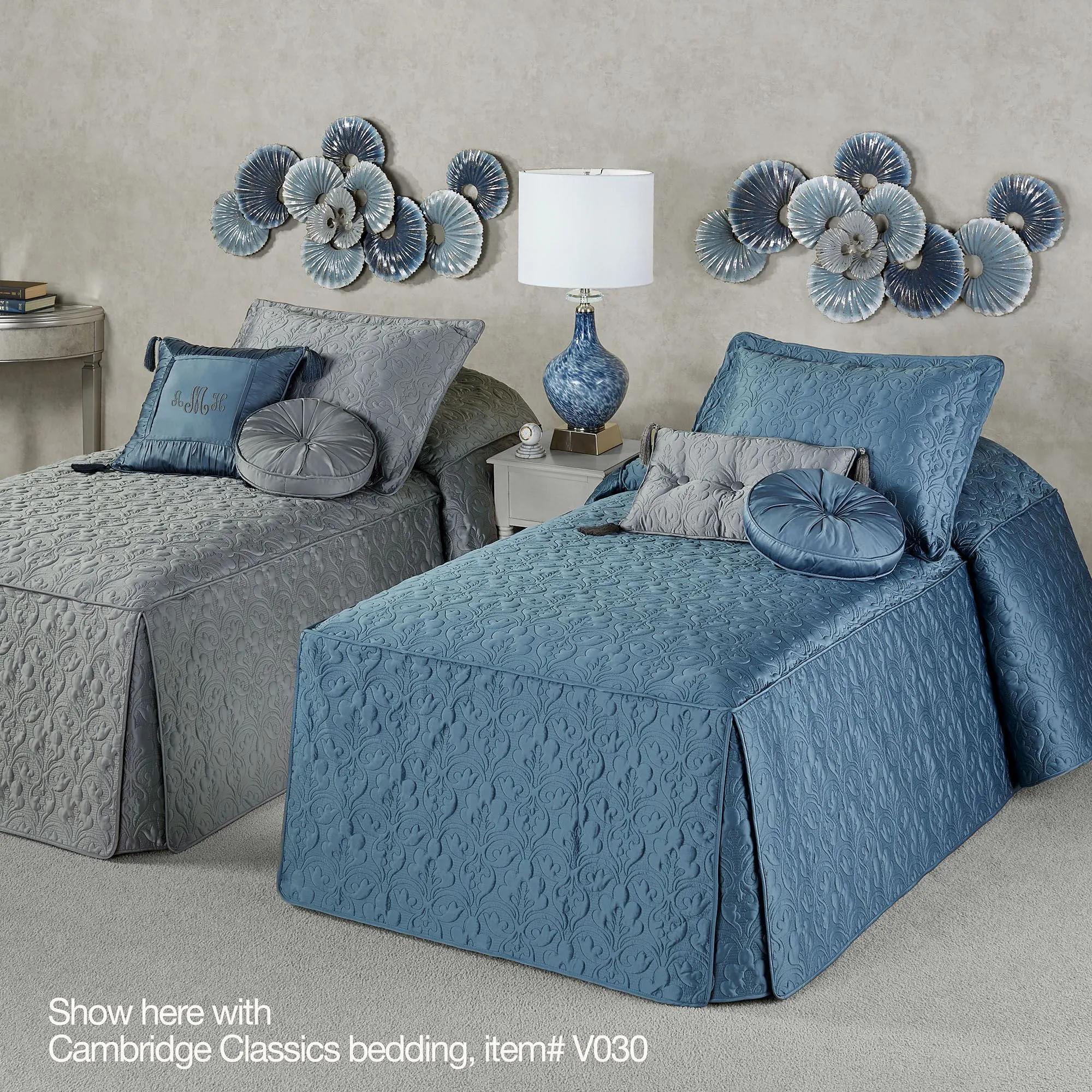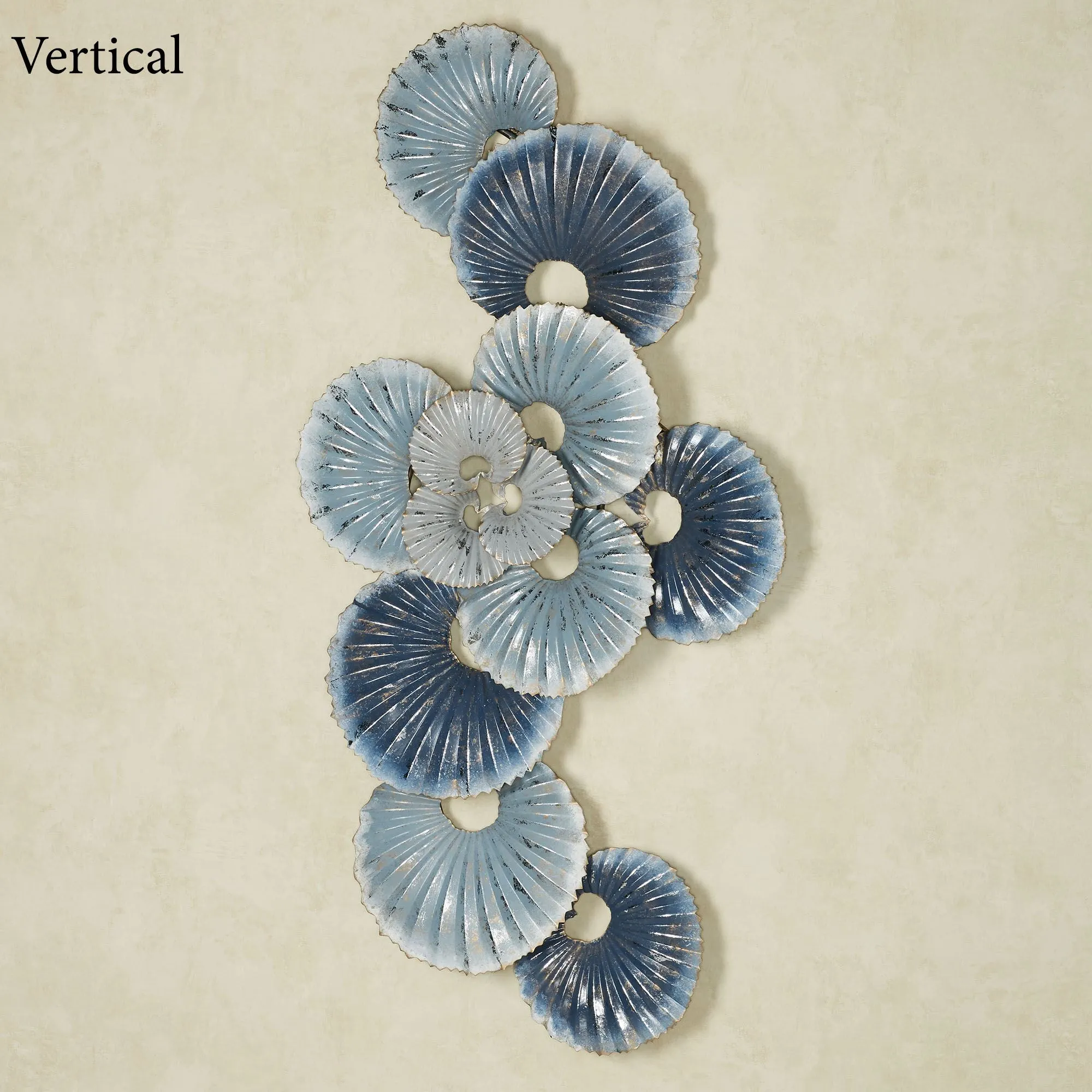 The Allana Wall Art dazzles a space with cool hues and abstract beauty. Hand-finished in light slate blue, dark blue, and gray, the metal wall sculpture features openwork circular shapes with a unique crinkled texture. Silver, gold, and white embellishments add further charm. Wall art may hang horizontally or vertically. Measures 45"Wx3"Dx22"H.