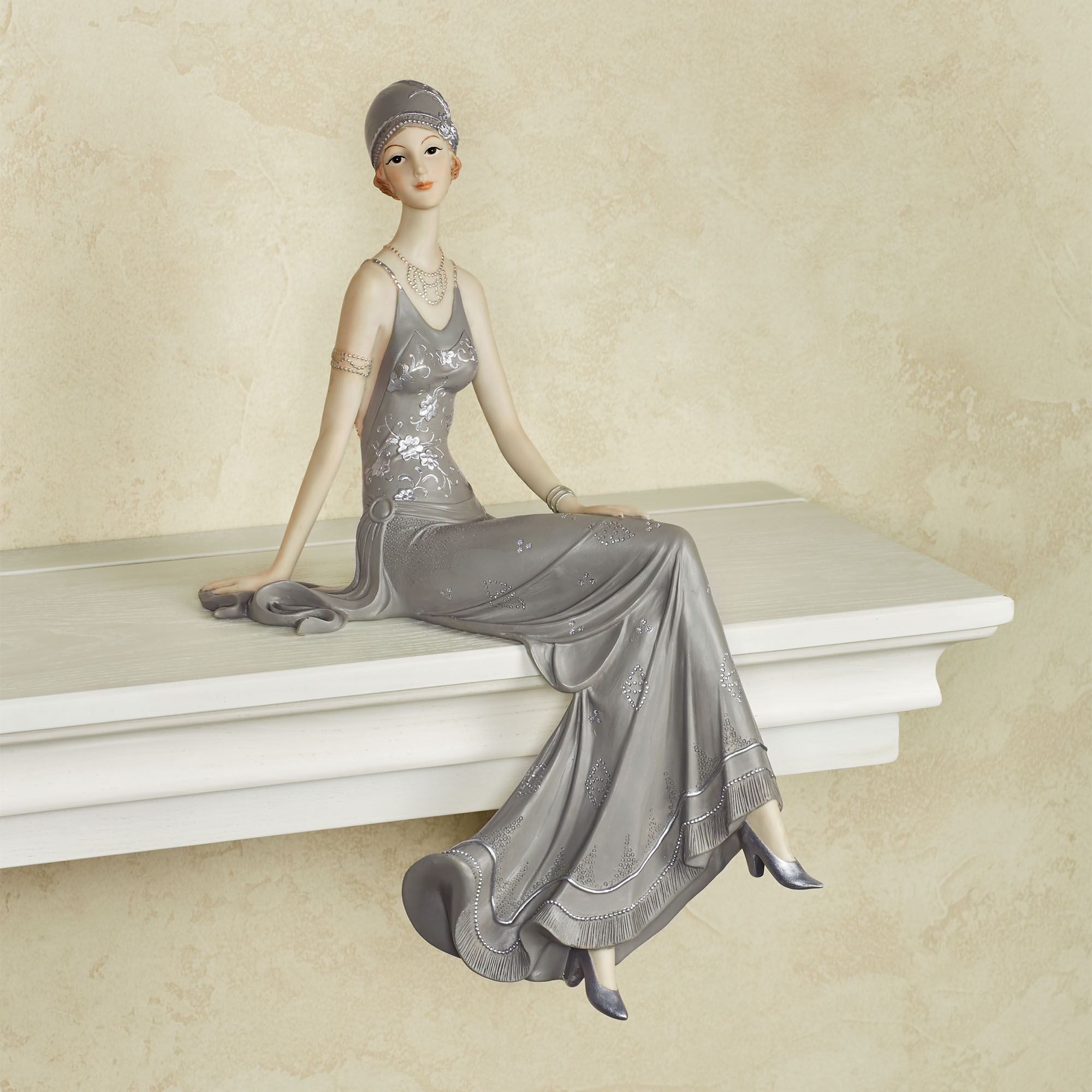 Alluring Beauty Gray 1920s Style Lady Figurine Shelf Sitter