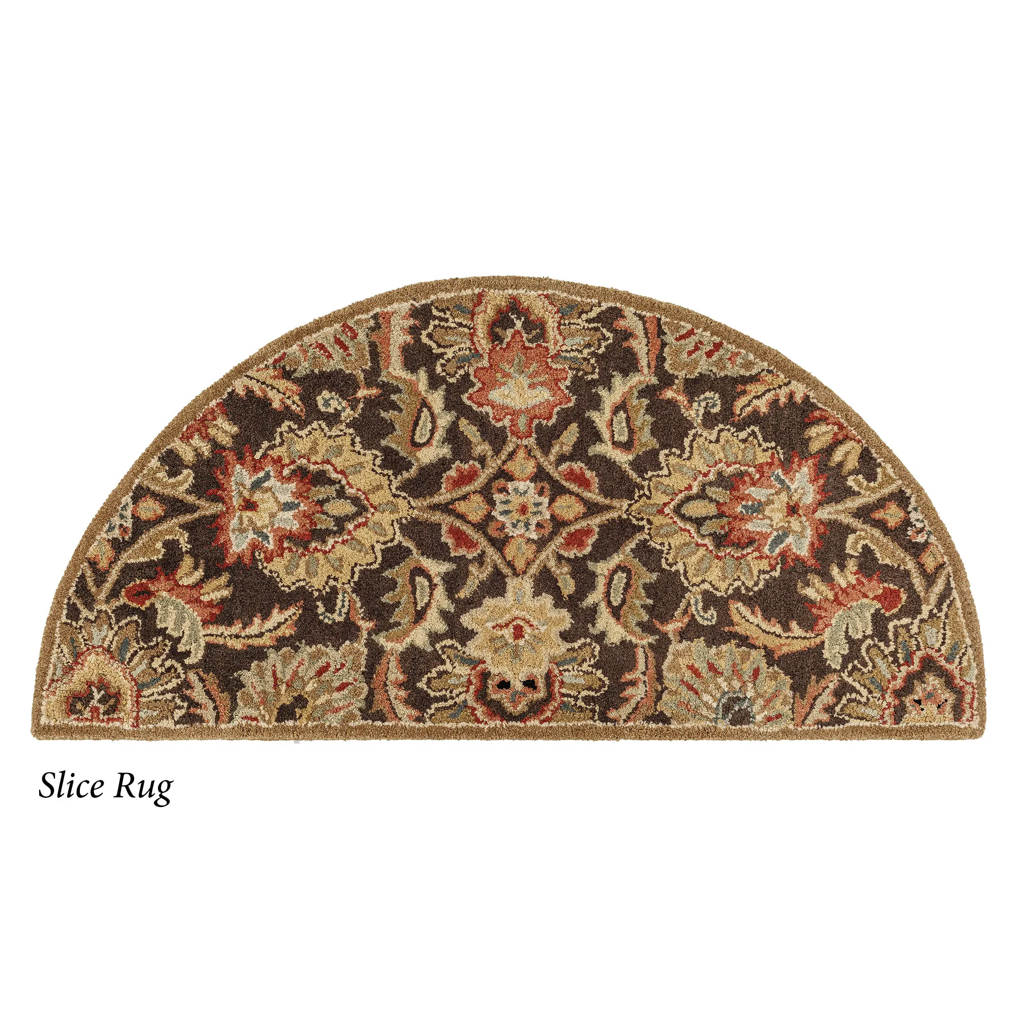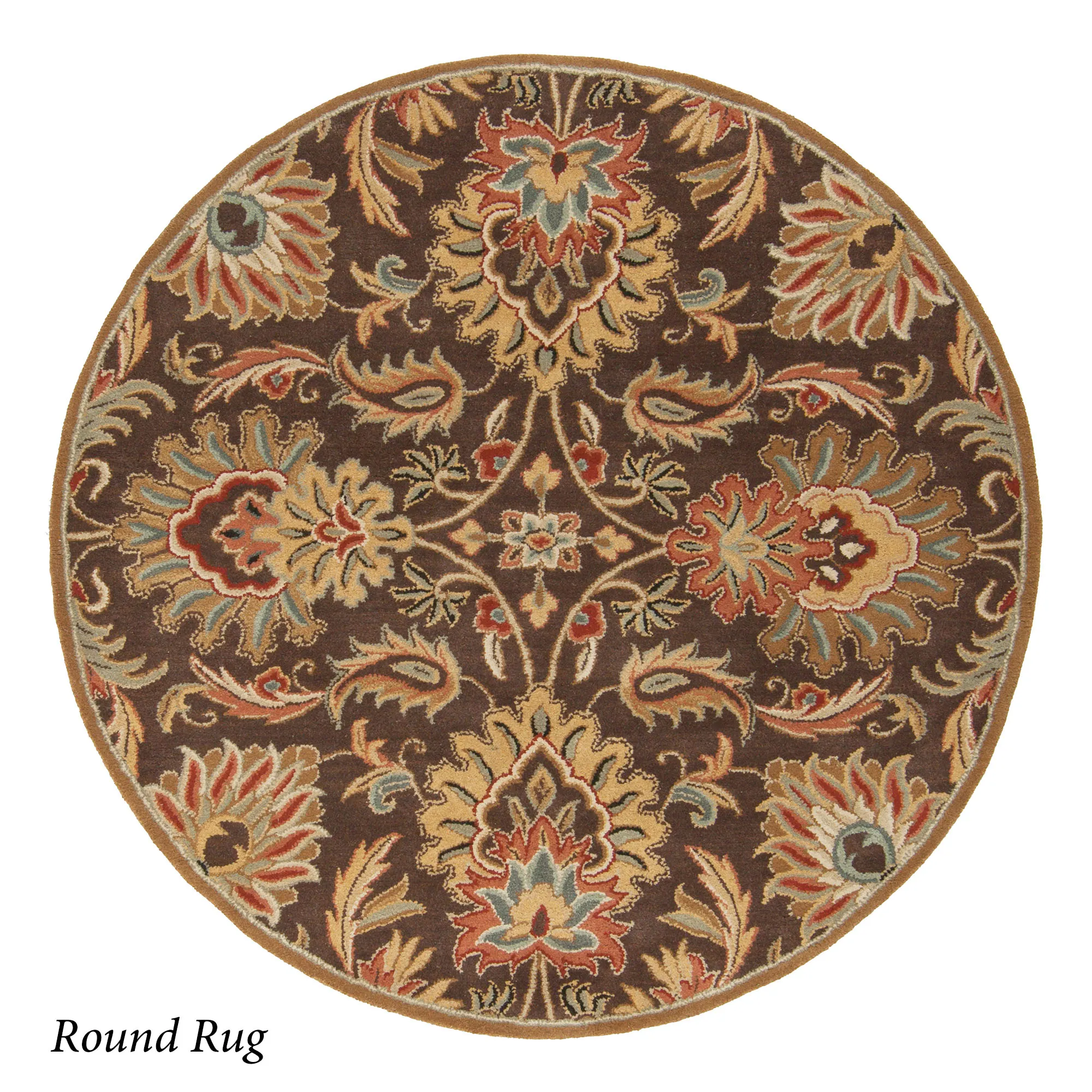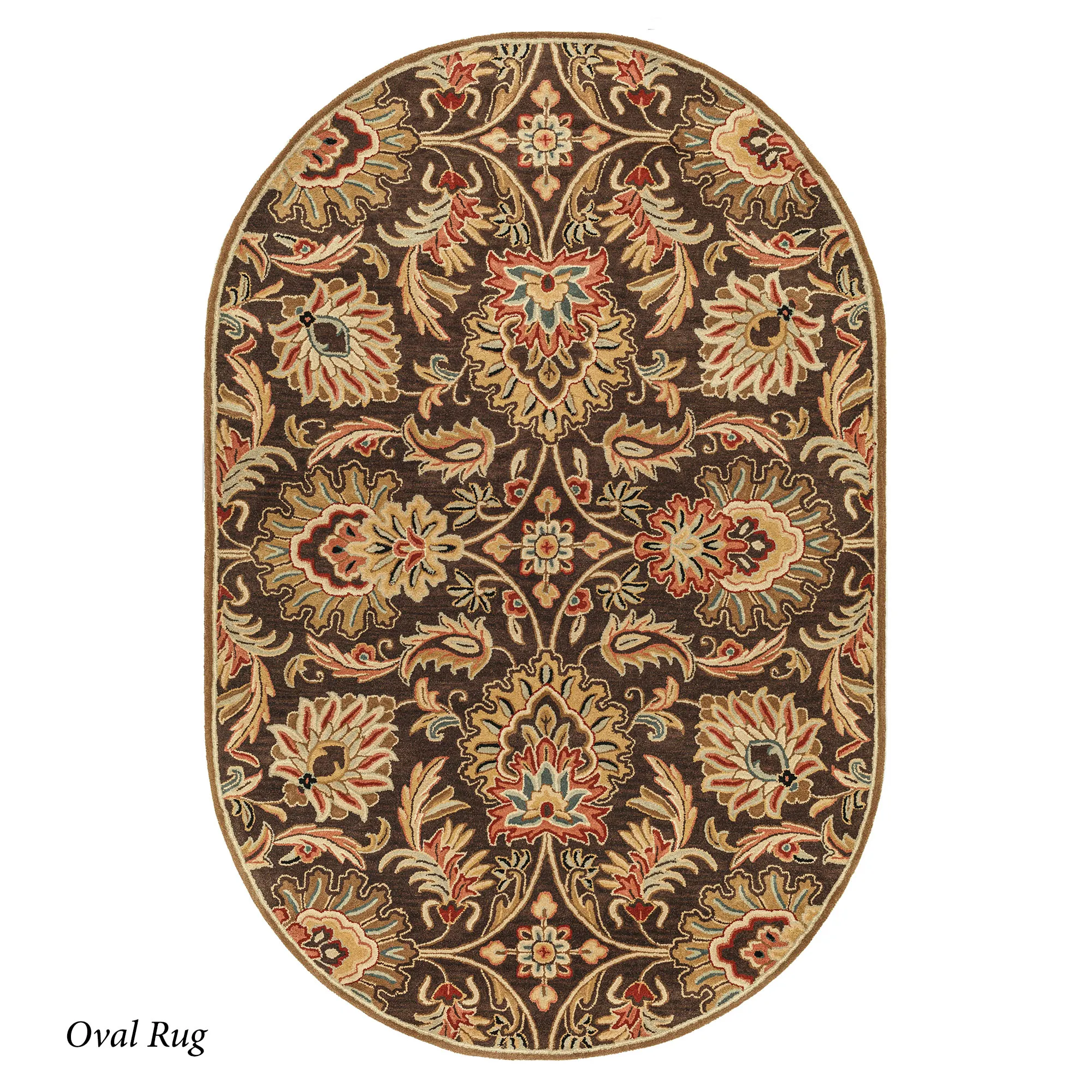Florals, leaves, and scrolling acanthus leaves flourish beautifully on the Alma Caesar Area Rug. Hand-tufted wool rug, .87" thick, includes shades of dark brown, burgundy, brown, brick red, light beige, black, seafoam, medium gray, wheat, and light gray. Backing is cloth-covered latex. We recommend professional cleaning by a rug cleaner. Made in India.