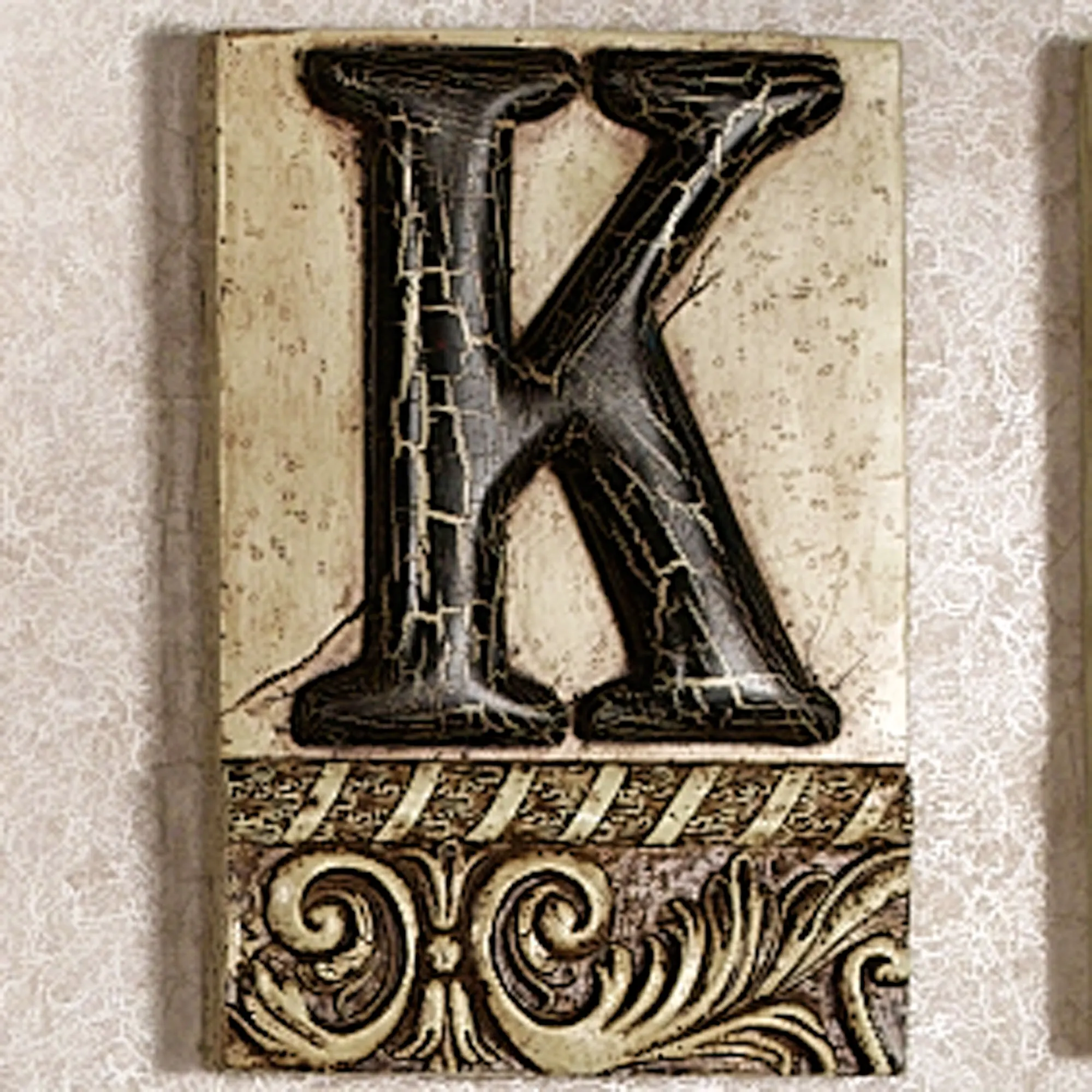 The lovely K Alphabet Letter Tile Plaque is a wonderful accent for your wall. This antiqued, raised letter tile is made of resin and finished in aged ivory and crackled black. The bottom is decorated with scrolls. This stylish, faux Italian tile letter measures 6"Wx8.5"H.