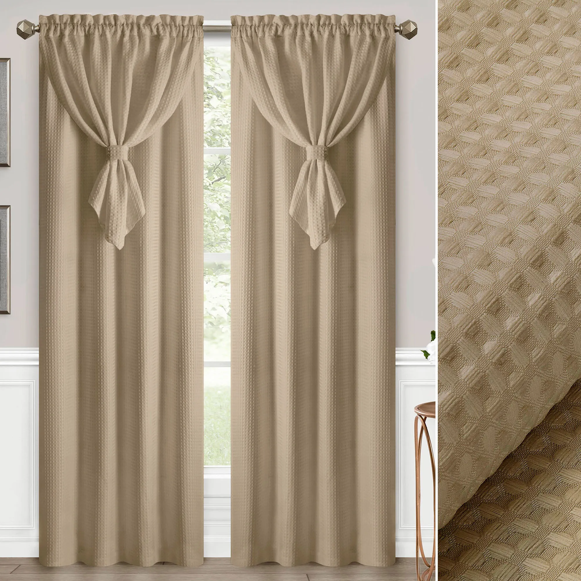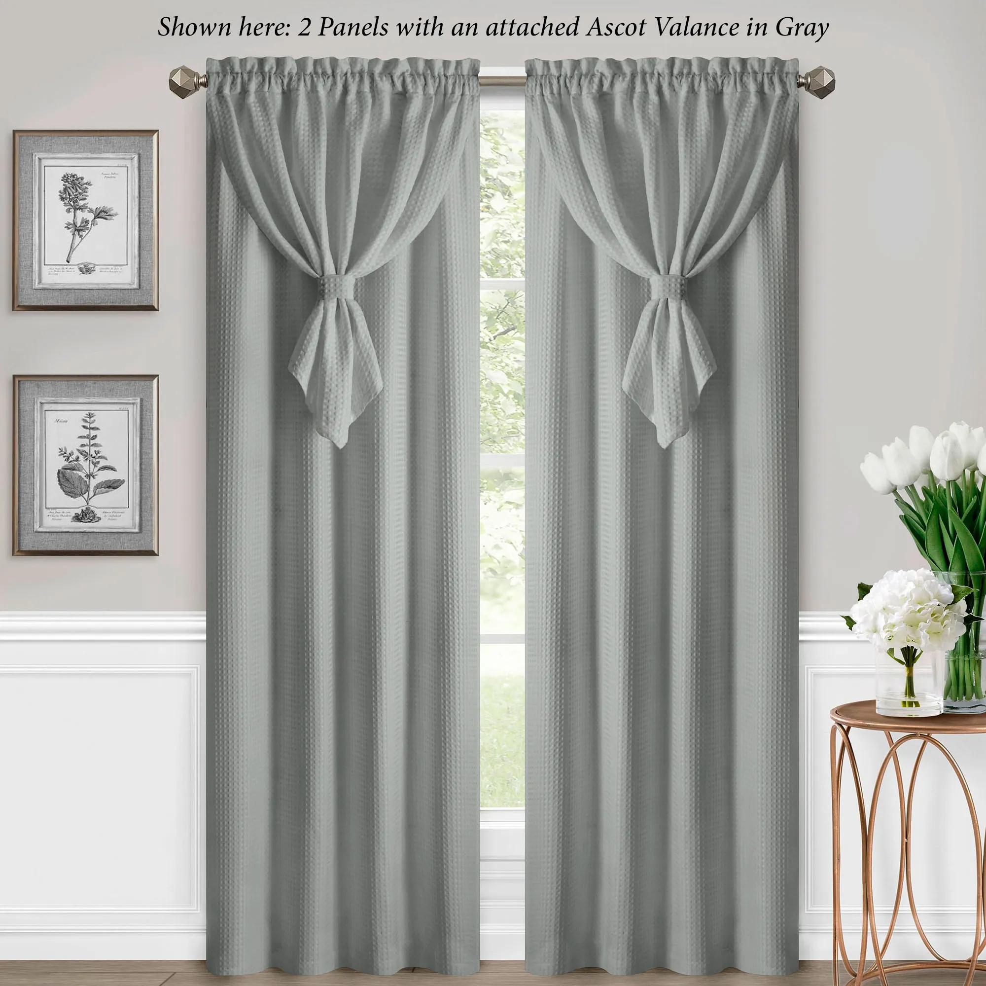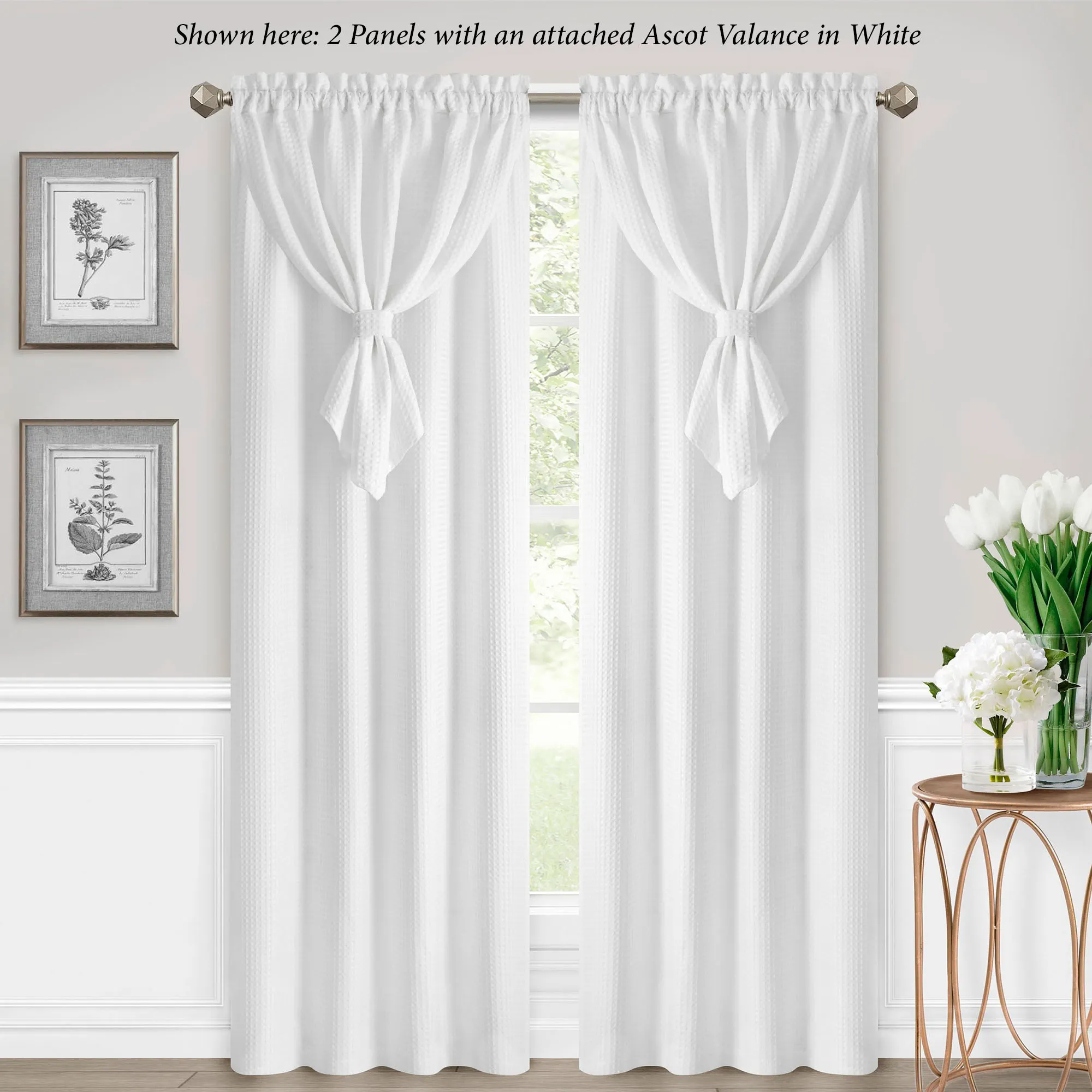 Altura Waffle Weave Curtain Panel with Attached Ascot Valance