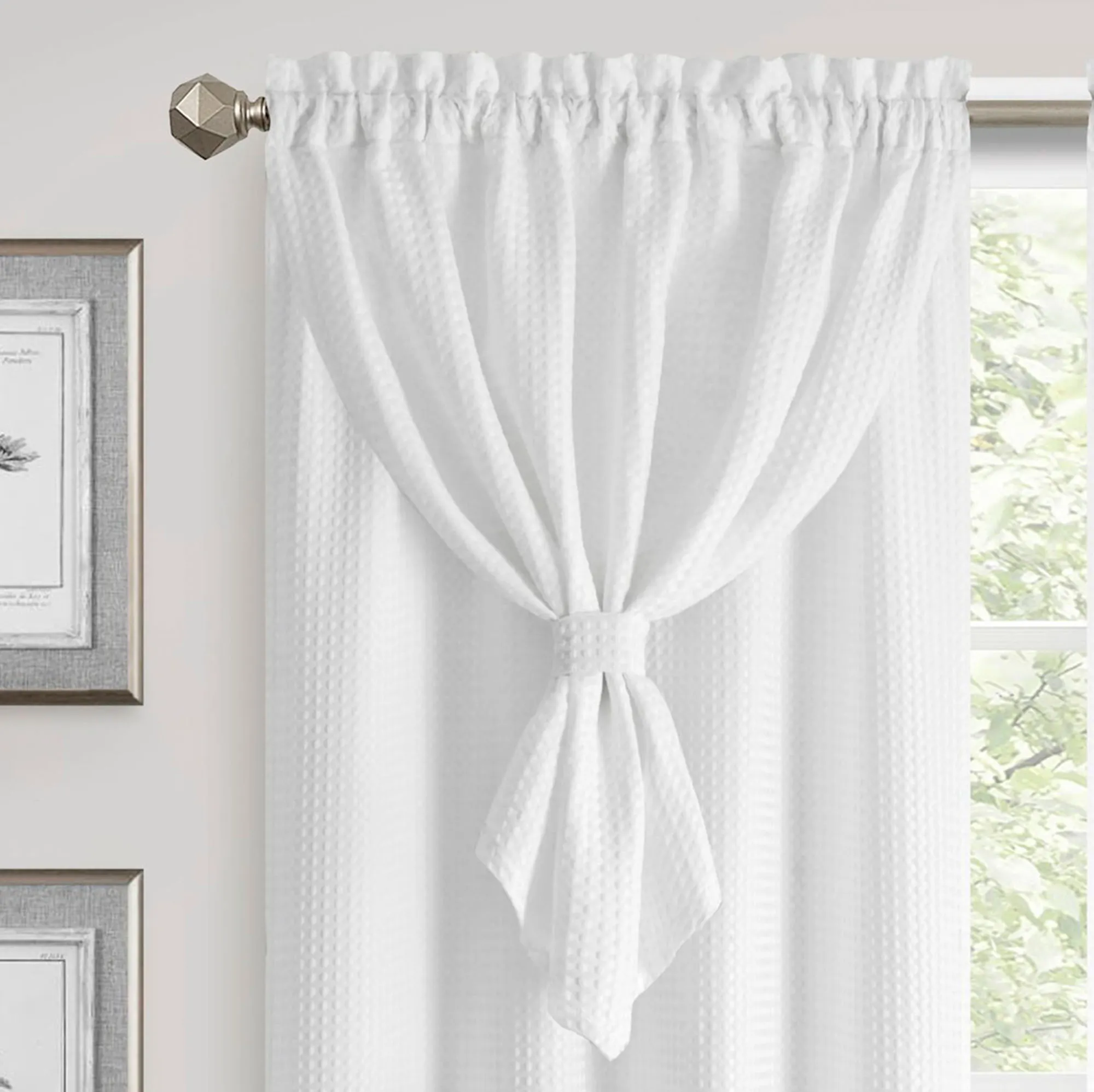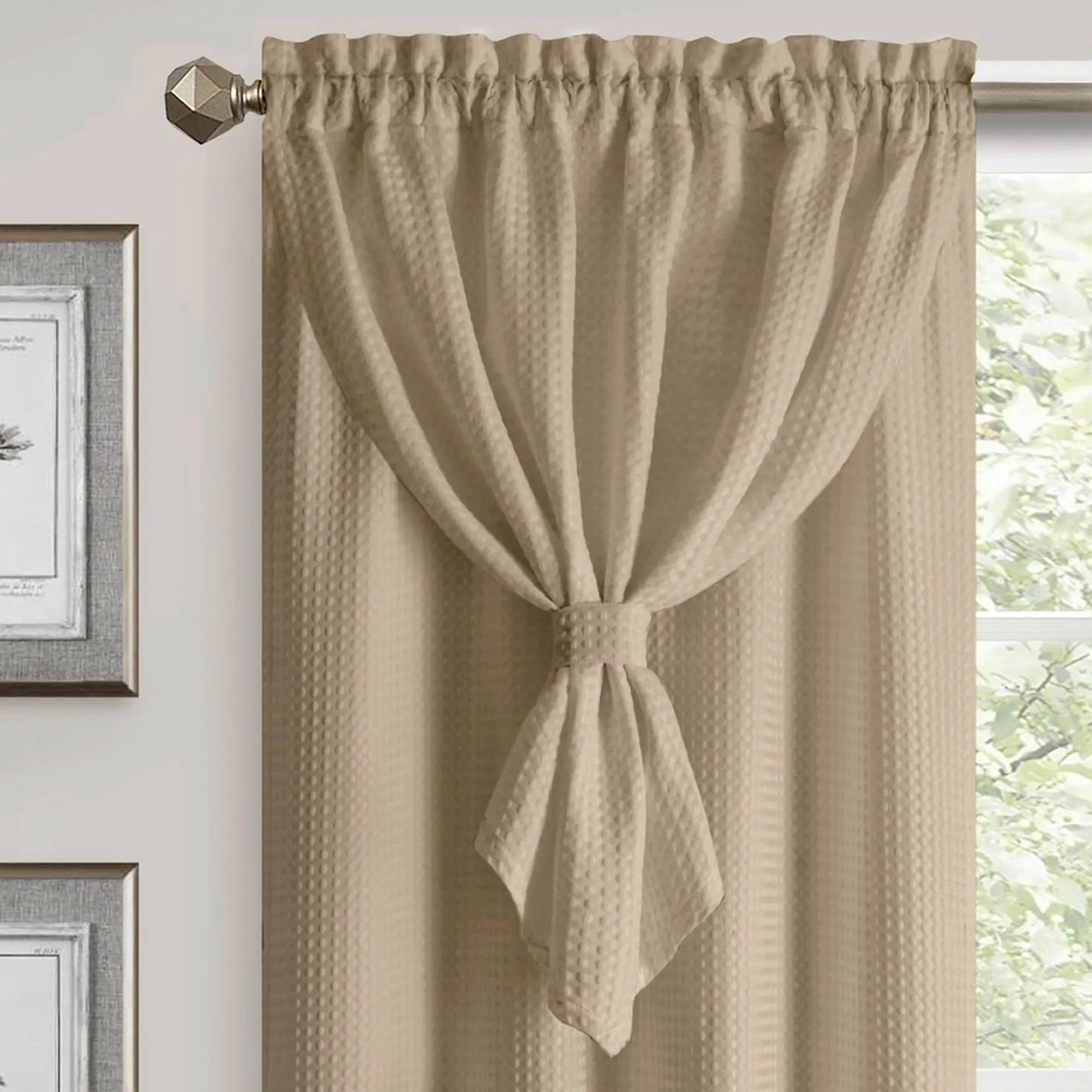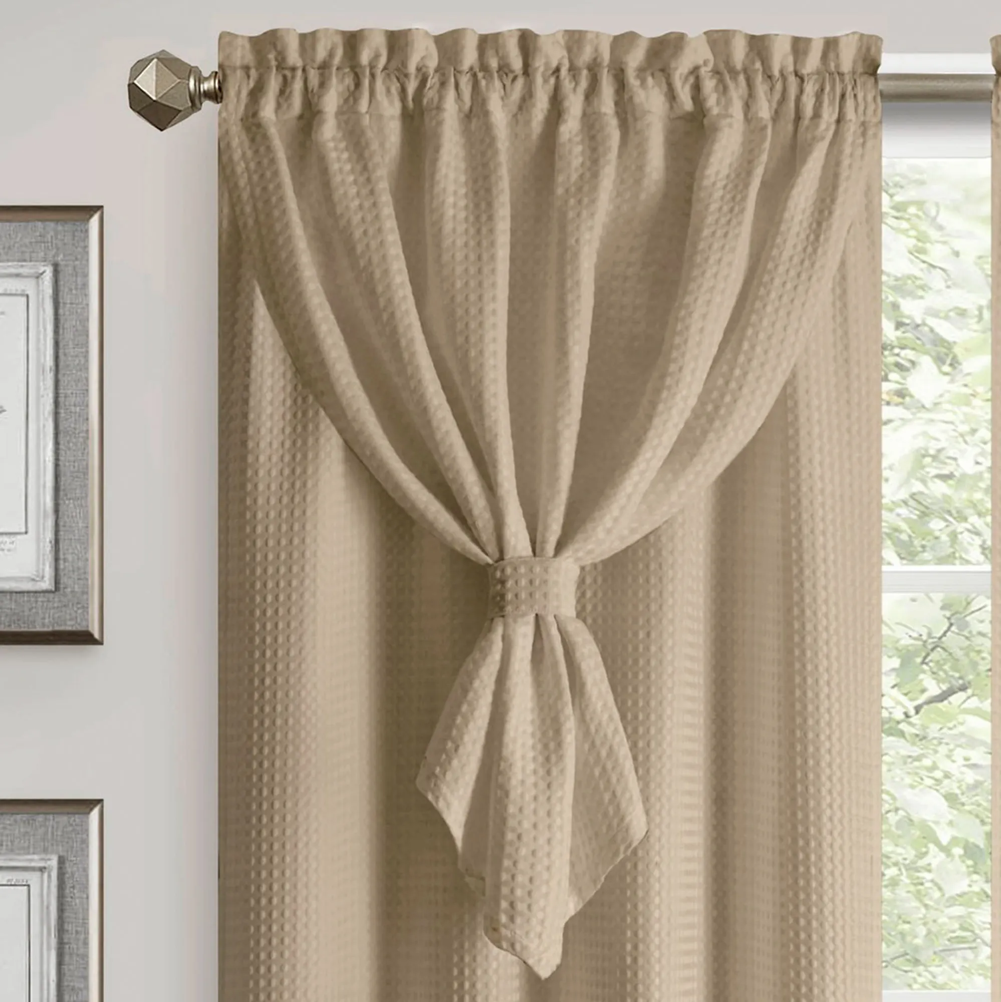 Altura Waffle Weave Curtain Panel with Attached Ascot Valance