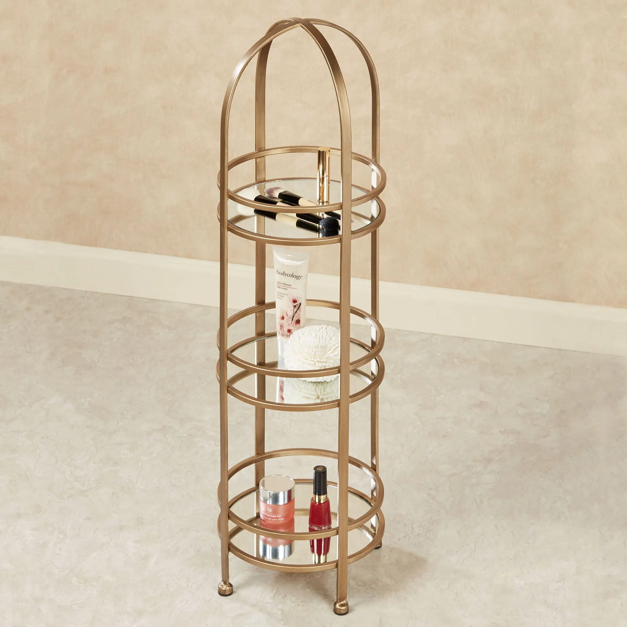 Alyssa Gold Metal Floor Stand with Elegant Round Mirrored Glass Shelves