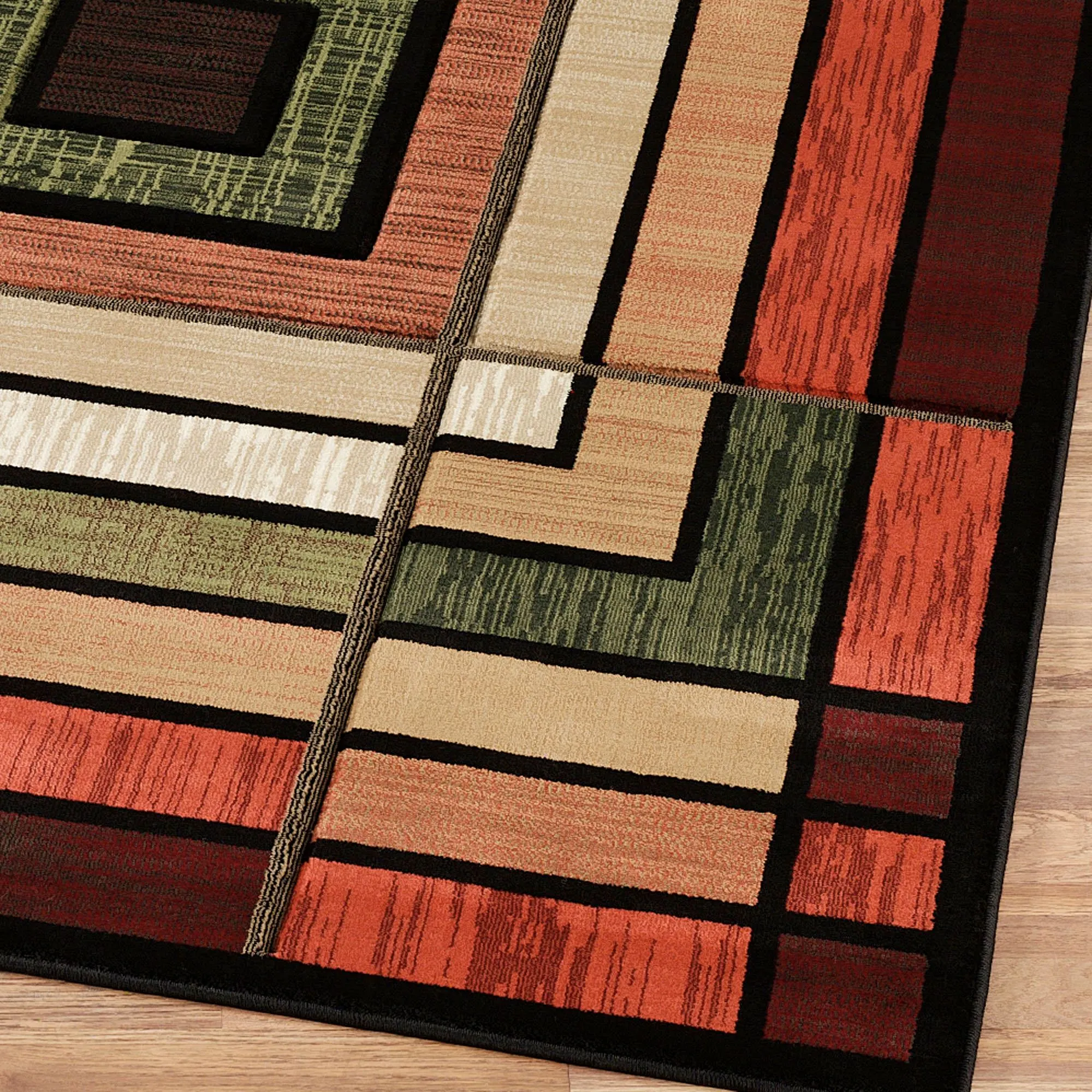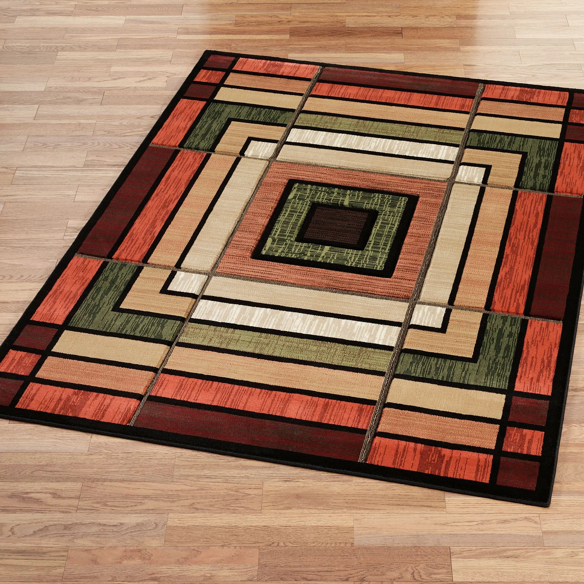 The interesting square motif featured on the Ambience Terra Cotta Area Rugs resembles a stained glass design. Machine-woven, heat-set polypropylene area rugs, .5" thick, have handcarved detailing. Terra Cotta coloration has hues of terra cotta, fern, cream, tawny, camel, gray, and ruby. We recommend professional cleaning by a rug cleaner. Imported.