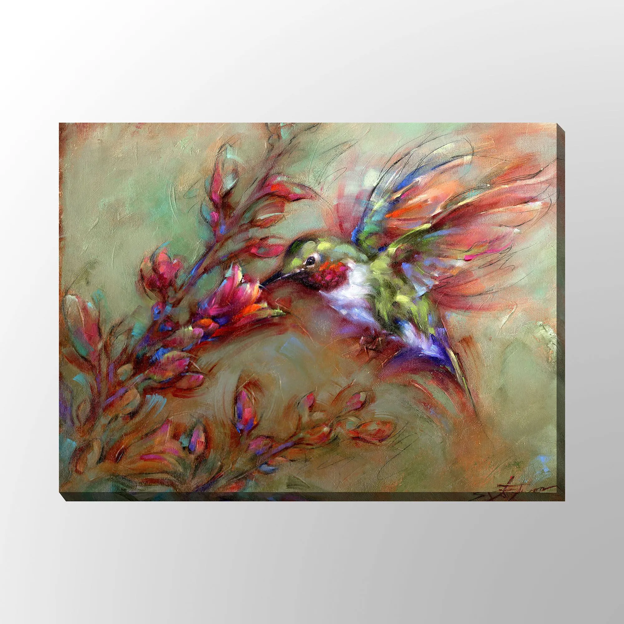 The Ambrosia Hummingbird Wall Art is a giclee on canvas over vinyl stretchers.