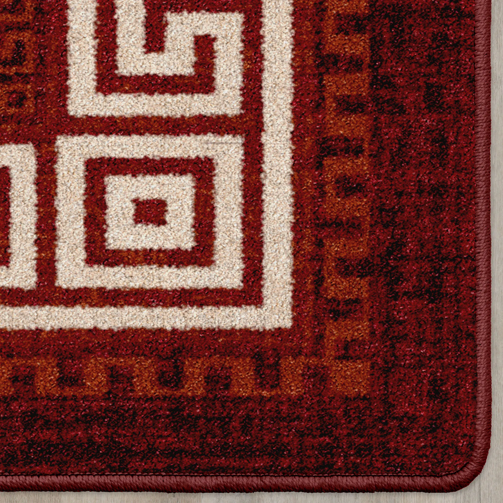 Andros Dark Red Stain Resistant Greek Key Border Area Rugs