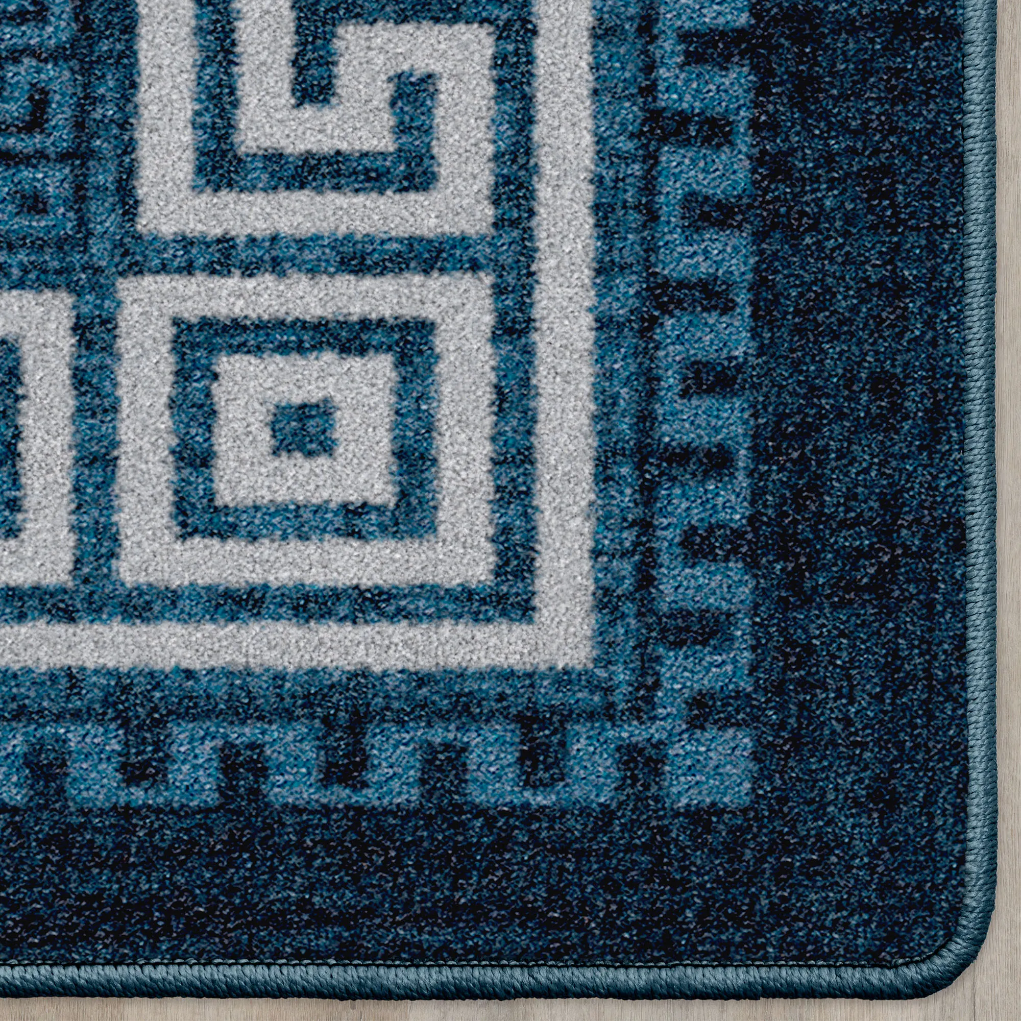 Andros Navy Stain Resistant Greek Key Border Area Rugs