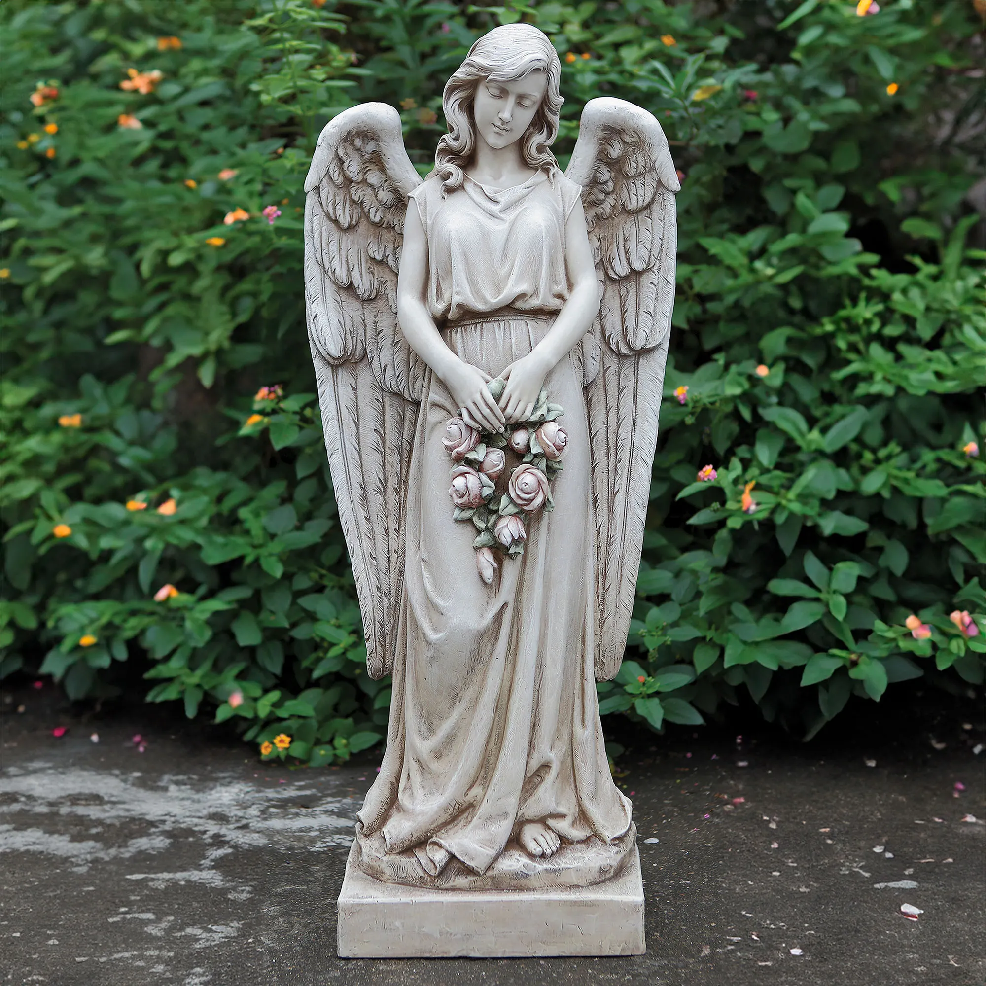Angel Holding Rose Wreath Outdoor Garden Statue from Josephs Studio by Roman