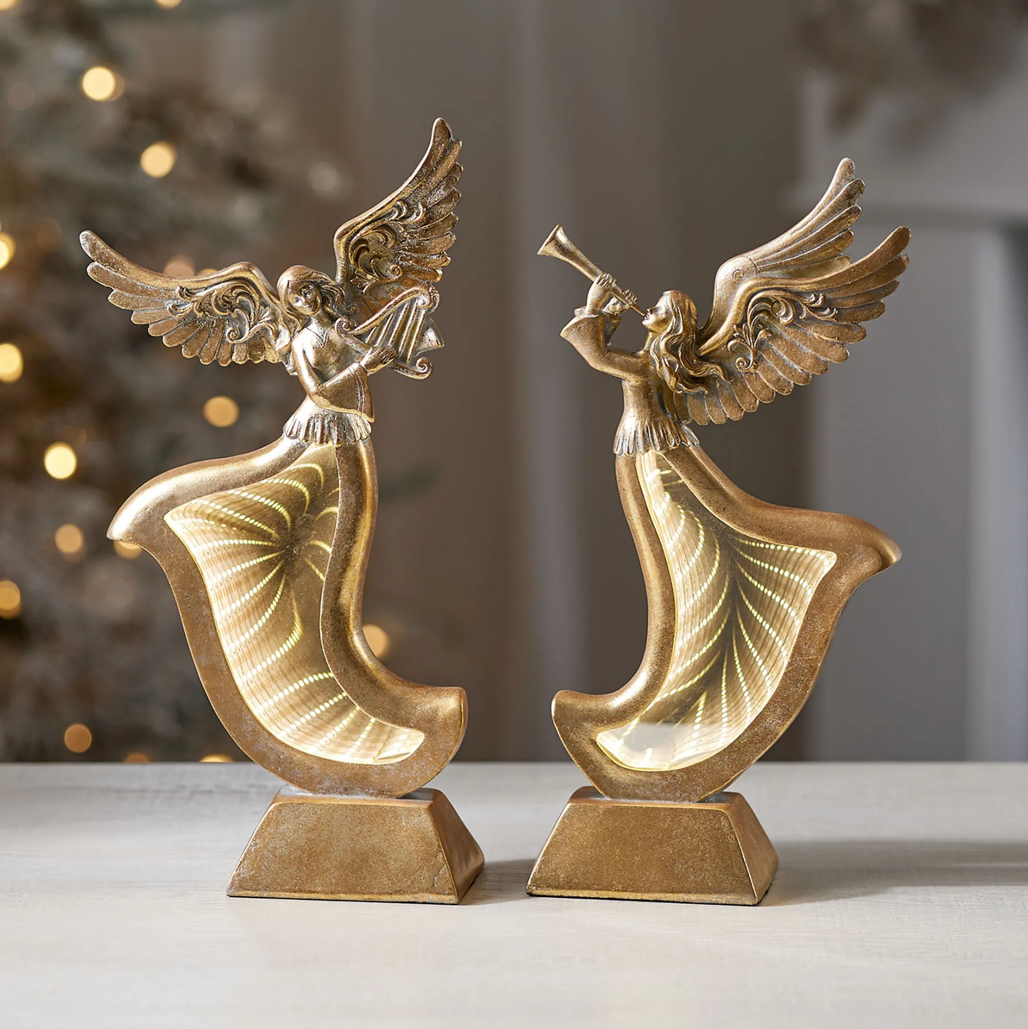 Gold Angelic Blessings EkkoLight Infinity Light Table Sculpture Set