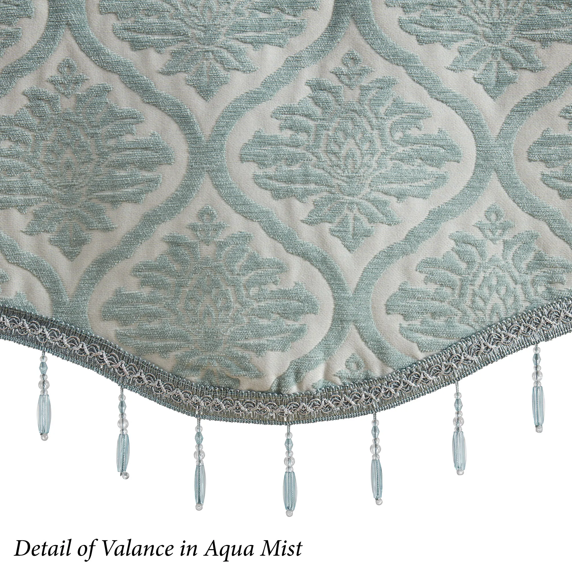 • Valance has acrylic beads and gimp trim