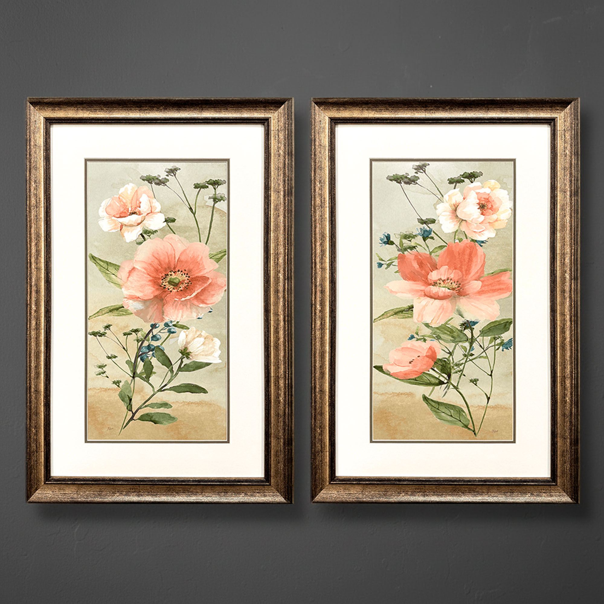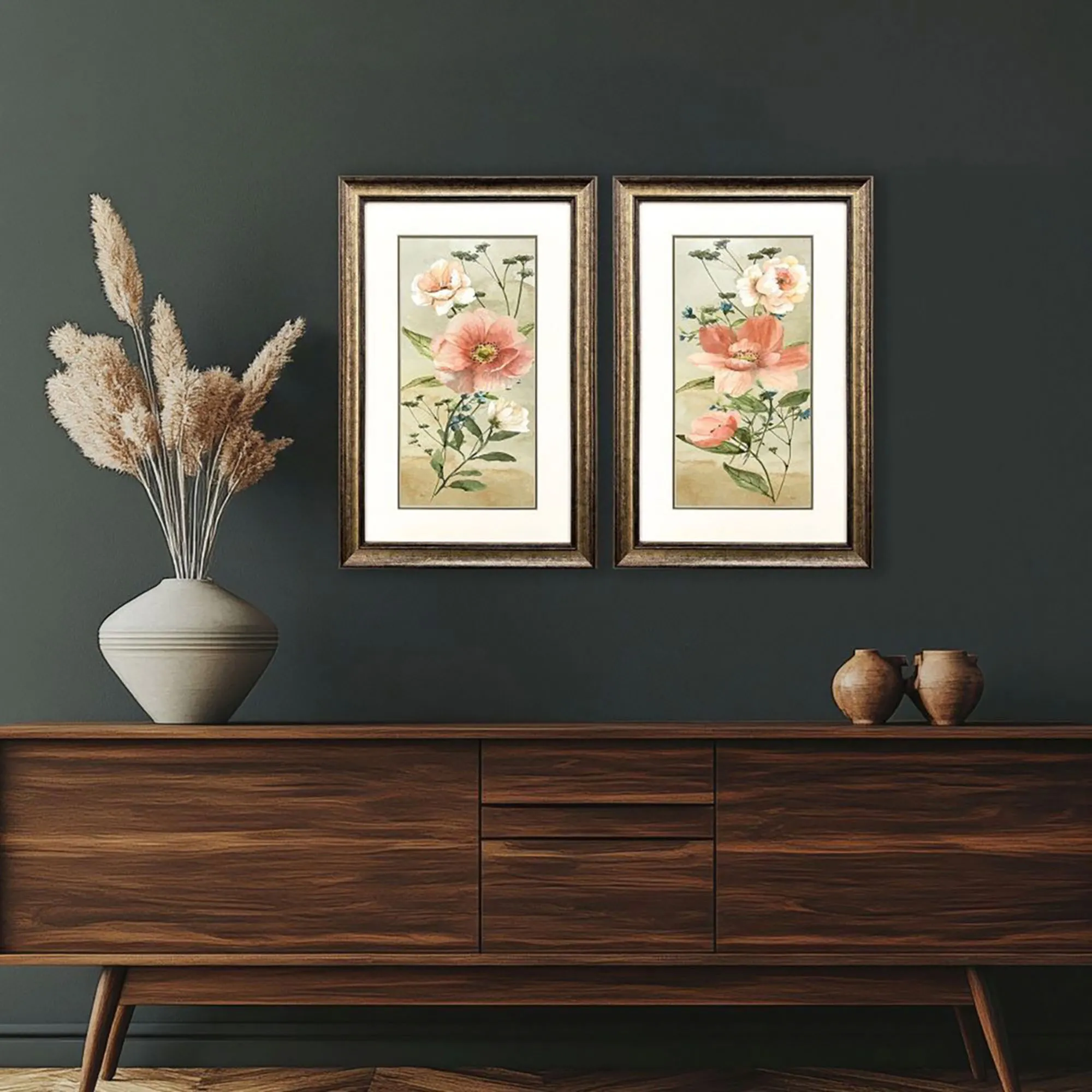 Antique Floral Coral Flower Blossom Framed Print Wall Art Set