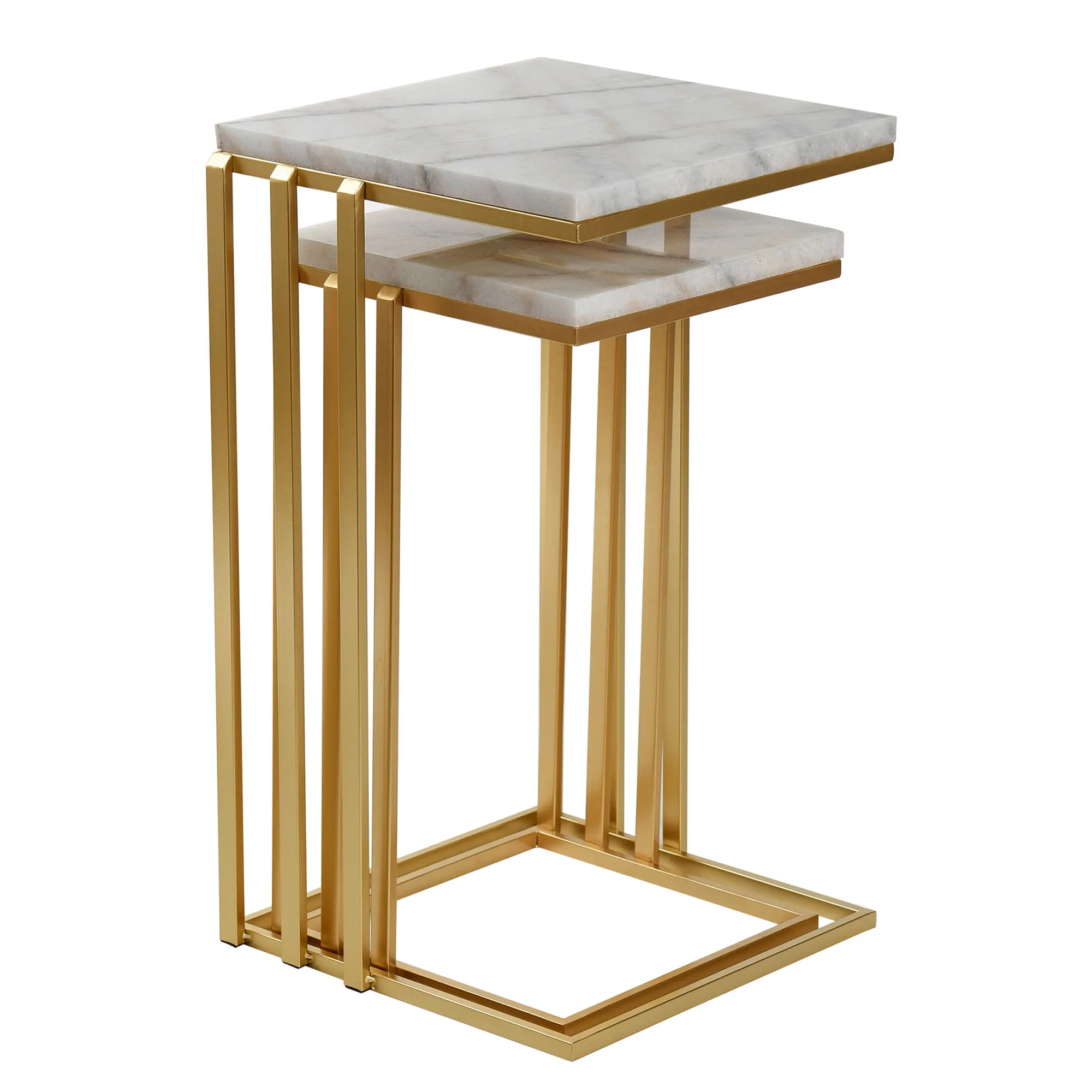Anya Gold Metal Modern Nesting Table Set with Marble Tops