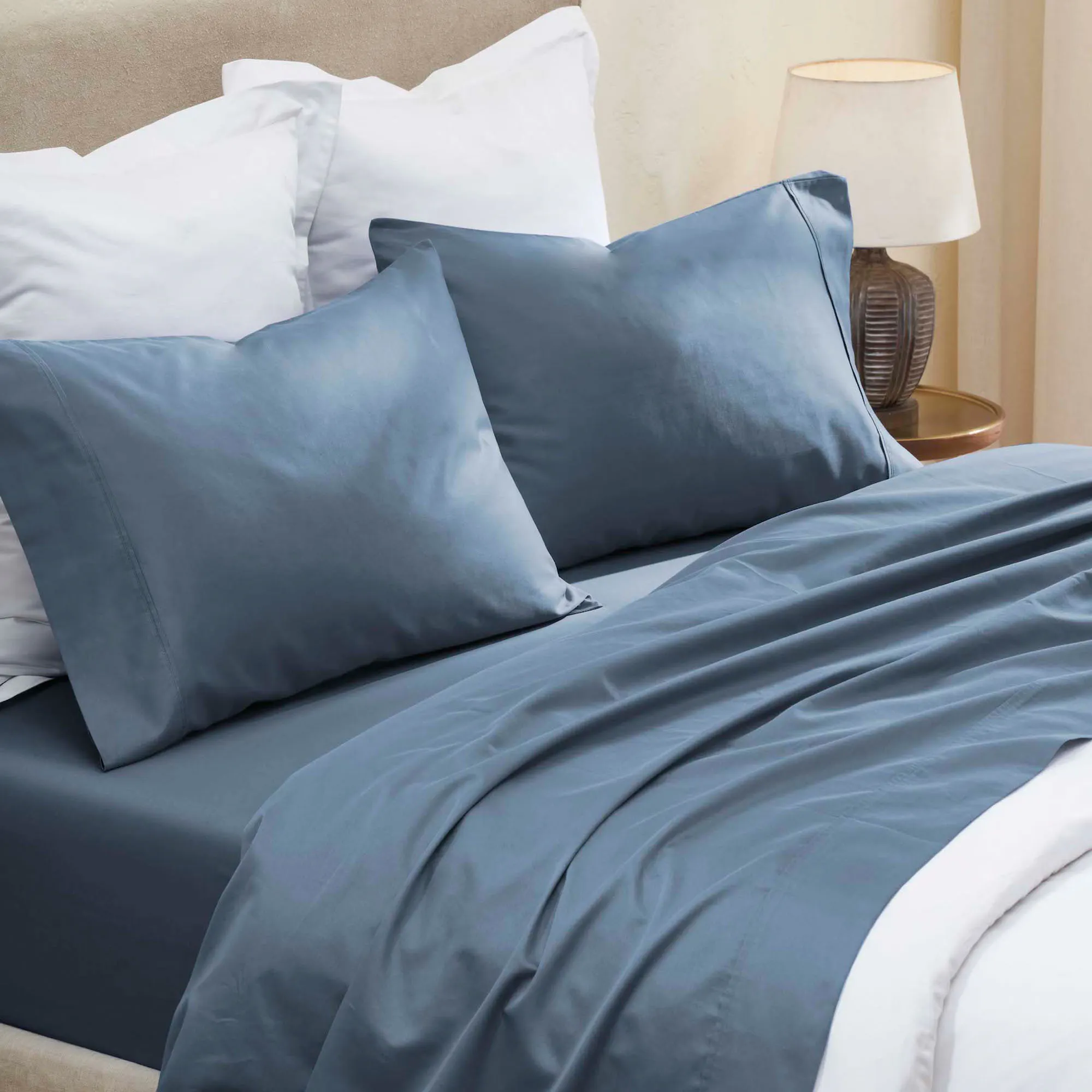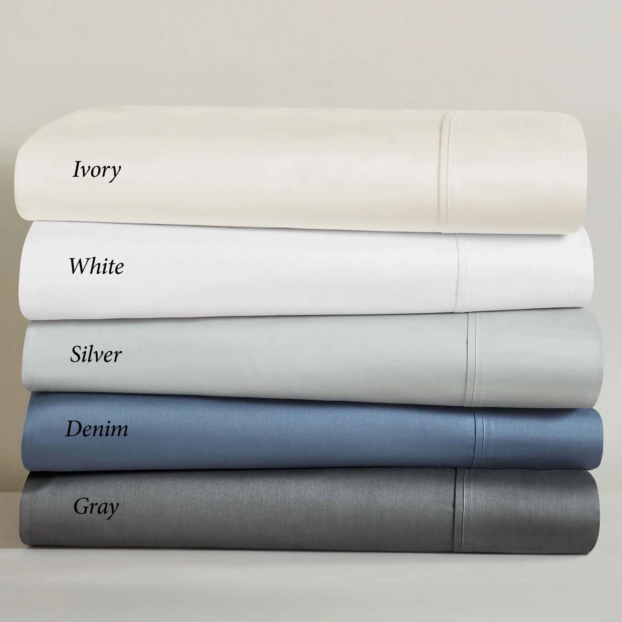 Complement any bedding ensemble with the Apus Sheet Set. These luxurious, solid color, cotton sateen sheets have a 500 thread count and are OEKO-TEX(R) STANDARD 100 certified, meaning that they don't contain any harmful substances or chemicals. The flat sheet and pillowcase(s) have a refined "Z" hem. The fitted sheet has elastic all around with elastic straps for a secure fit and 15" deep pockets to fit mattresses up to 17" deep. The sheet set includes one flat sheet, one fitted sheet, and pillowcase(s). Machine washable. Imported.