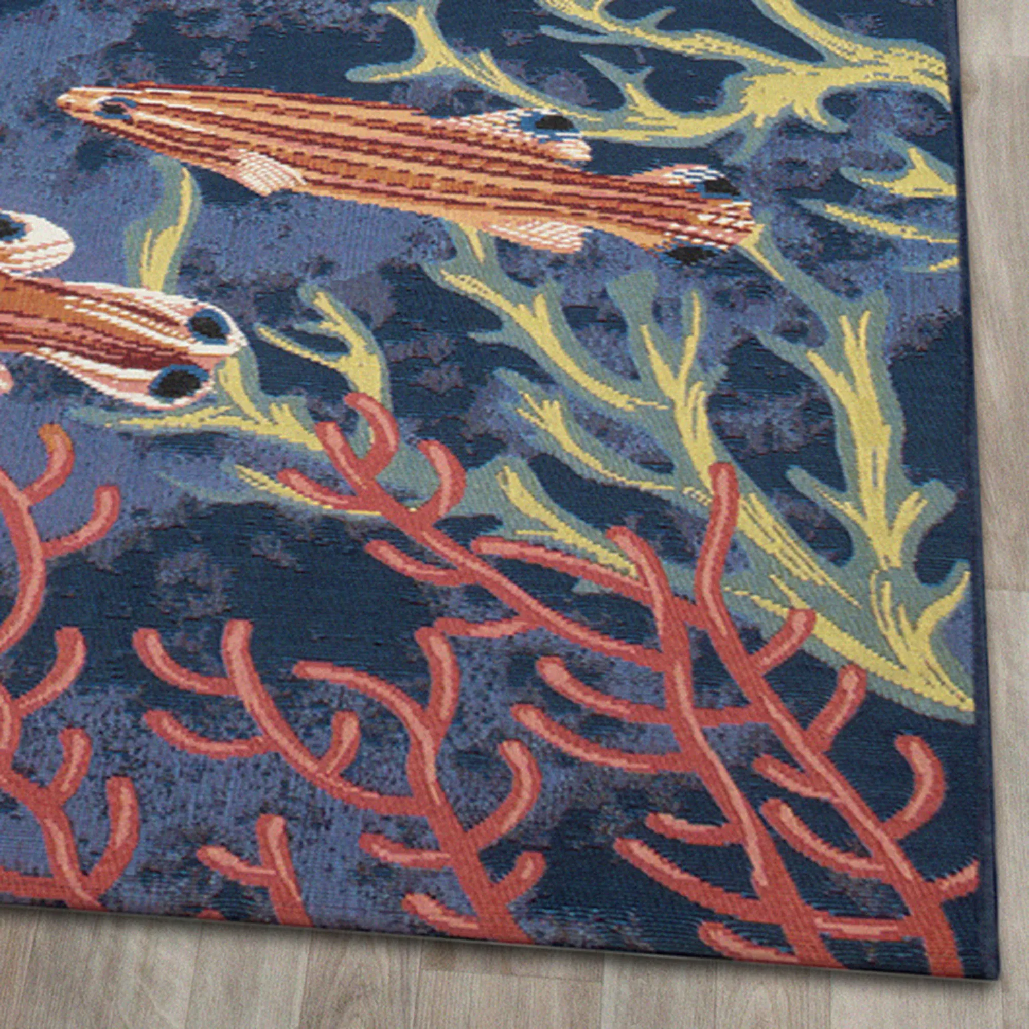 Aquatic Vista Navy Blue Tropical Fish Indoor Outdoor Rugs by Liora Manne