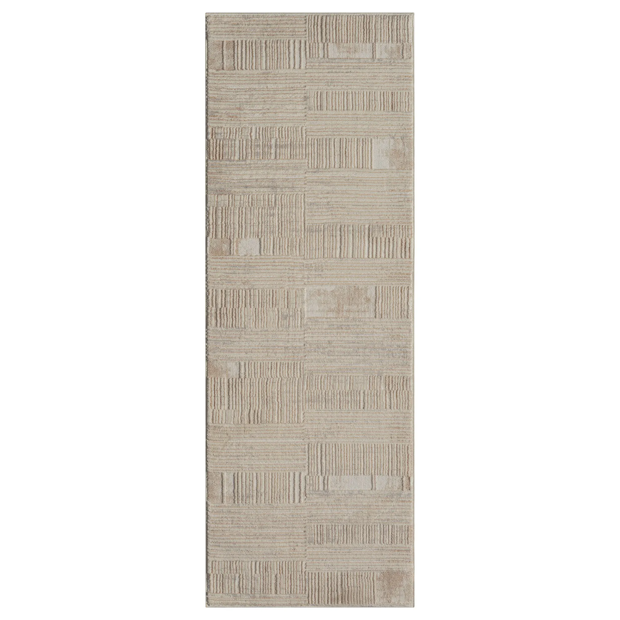 Refresh a space with the rich texture of the Archie Abstract Area Rug. Power-loomed from a polypropylene/polyester blend, the .35" thick rug features various geometric rectangular blocks with carved edges that create a unique hi-low pile. Neutral tones of beige, ivory, linen, and gray complement a variety of styles. Backing is cotton. We recommend professional cleaning by a rug cleaner. Imported.