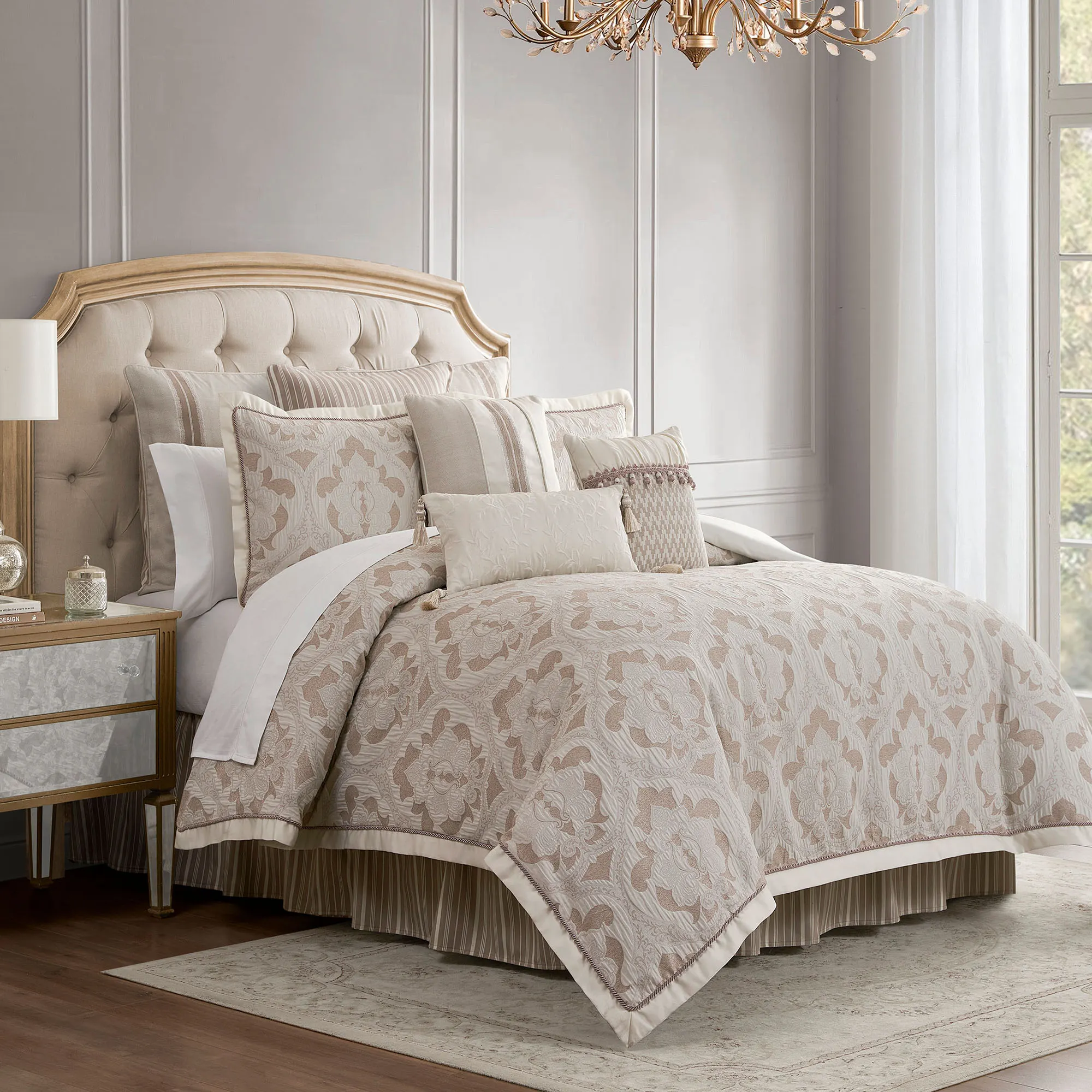 Arderra Ivory Damask Comforter Set Luxury Bedding from Waterford Linens