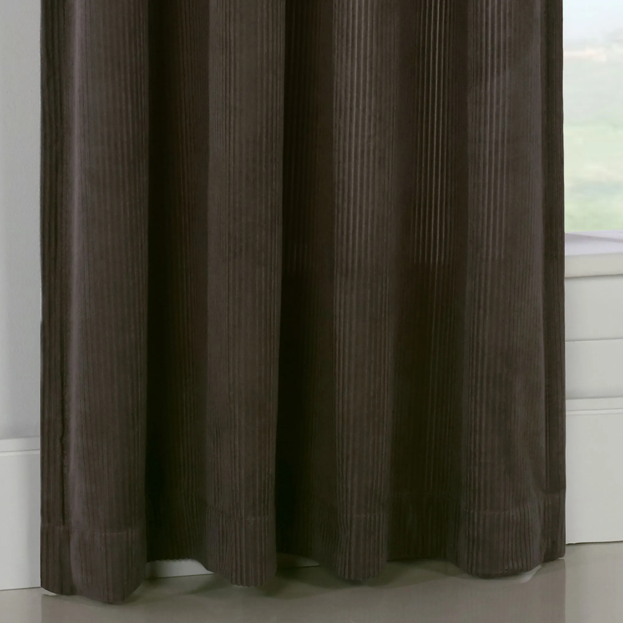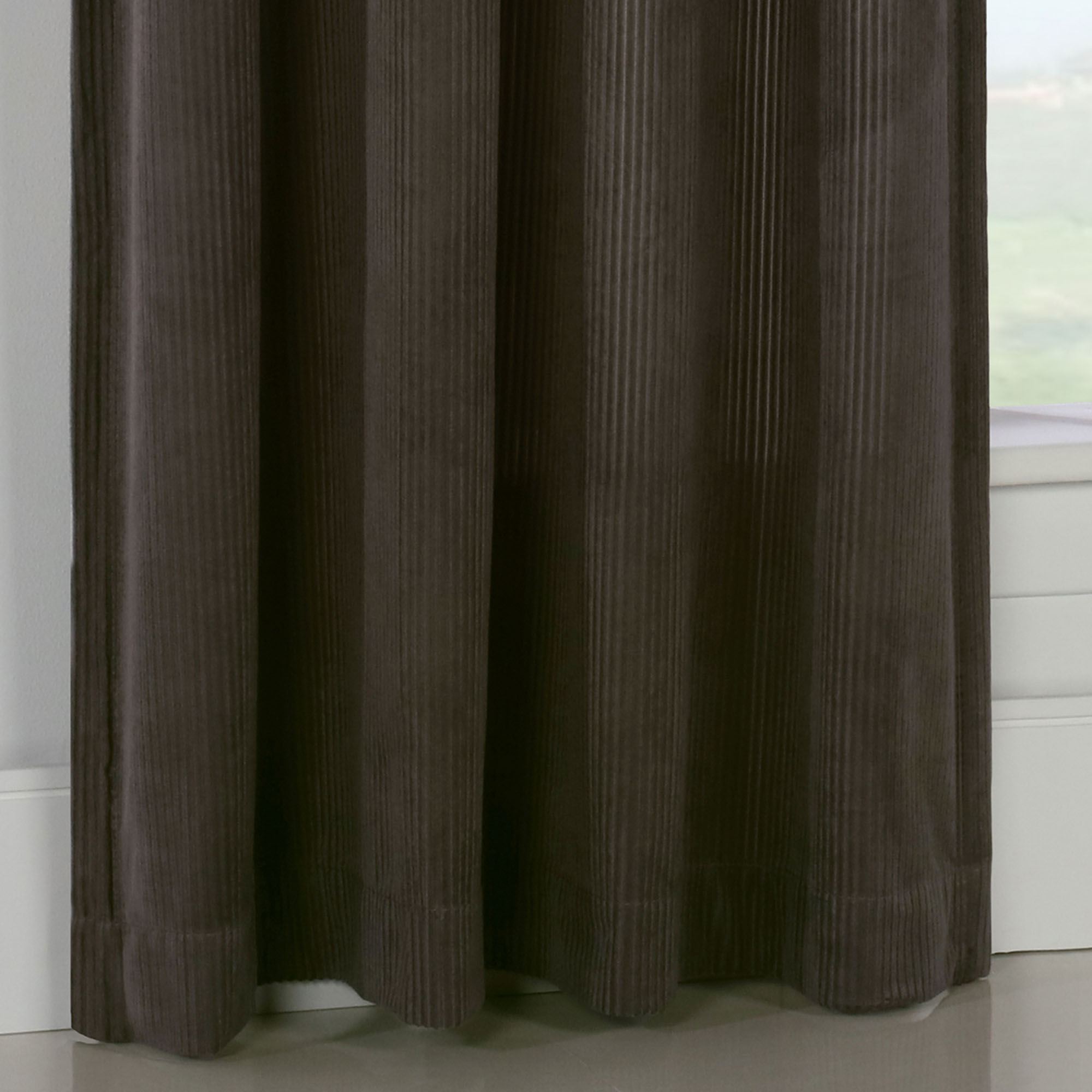 Make a fashionable statement upon your decor with the Arriana Grommet Curtain Panel. Each solid color, polyester panel features a soft corduroy design with alternating heavy and light weaves in a classically subtle vertical stripe. In a brushed silver finish, eight 1.5" dia. metal grommets top each panel. Sold individually, each panel measures 50"W. Machine washable. Imported.
