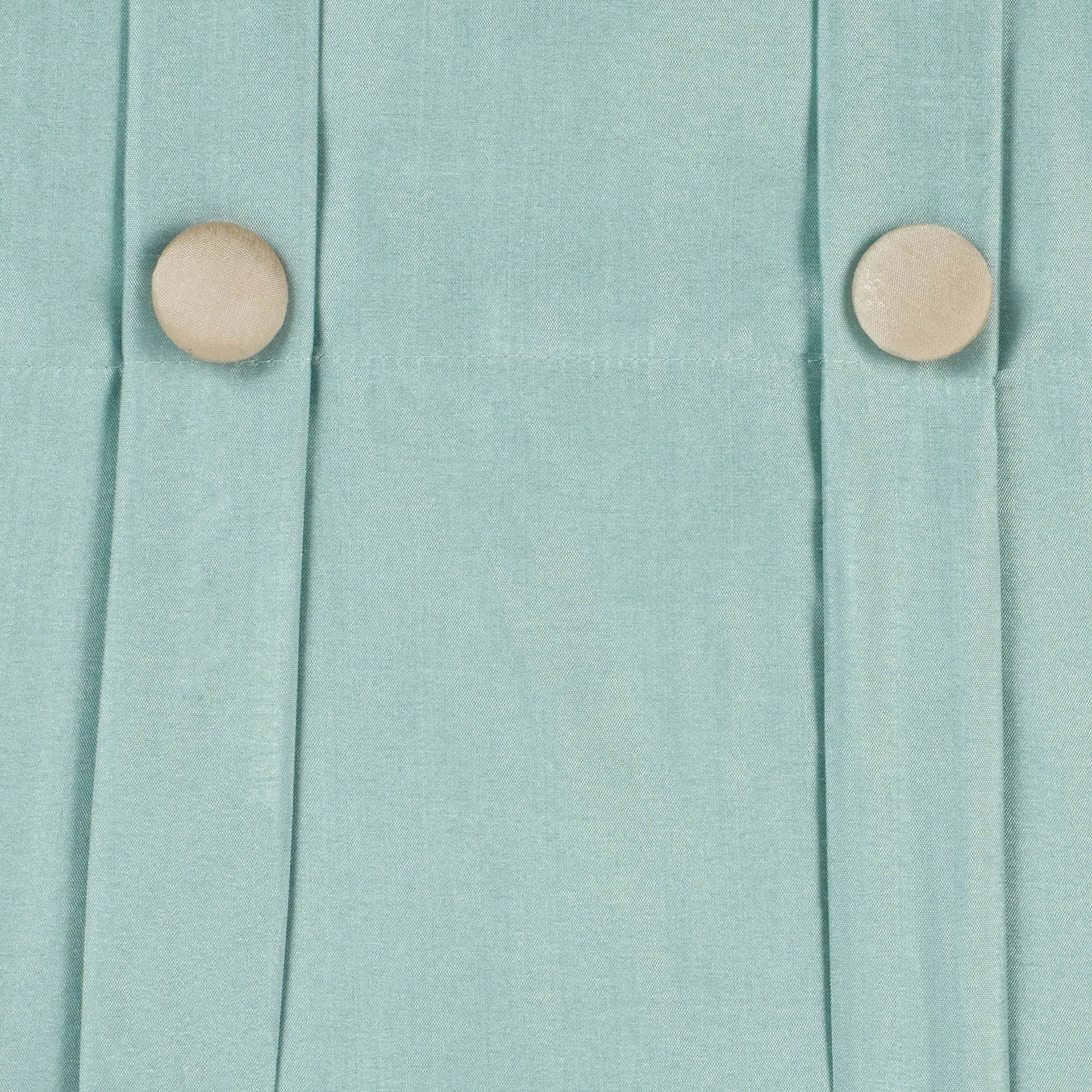 The solid color, textured polyester Artisan Box-Pleated Wide Curtain Pair has an elegant pleat design and features two-to-one fullness with the unique header. Box-pleated curtains have cream buttons at the top. Easy-to-style, lined panels have a pull wand that may attach to either side - you do not need any drapery pins or hooks to accomplish the pleat look! Each panel has six 3.75"L loops on the back that slide onto your decorative curtain rod. Sold as a curtain pair. The wide curtain pair measures 112"W. Machine wash. Imported. The curtain pair width is the total width of two panels together.
