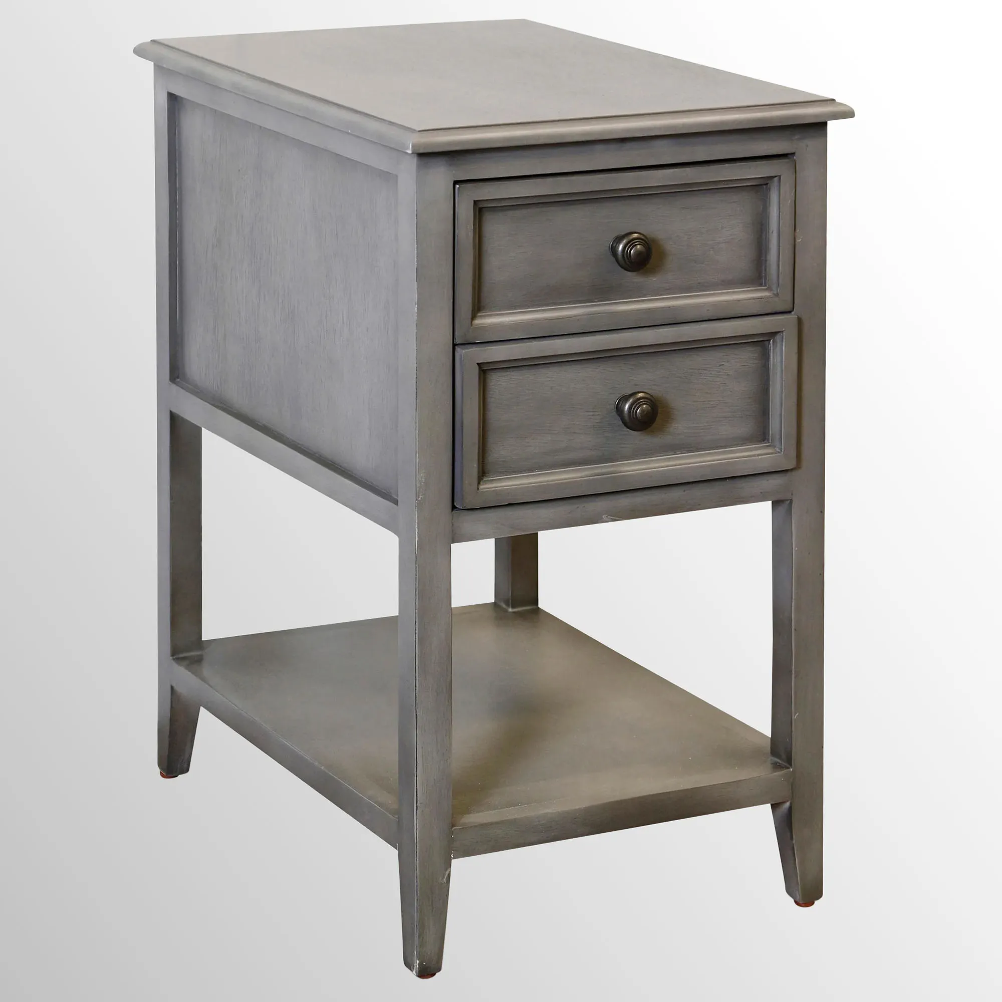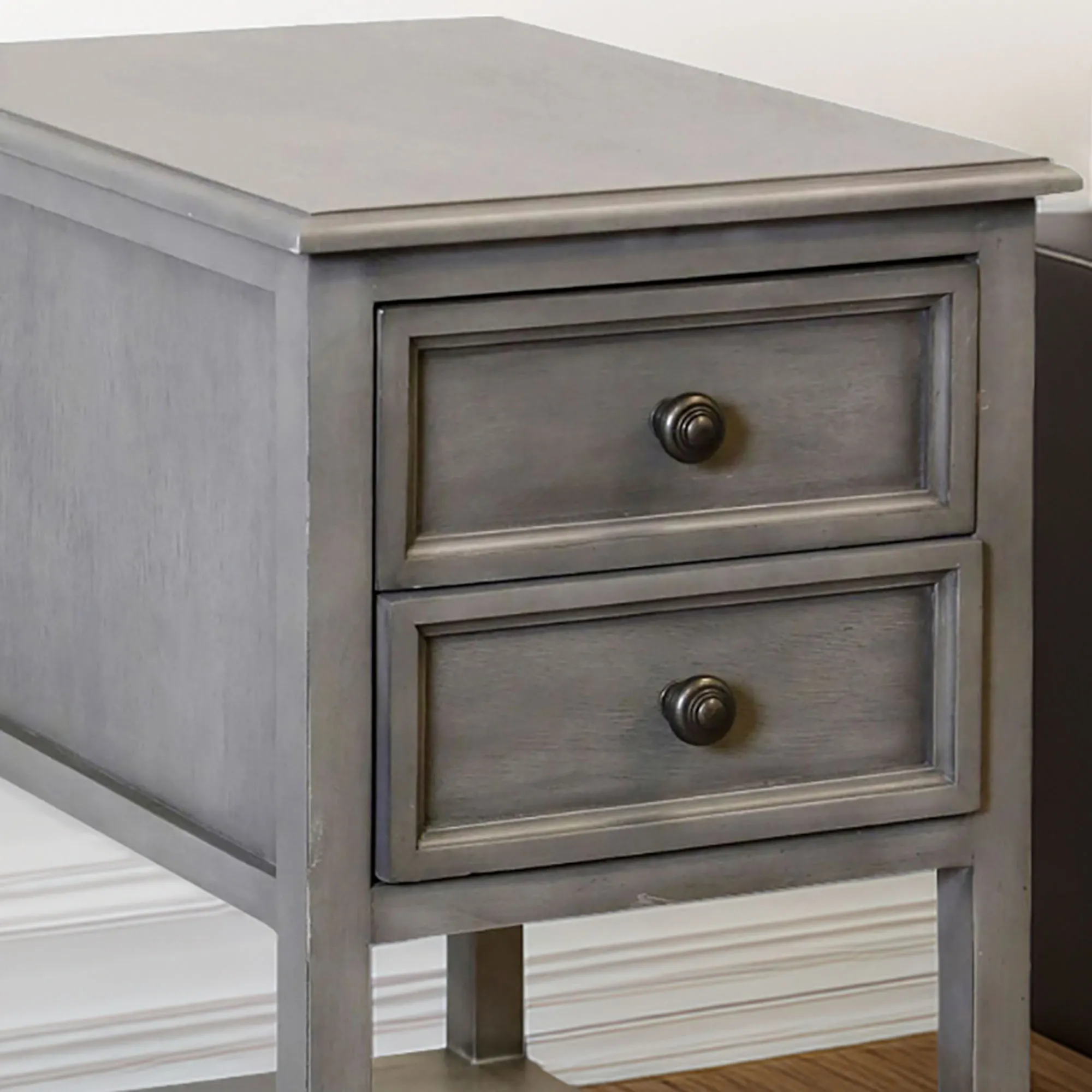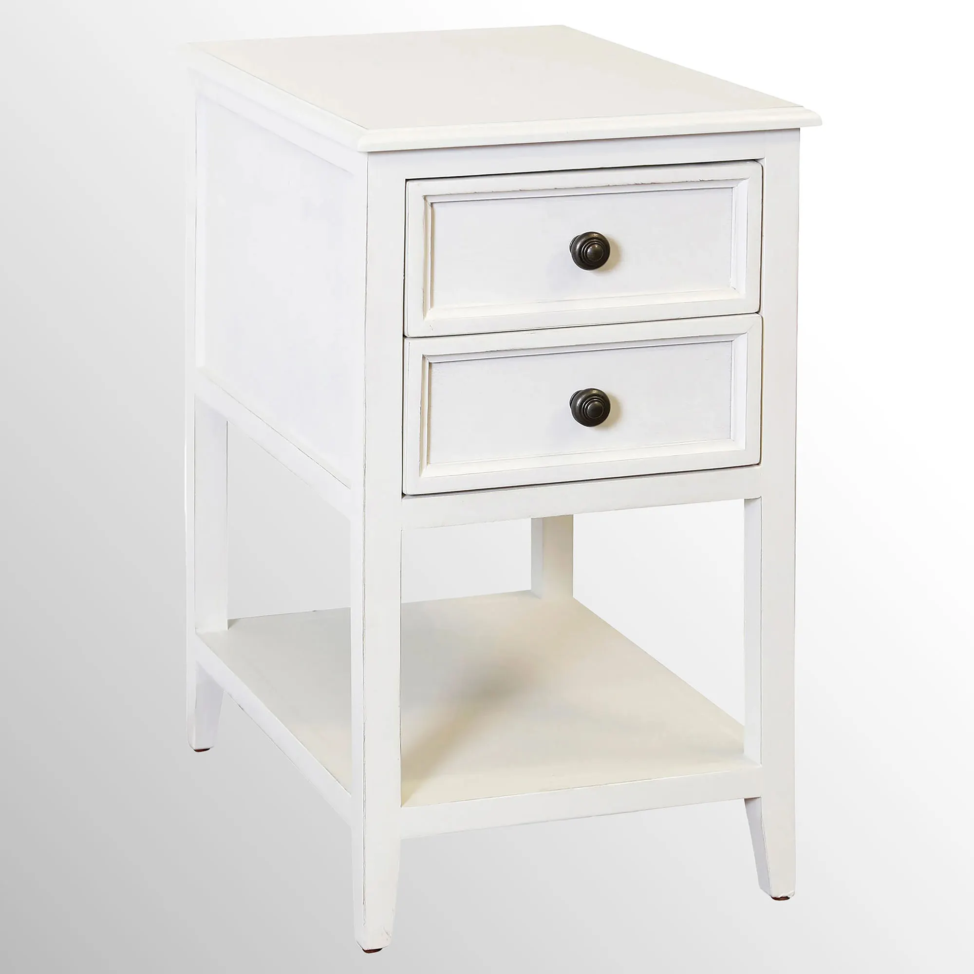 Aryana Acacia Wood Two Drawer Side Table with Open Storage Space