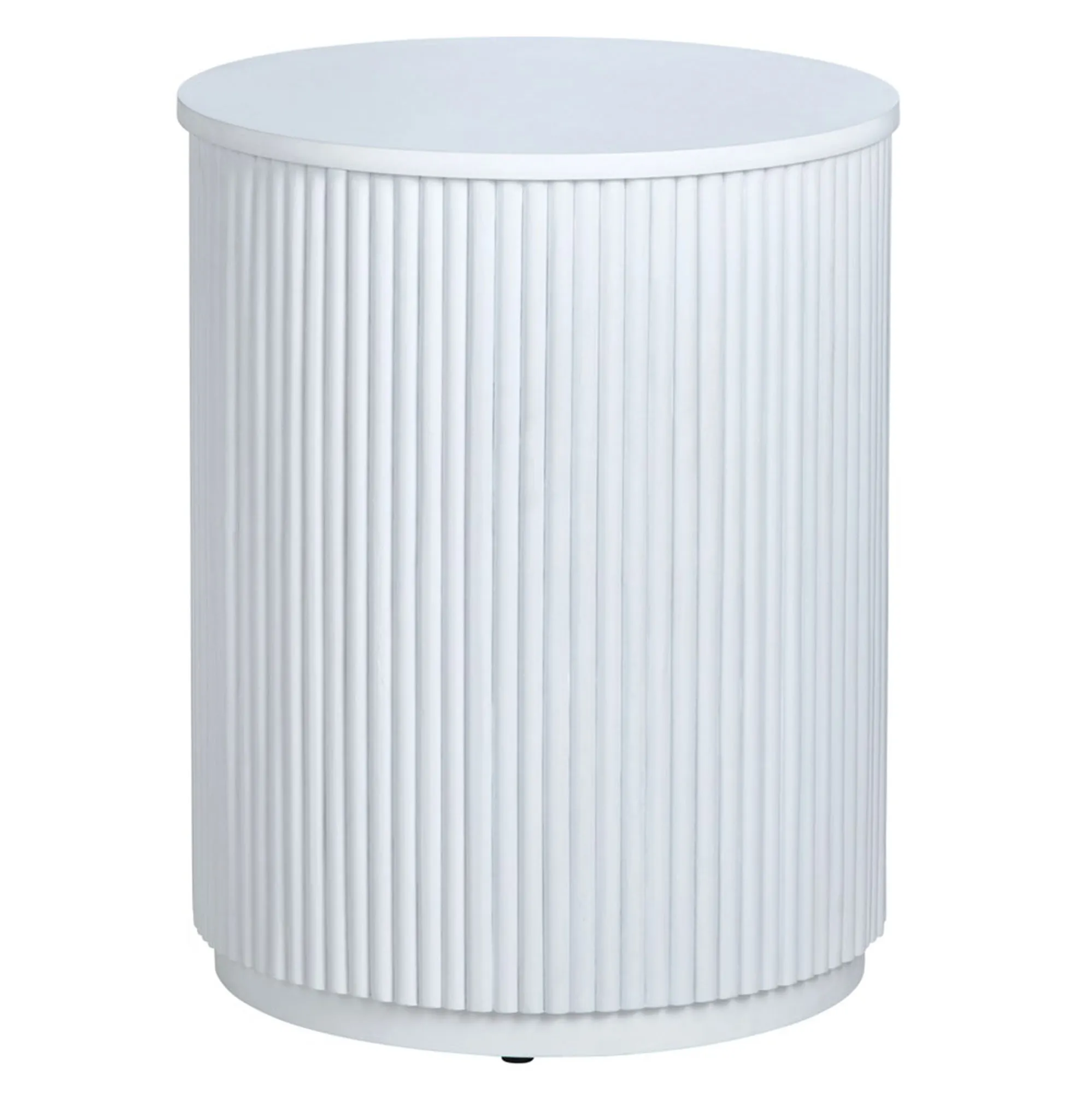 The fluted sides, chic texture, and crisp painted finish of the Astoria Accent Table add stylish flair to your space. With a round cylindrical shape, the charming wooden table features a bold solid color, smooth top, and vertical ribbed sides. Perfect for use as a side table or plant stand, the unique furnishing measures 18"dia.x22"H overall and weighs 18 lbs.