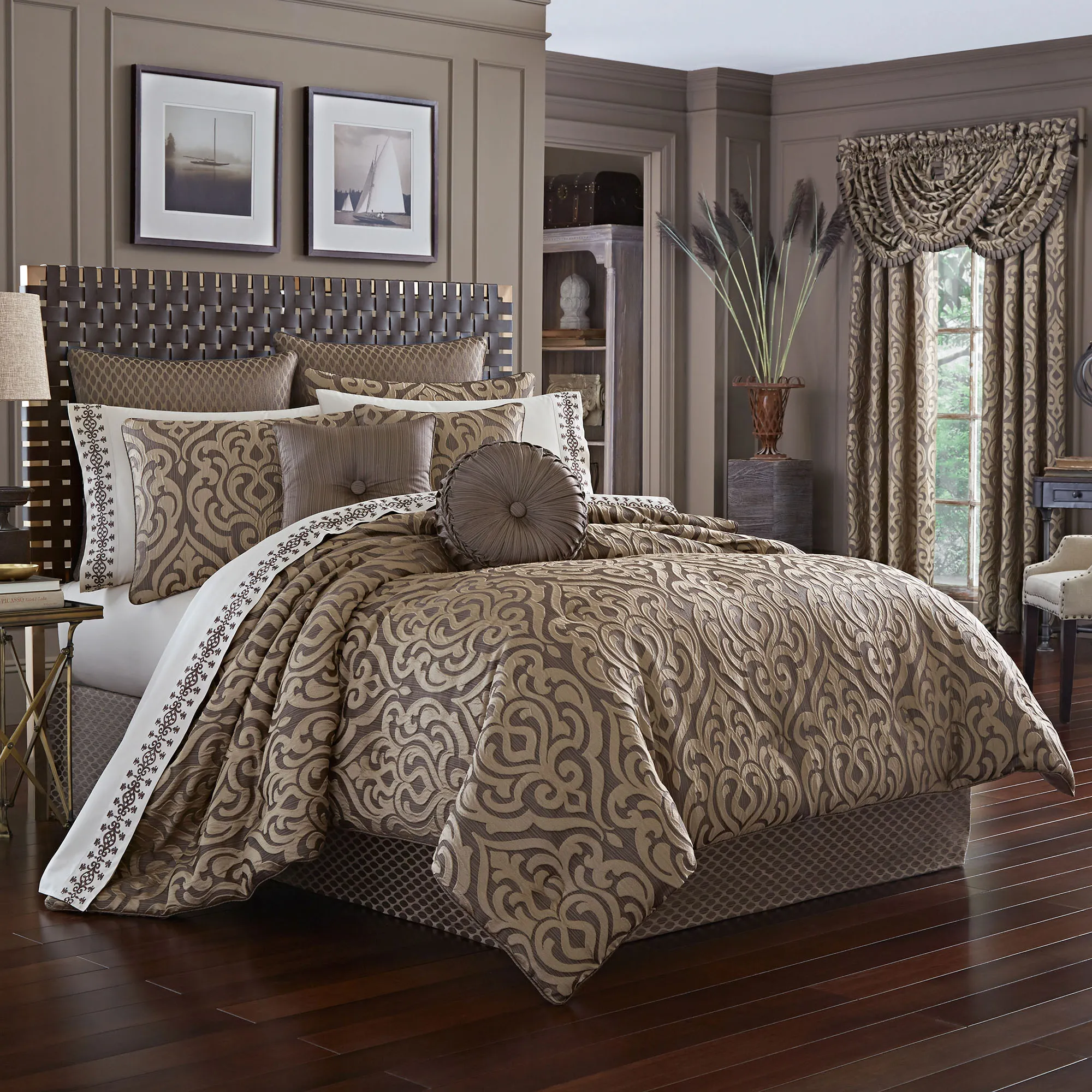 Astoria Scroll Coffee Comforter Bedding by J Queen New York