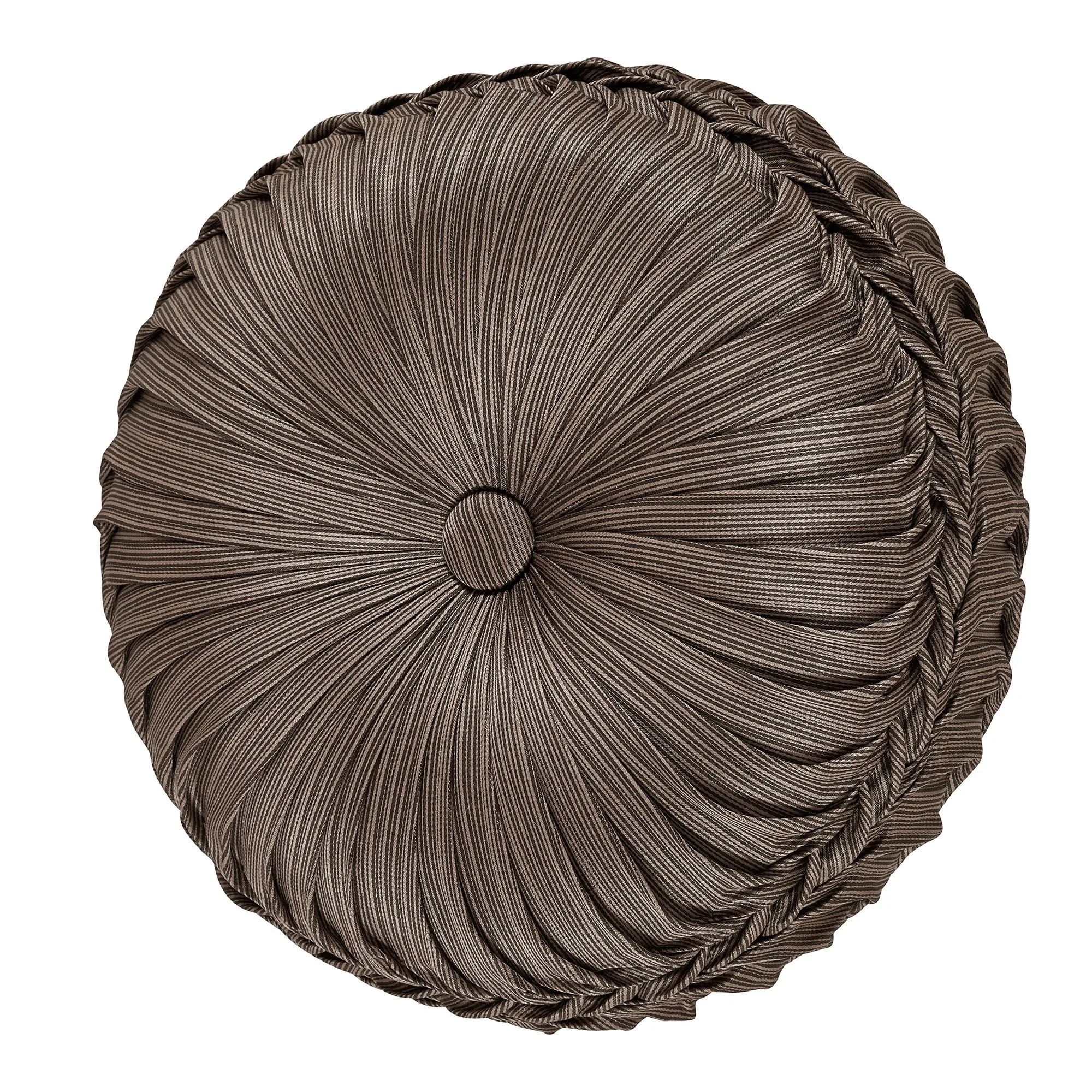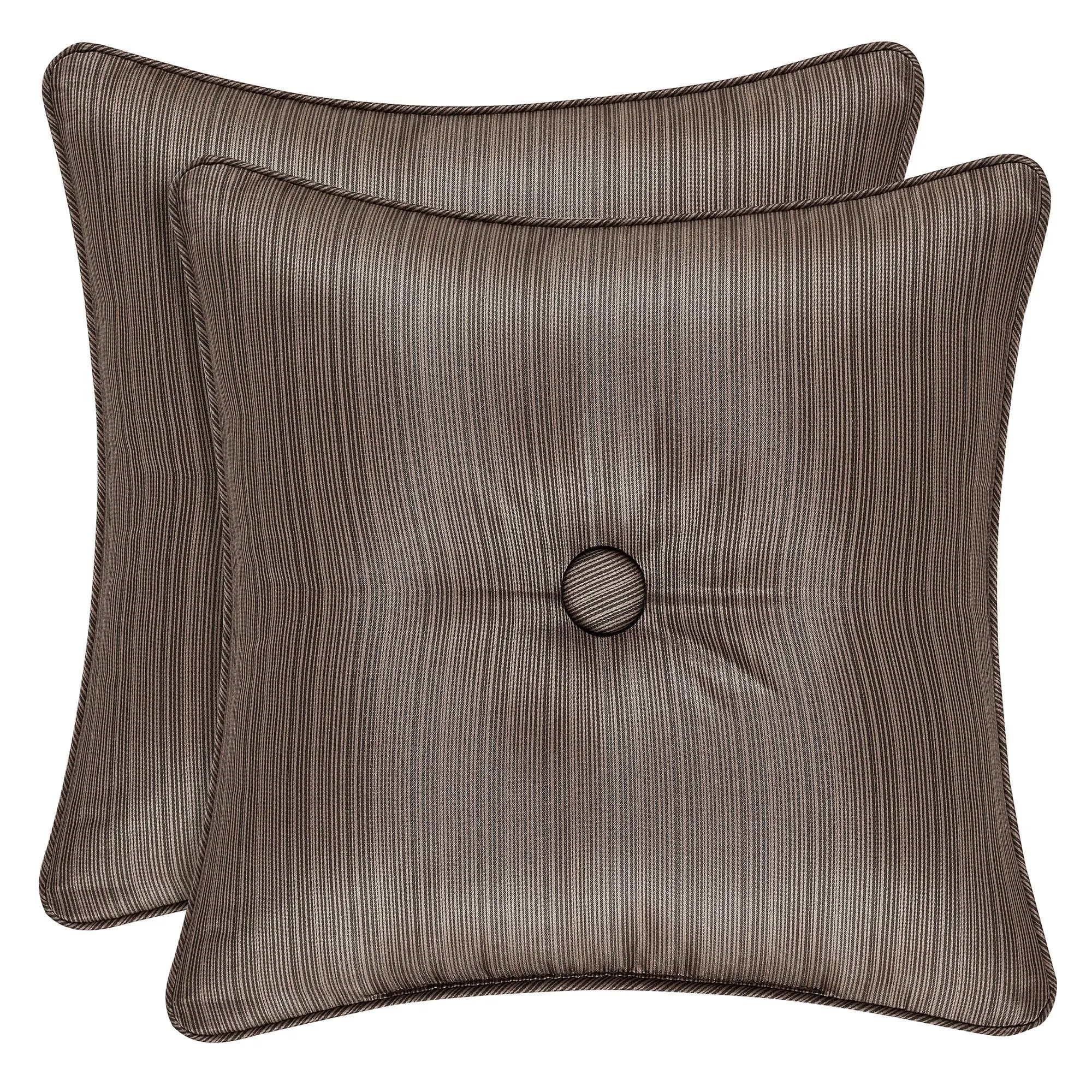 Pillows: Piped Square, 18". Tufted Square, 16". Round, 15".