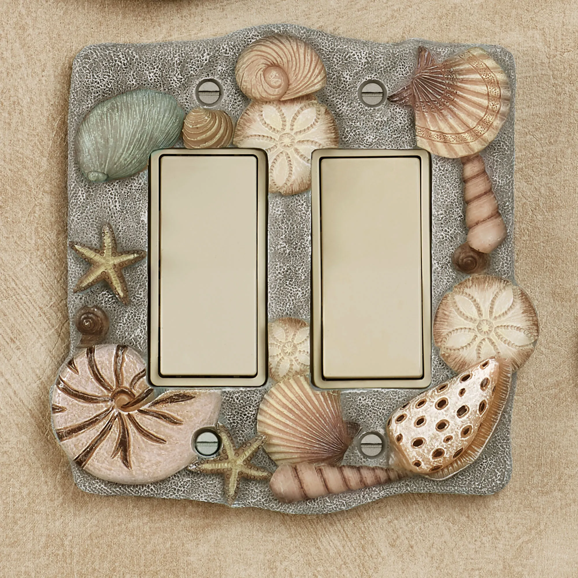 • Coastal switchplates feature resin seashells