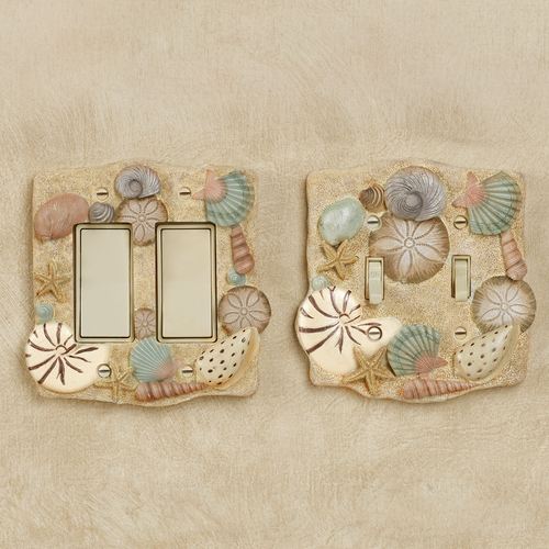 Found At the Beach, these seashell treasures decorate your home with coastal brilliance. These handpainted resin switchplates feature a variety of realistically textured scallop shells, conch, nautilus, and starfish. The natural coloration contains seafoam and coral pink scallop shells, accented by shells in a variety of bright natural hues. Specify Double Switch, 5"Wx5.5"H; or Double Dimmer/Rocker Switch, 5.25"Wx5.5"H. Do not over-tighten the screws. Due to the thickness of the design, these plates may not be able to support large adapters and chargers or nightlights.