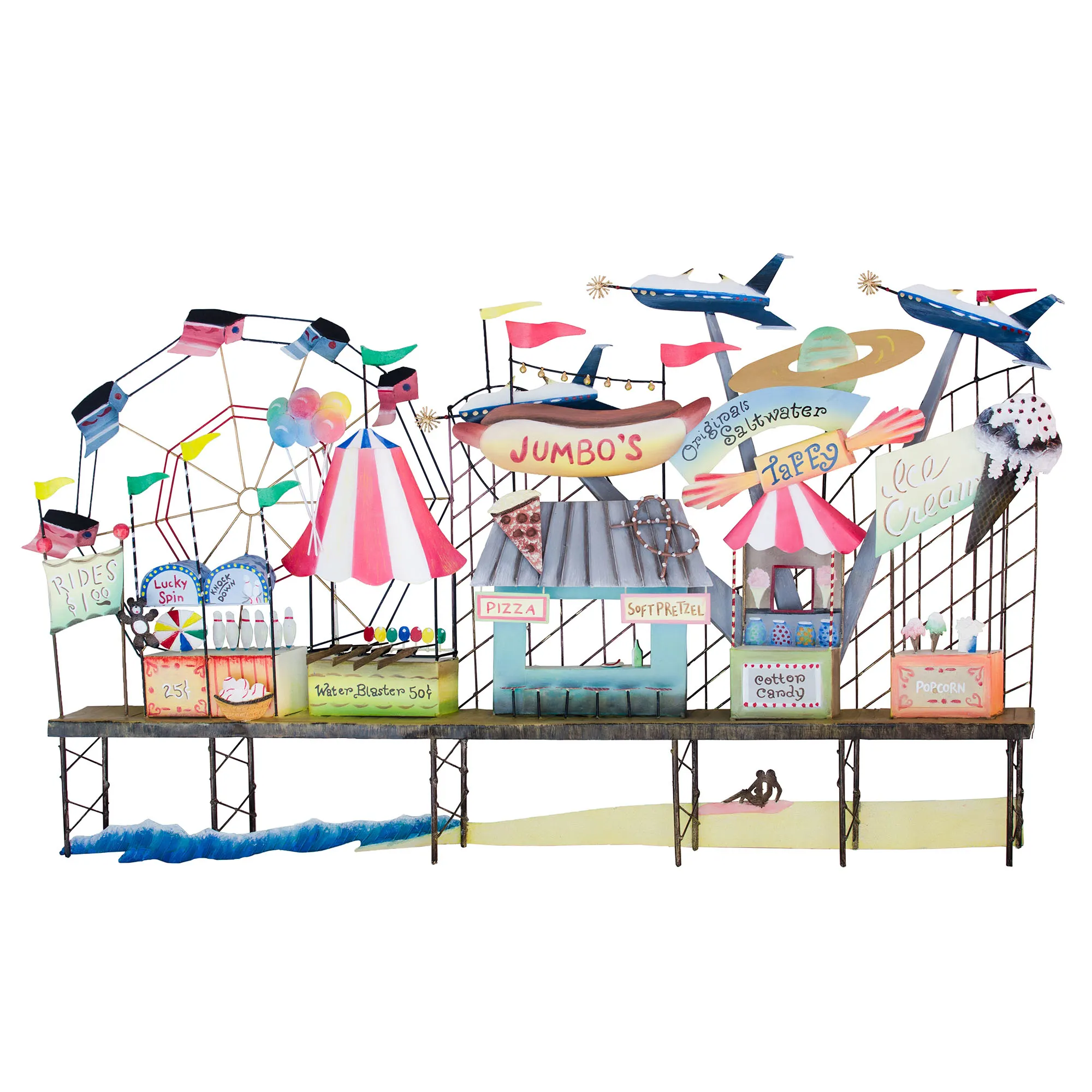 At the Boardwalk Amusement Park Carnival Indoor Outdoor Metal Wall Sculpture