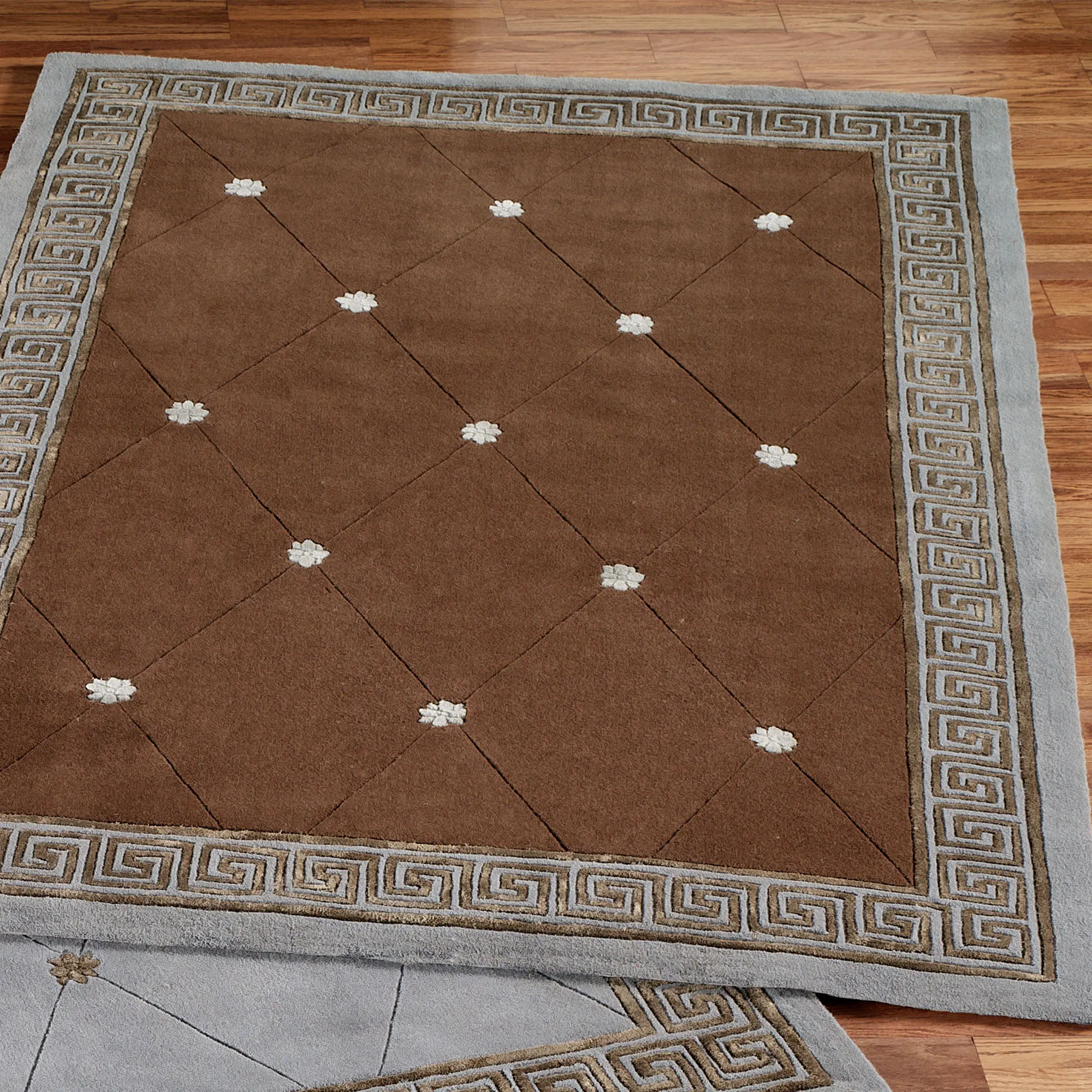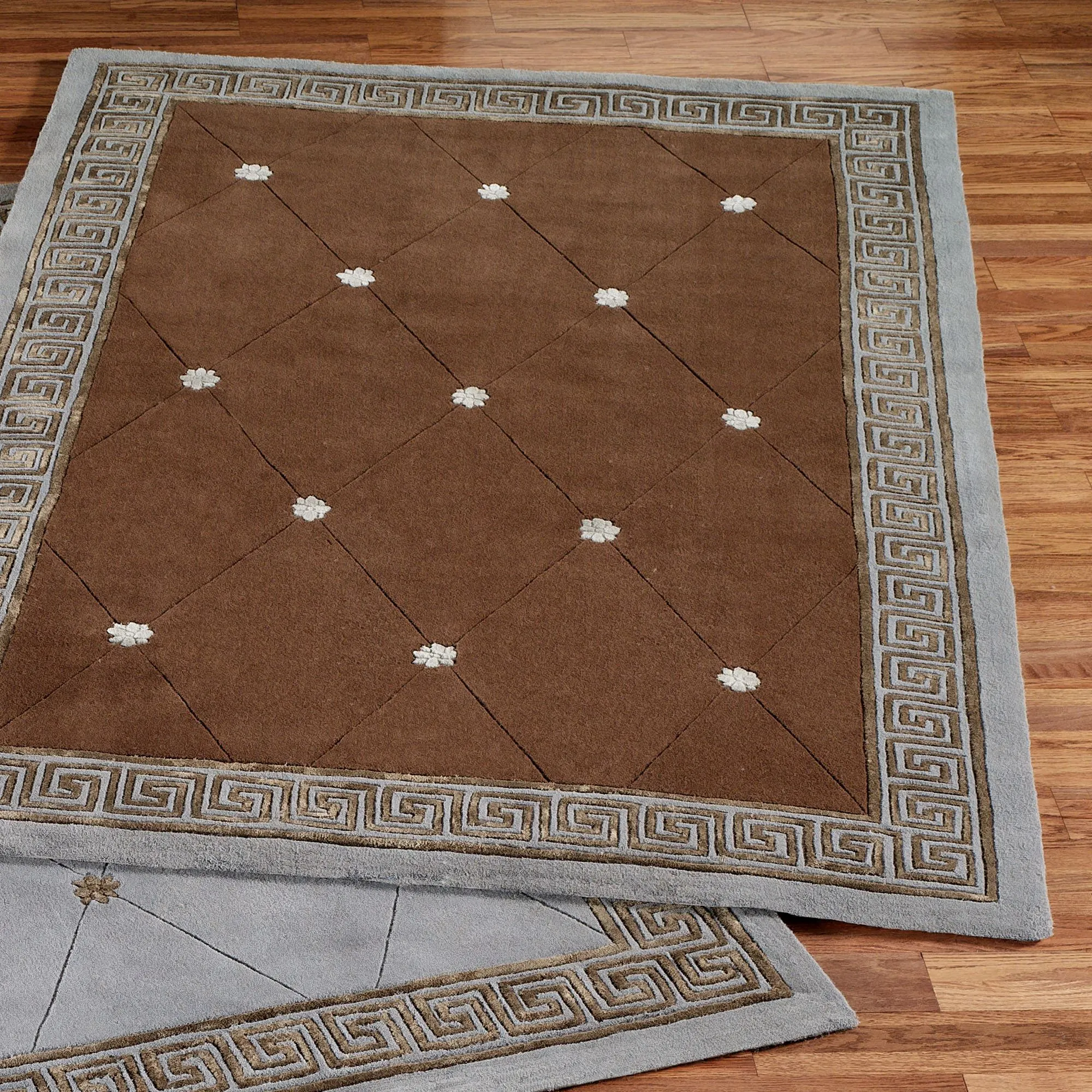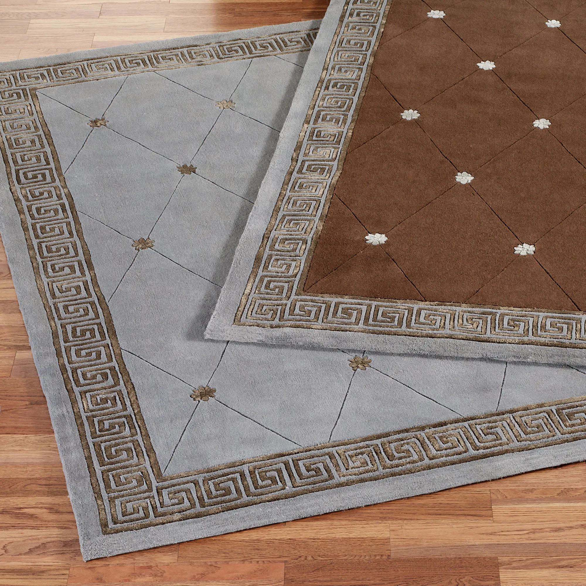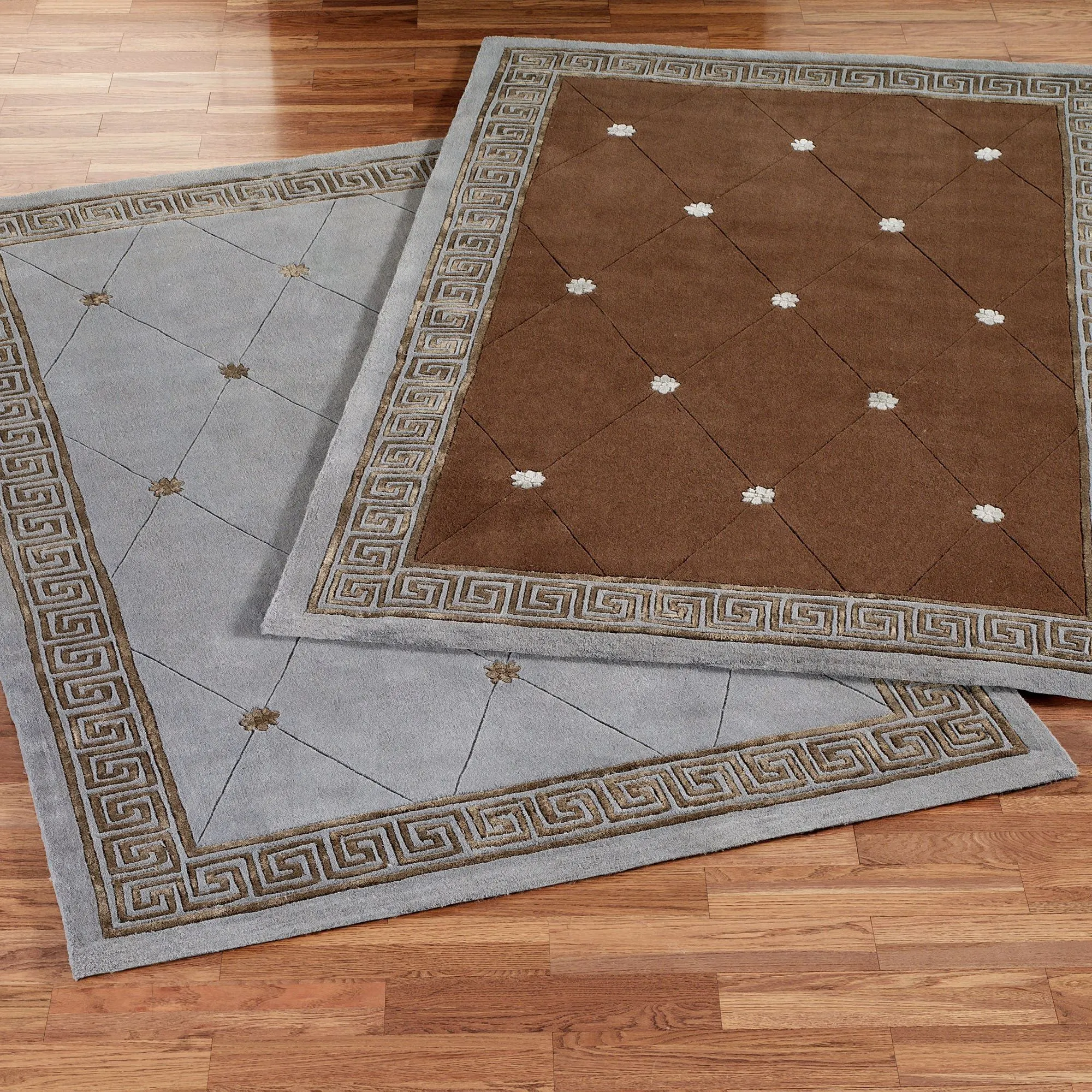 • Area rugs with a Greek key border
