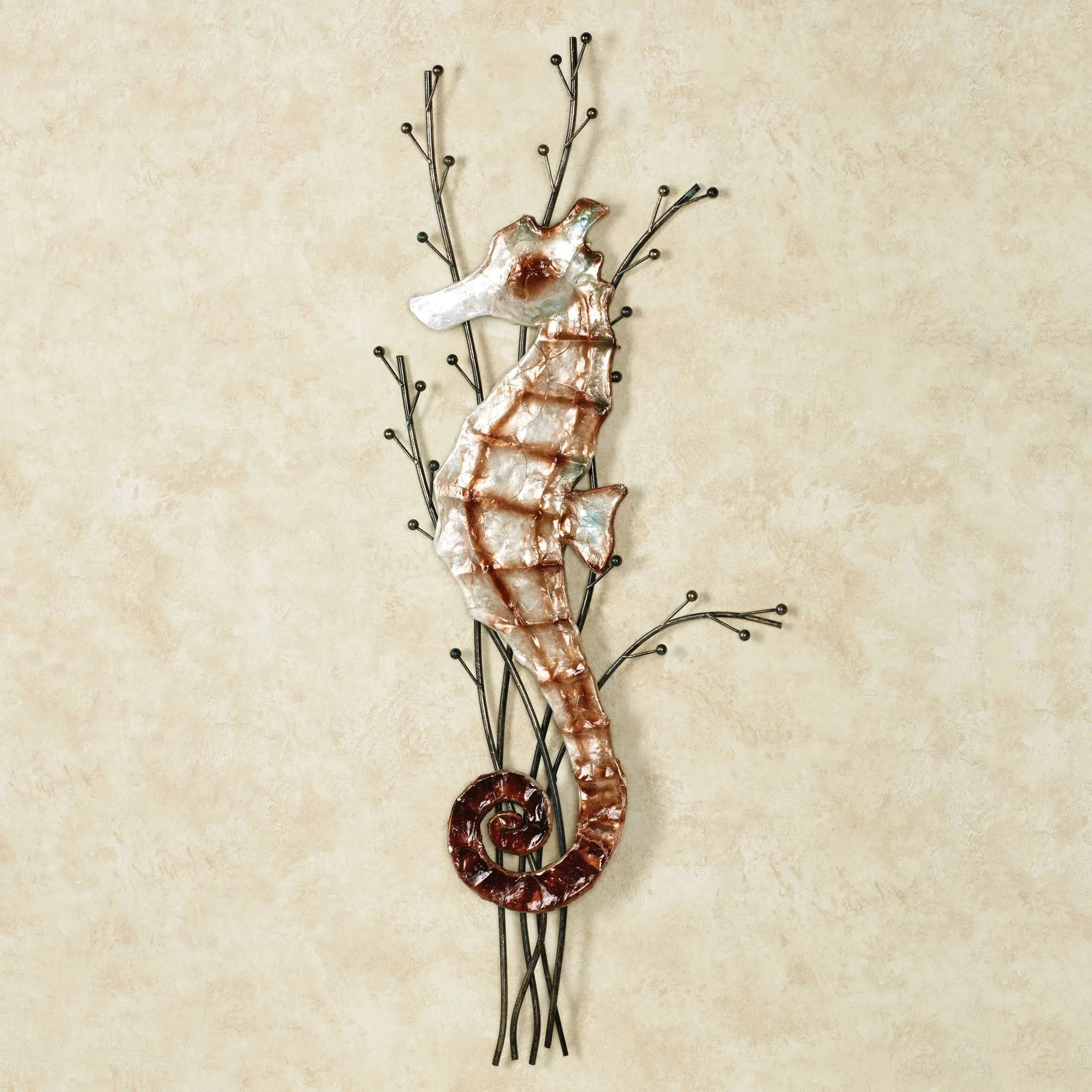 The Atlantic Seahorse Wall Art is made from metal and capiz shell.