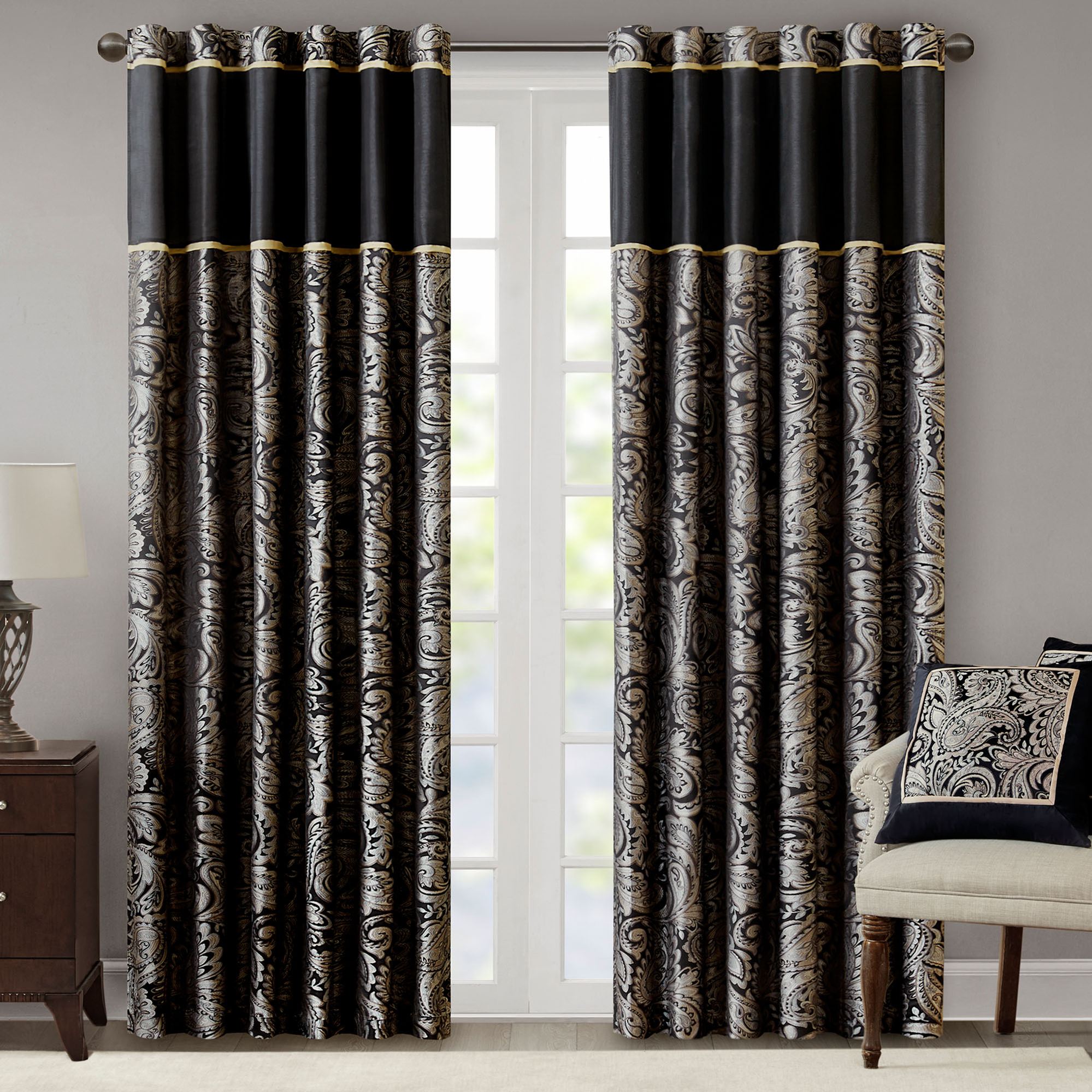 A fashionable paisley pattern swirls elegantly on the Aubrey Bedding. The sophisticated, polyester ensemble, by Madison Park, features ornate jacquard-woven motifs. Shades include silver, taupe, black, almond, light cream, and gold.