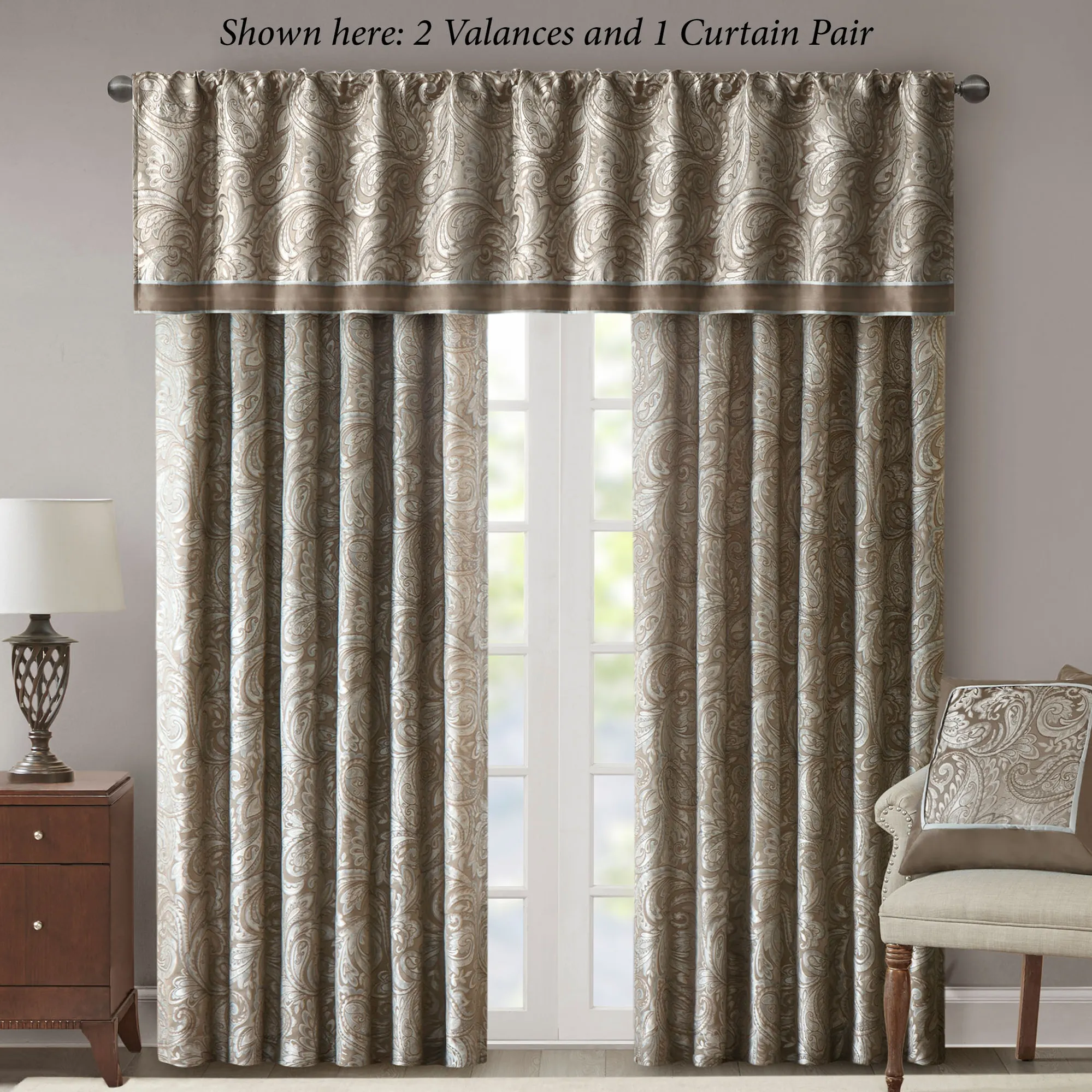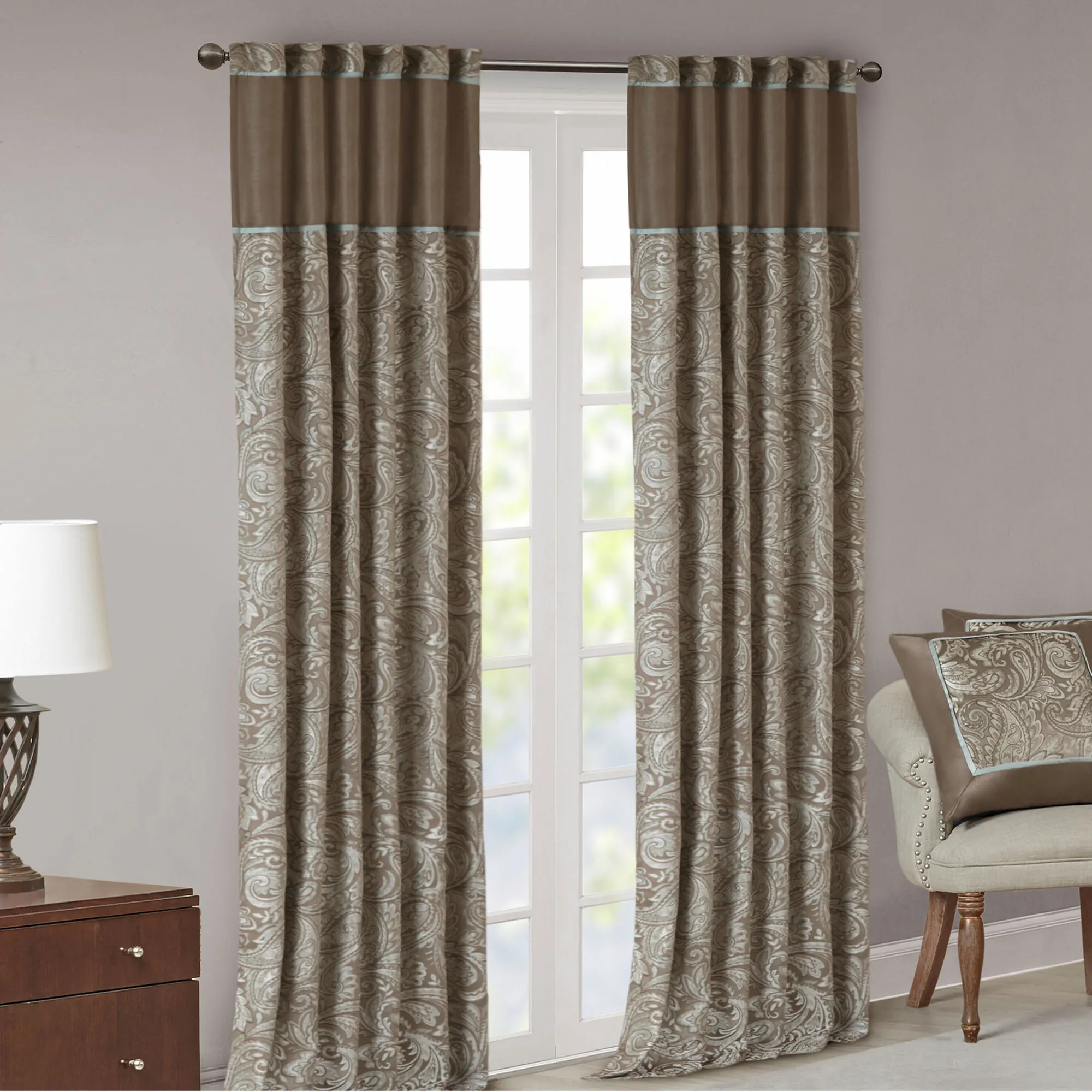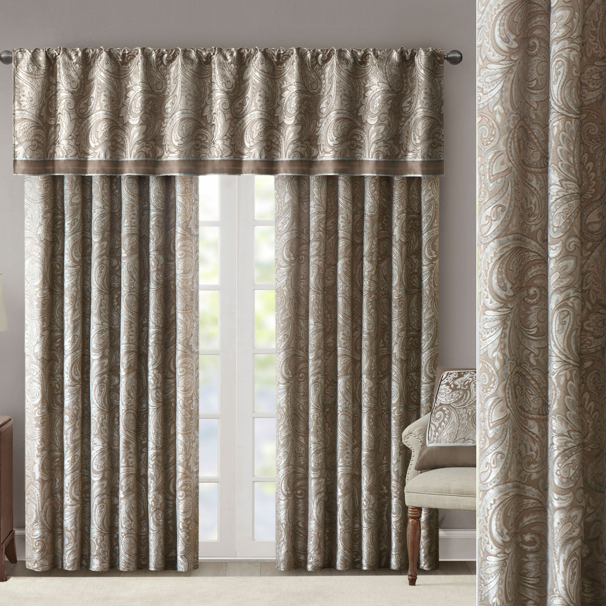 Aubrey Taupe Paisley Window Treatment by Madison Park