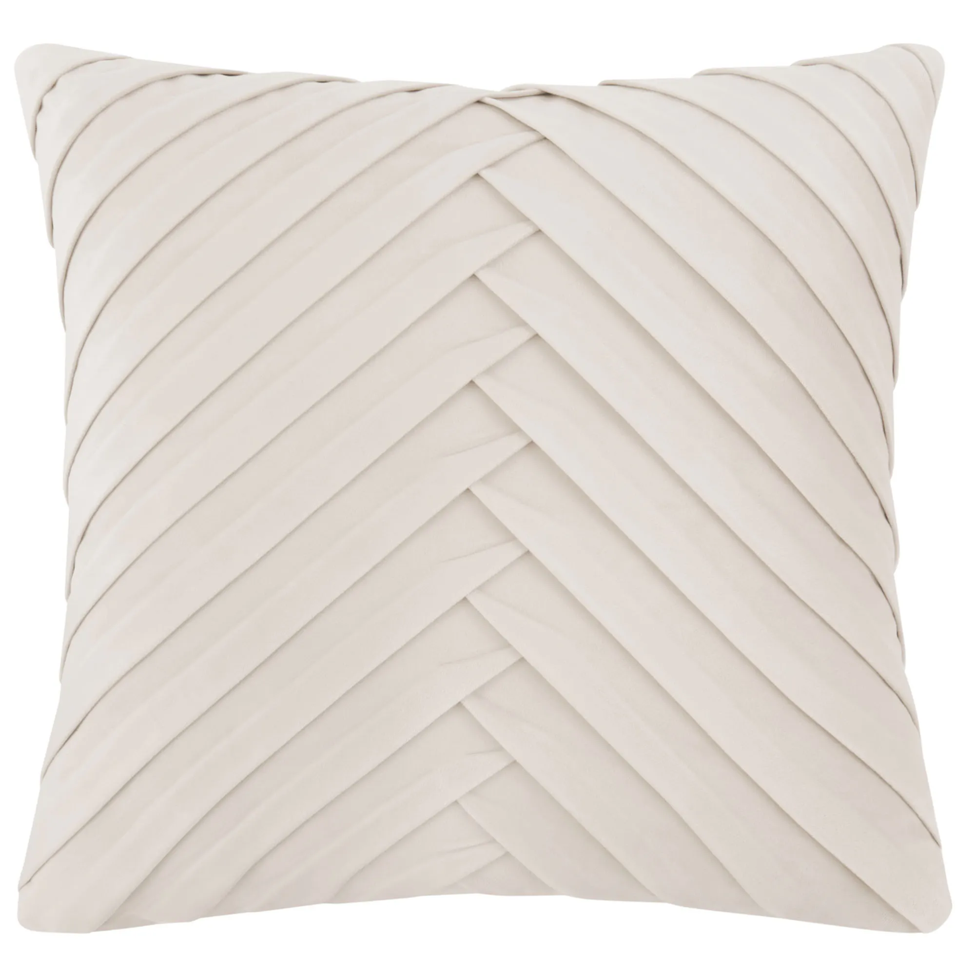 Pillows: Spot clean. The 18" Square has florals and twist cording edges. The 20" Square is ivory velvet with diagonal pleats and tailored edges. Reversible Rectangle is blush velvet with gimp trim and tasseled ends.