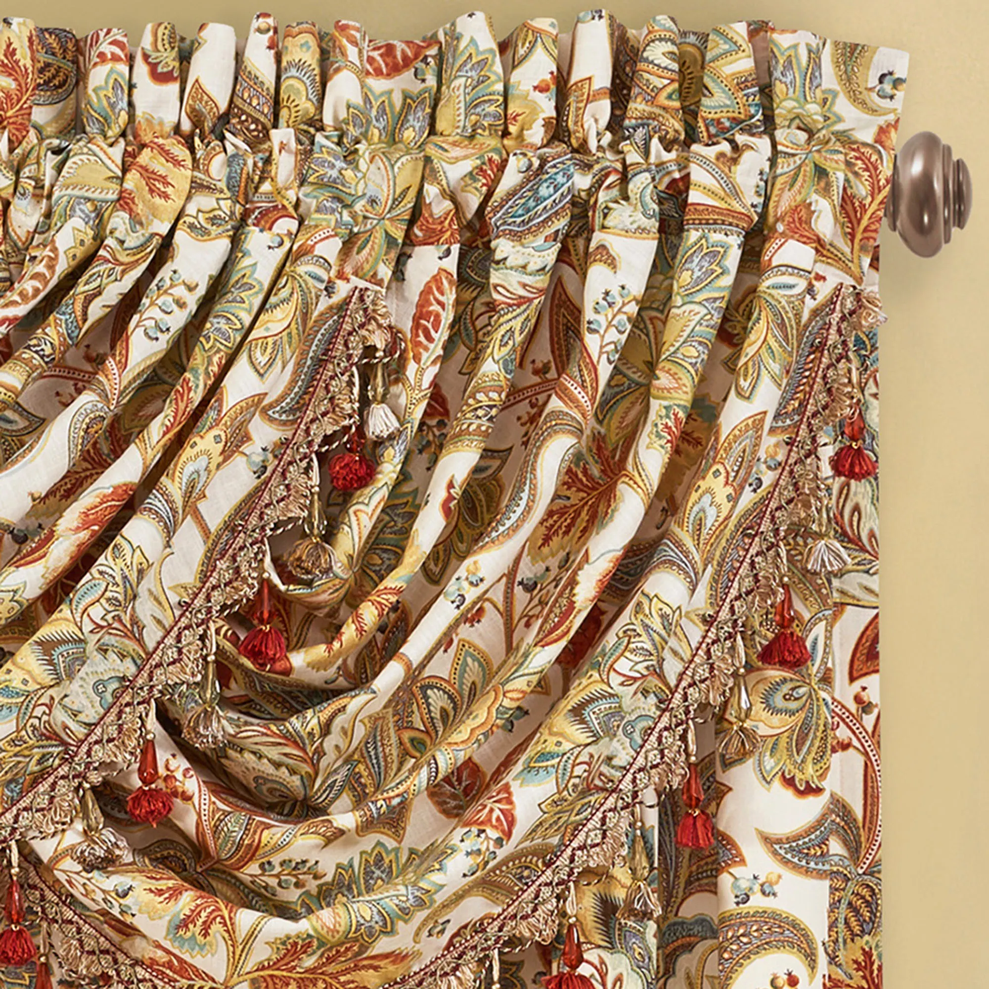 • Valance has crystal tassel fringe