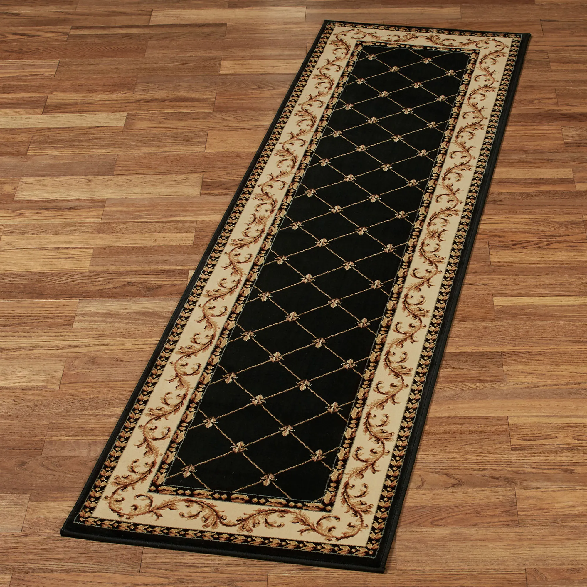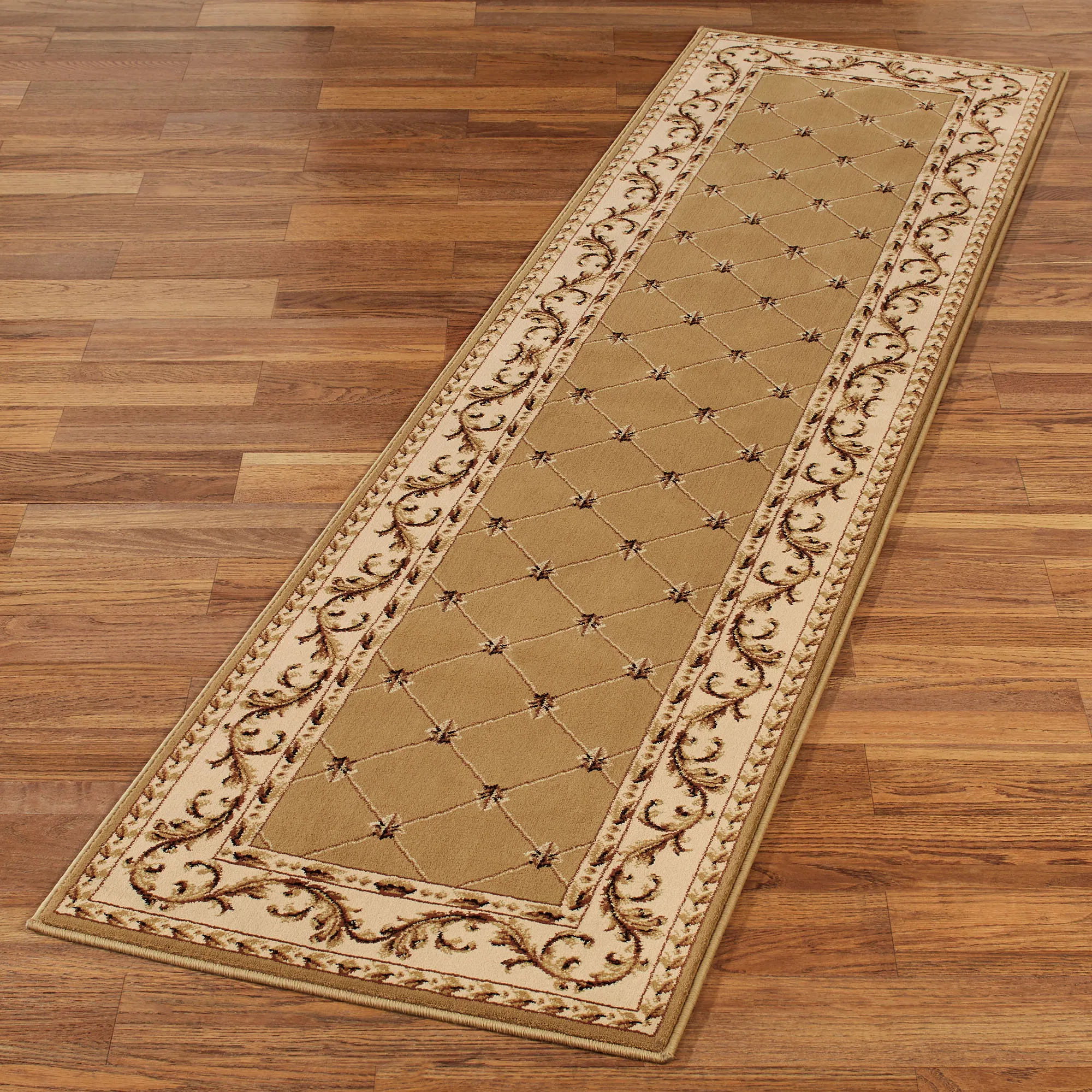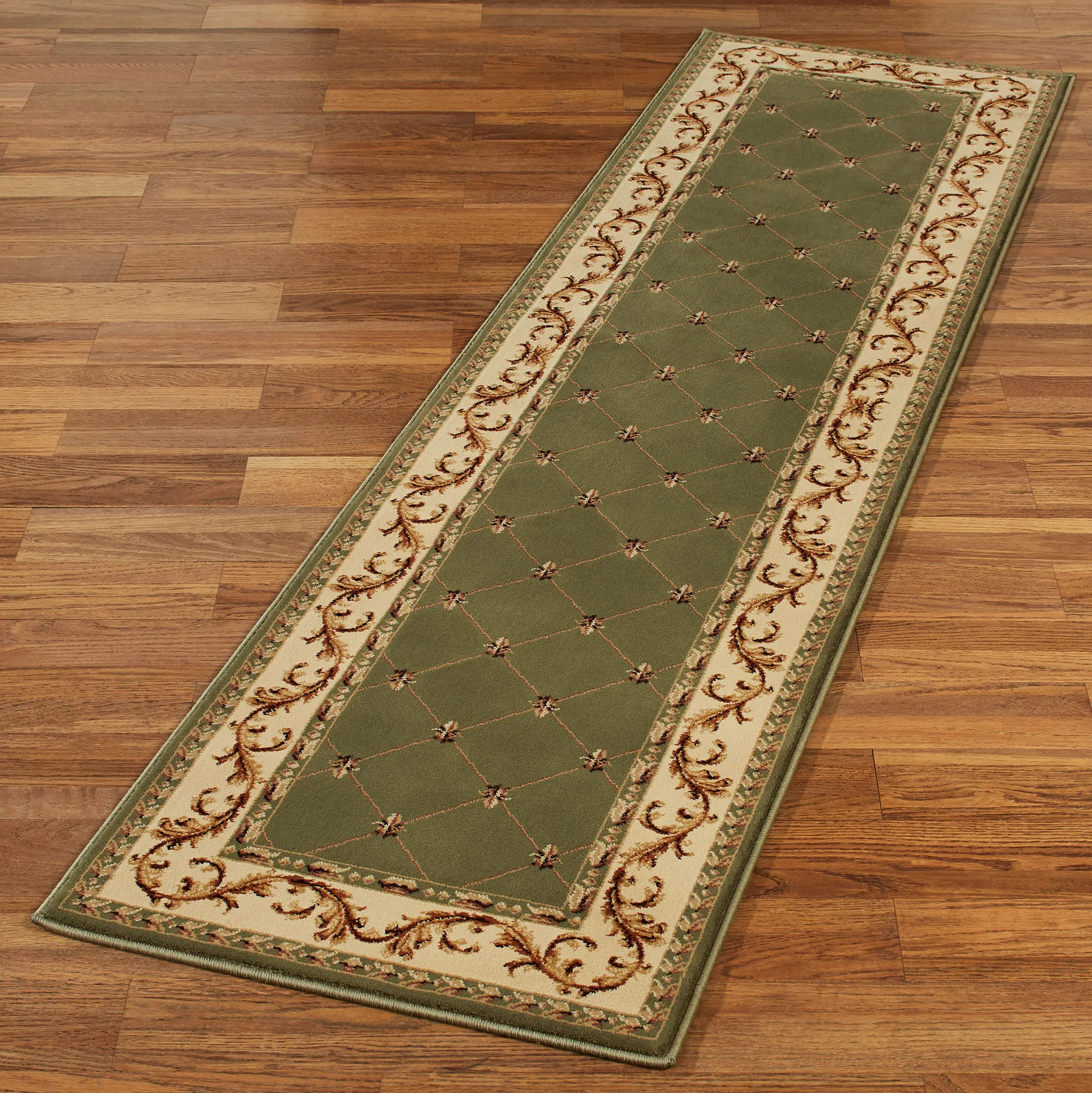 The Augusta Rug Runner employs time-honored, traditional motifs to create an aesthetic of regal elegance. This machine-made polypropylene rug runner, .32" thick, features a lattice pattern of fleurs-de-lis on a solid color background, surrounded by a border of leafy scrollwork. Accent colors include beige and gold. We recommend professional cleaning by a rug cleaner. Imported.