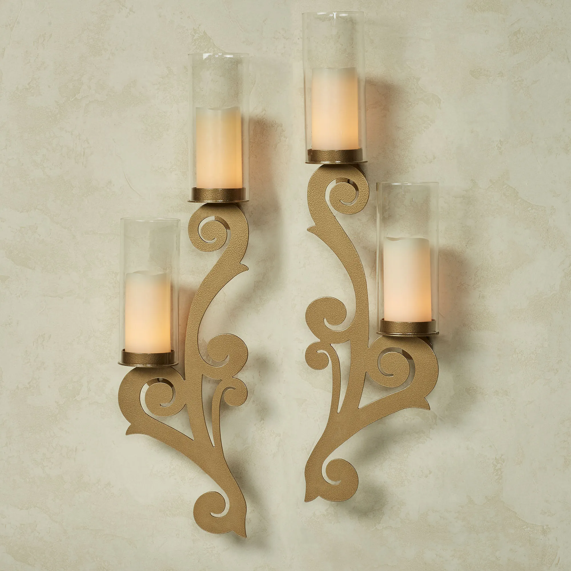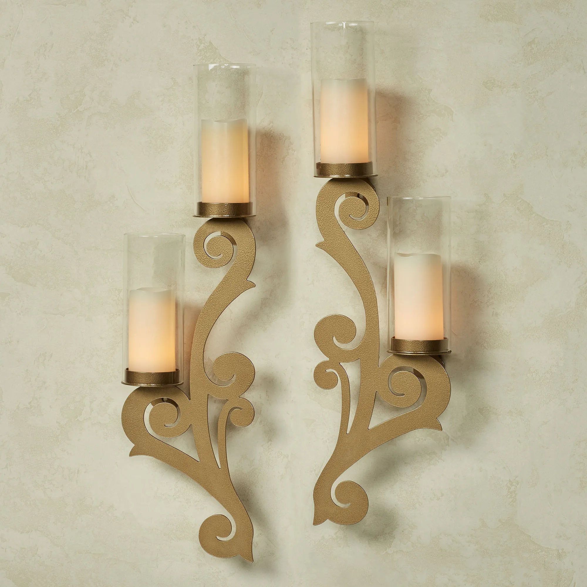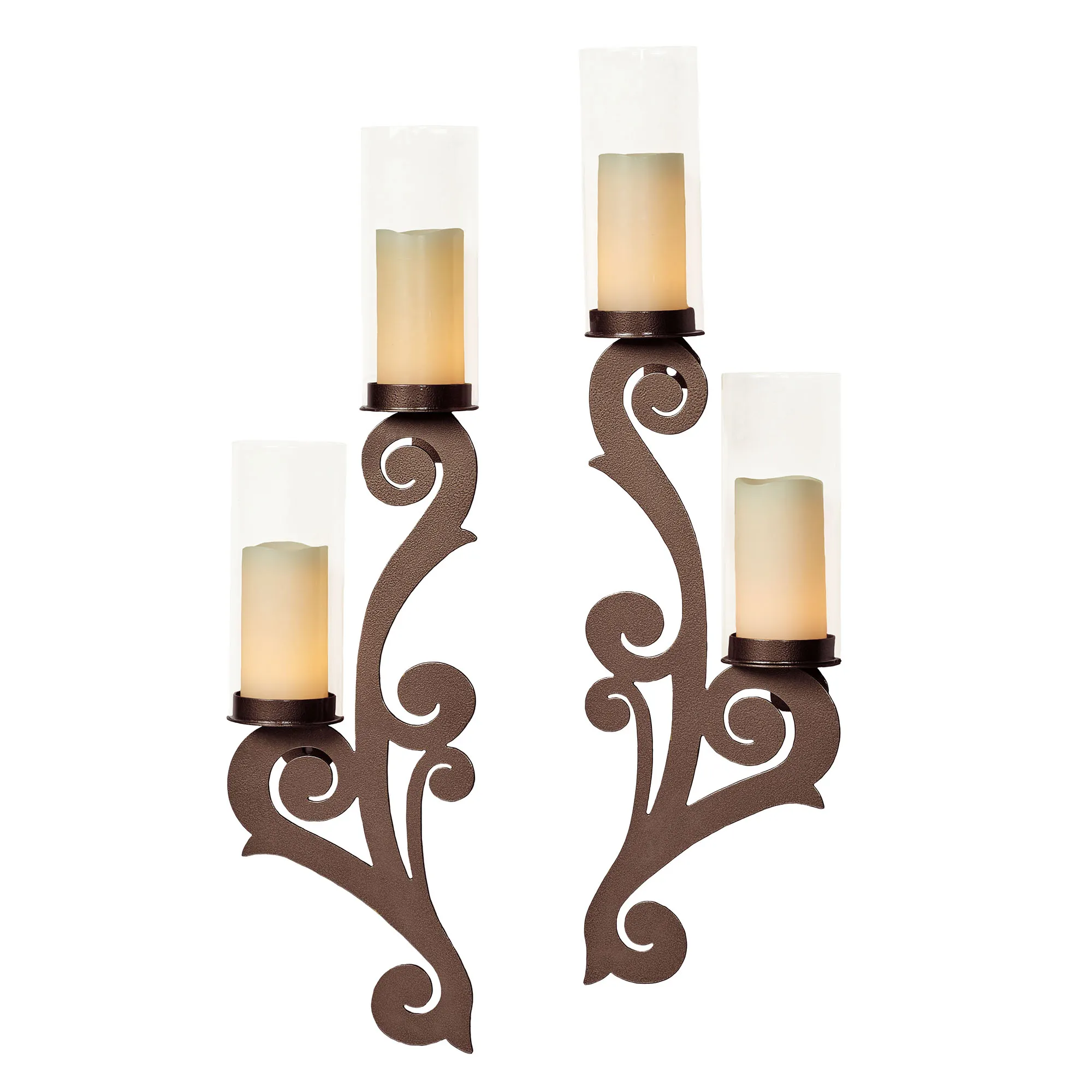 Augustine Scroll Steel Hurricane Wall Sconce Set by JasonW Studios